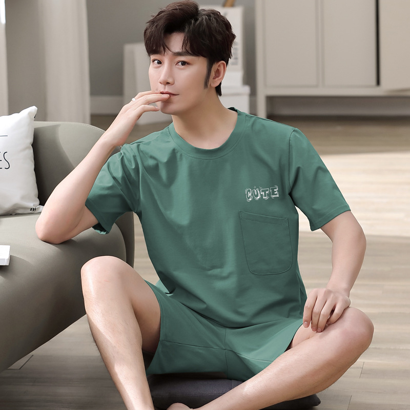 시원한 잠옷 남자 여름 모달 반팔 반바지 플러스 사이즈 통통한 홈 의류 남성 여름 얇은 세트