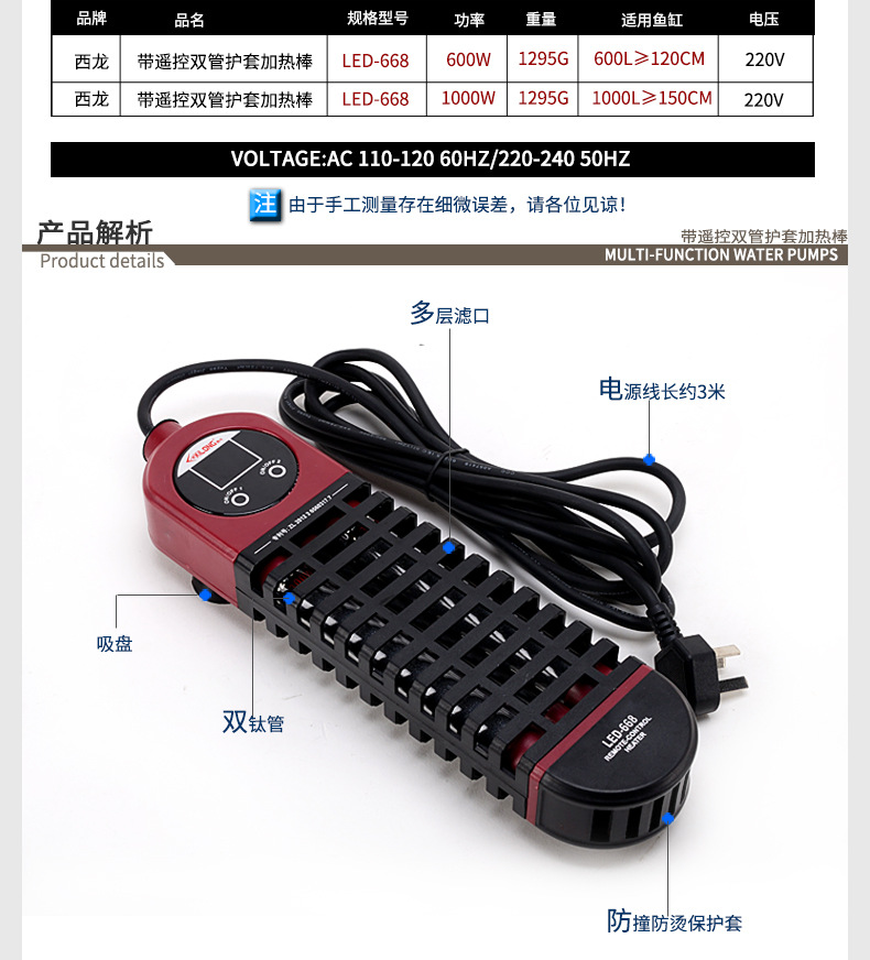 물고기 탱크 가열 막대 원격 제어 티타늄 튜브 수족관 가열 막대 자동 일정한 온도 온난화 Xilong LED-668 온도 조절기