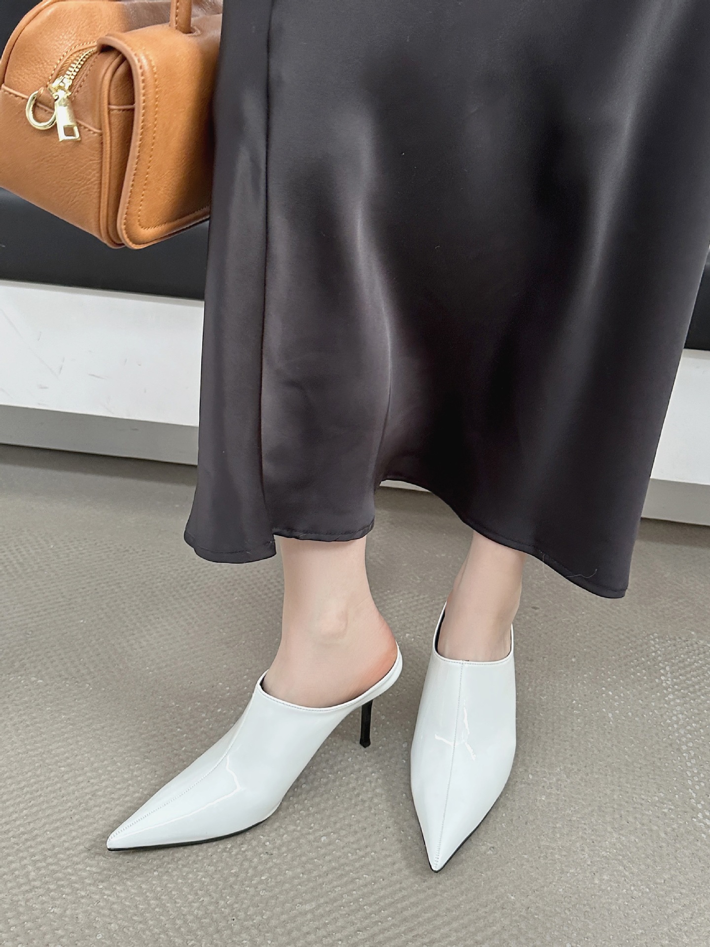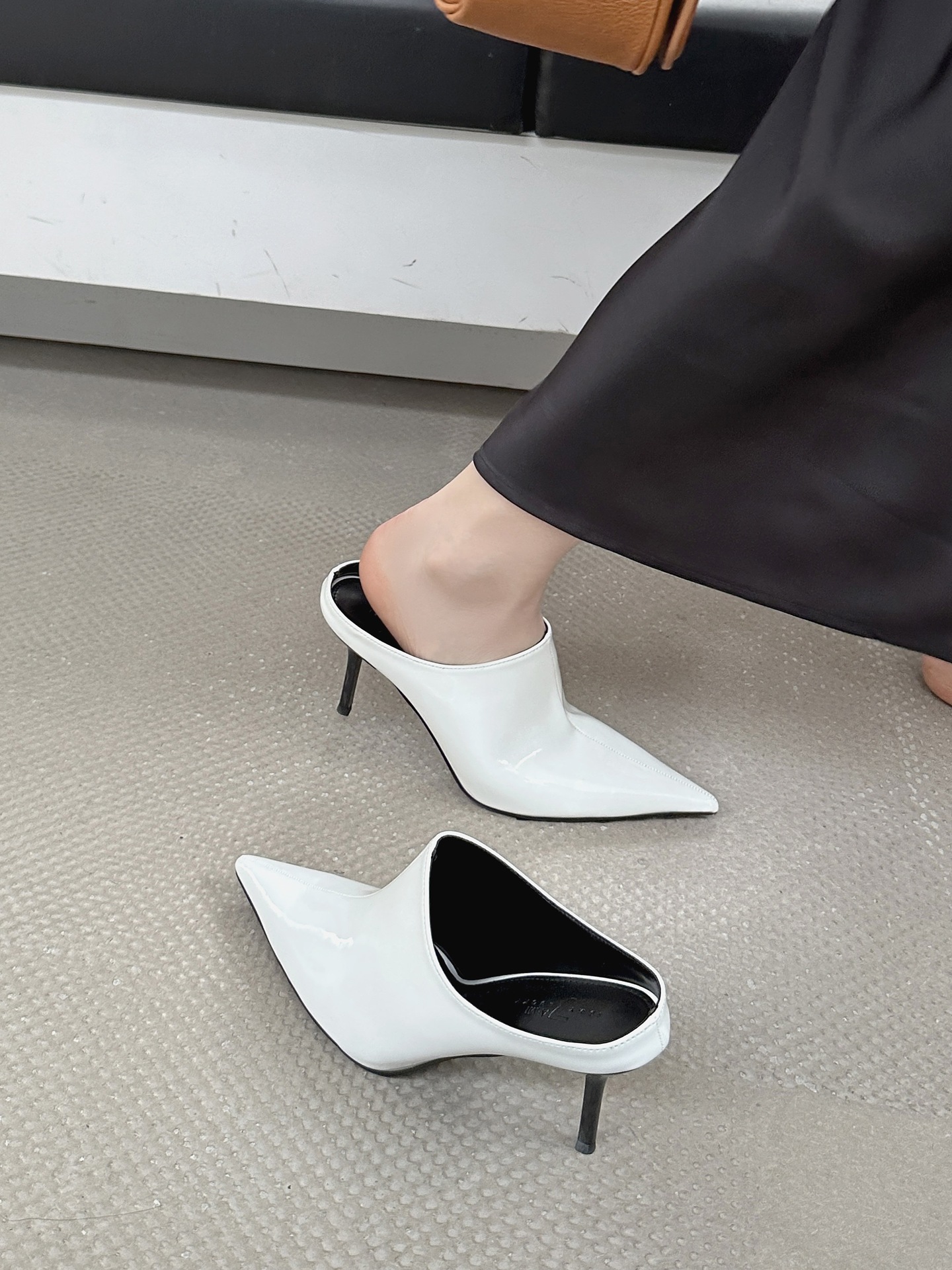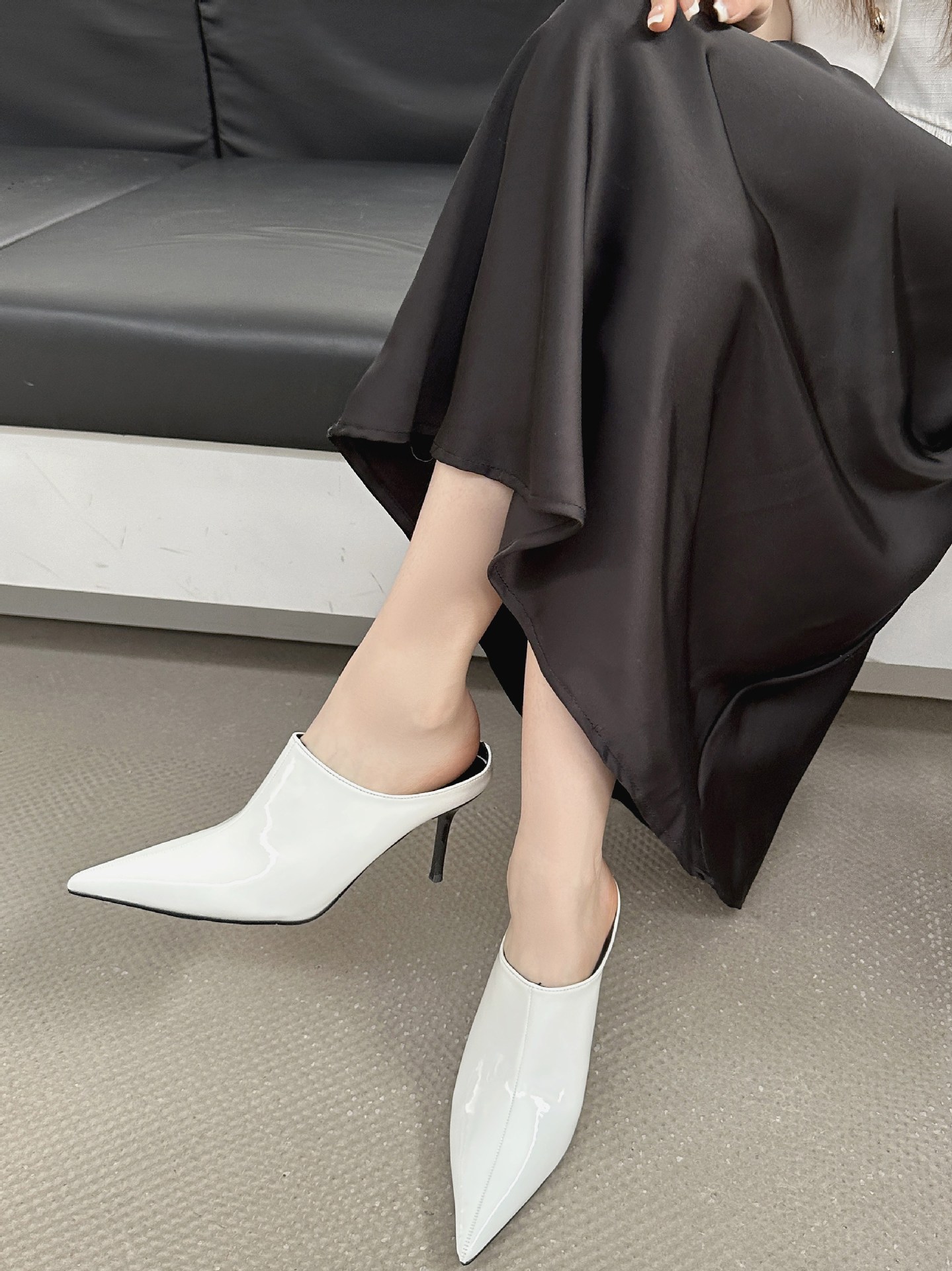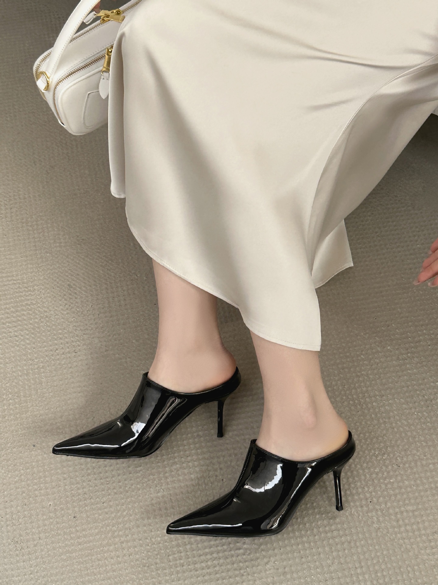 봄 2025 새로운 뾰족한 얇은 굽 하이힐 우아한 슬림 프랑스 유행 스테노 아름다운 여성 하프 슬리퍼