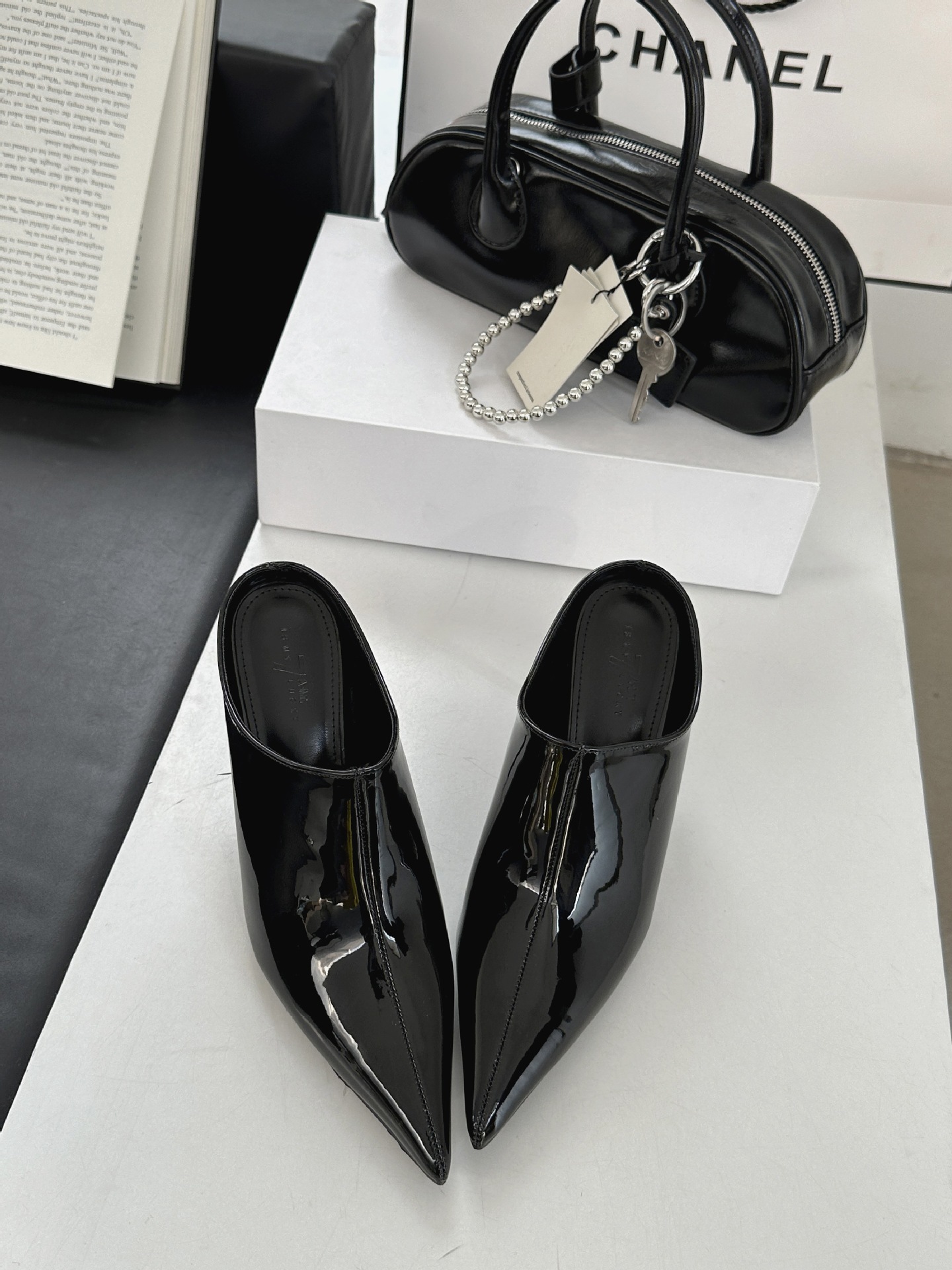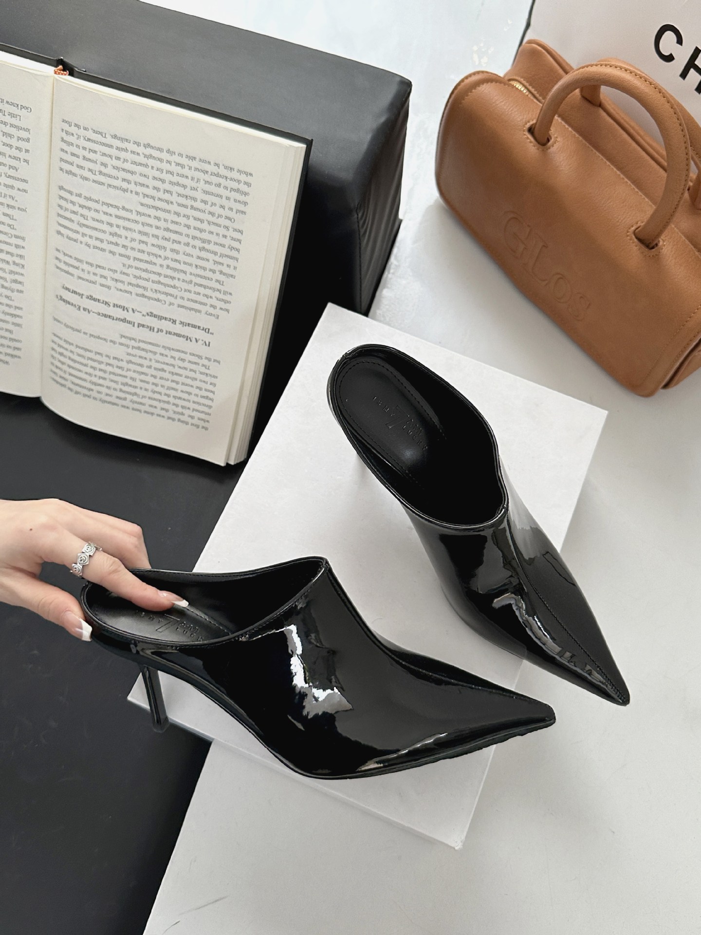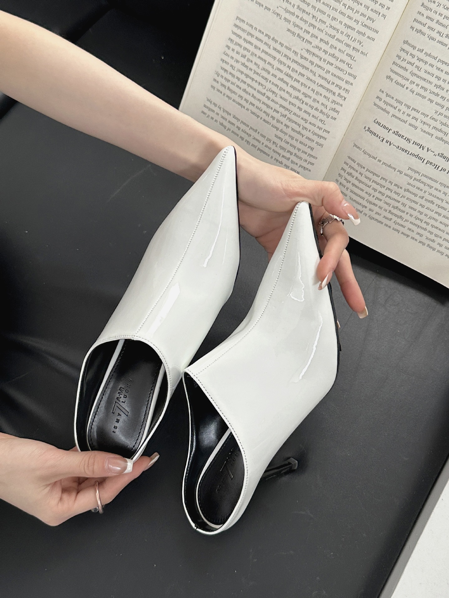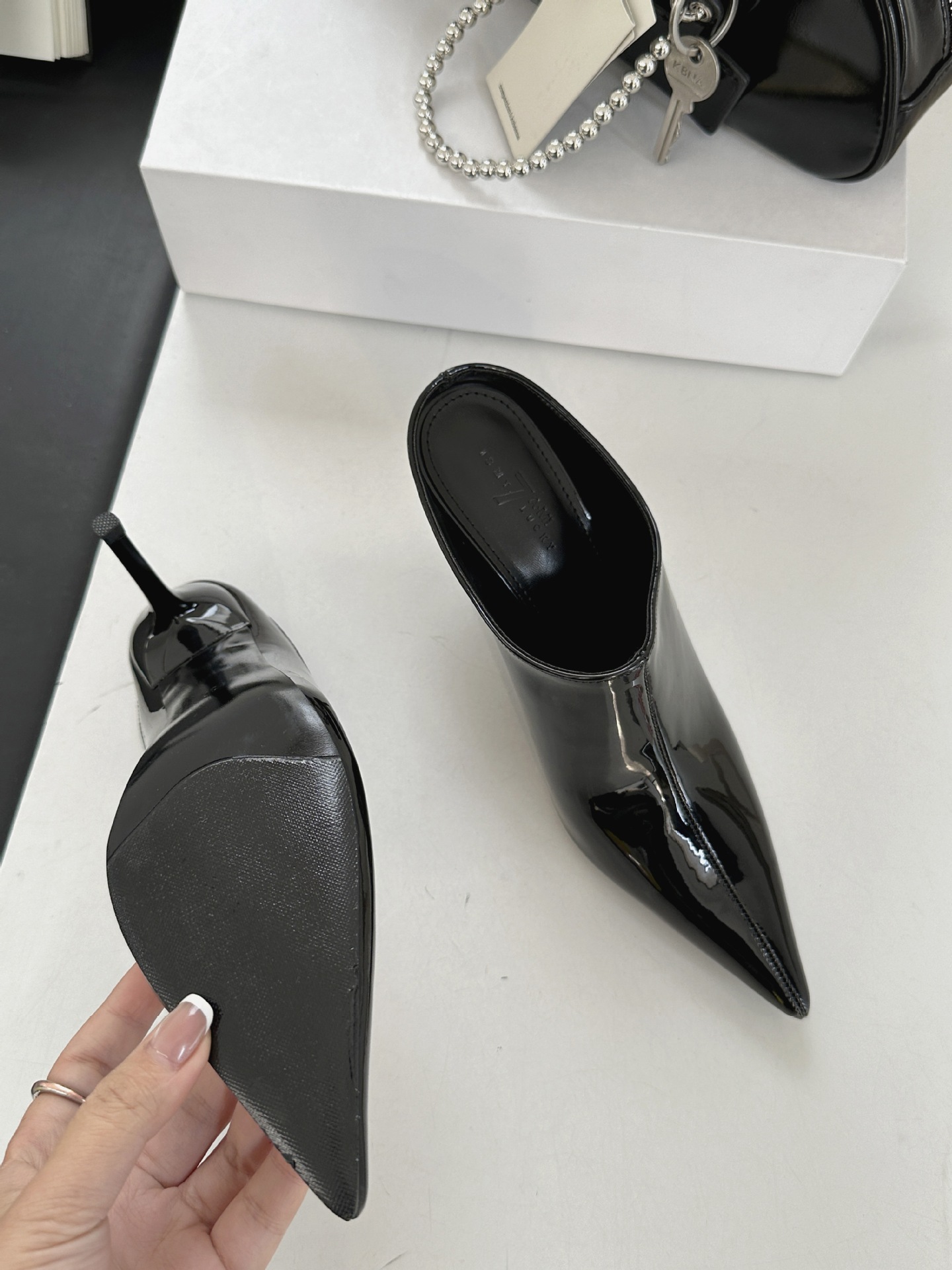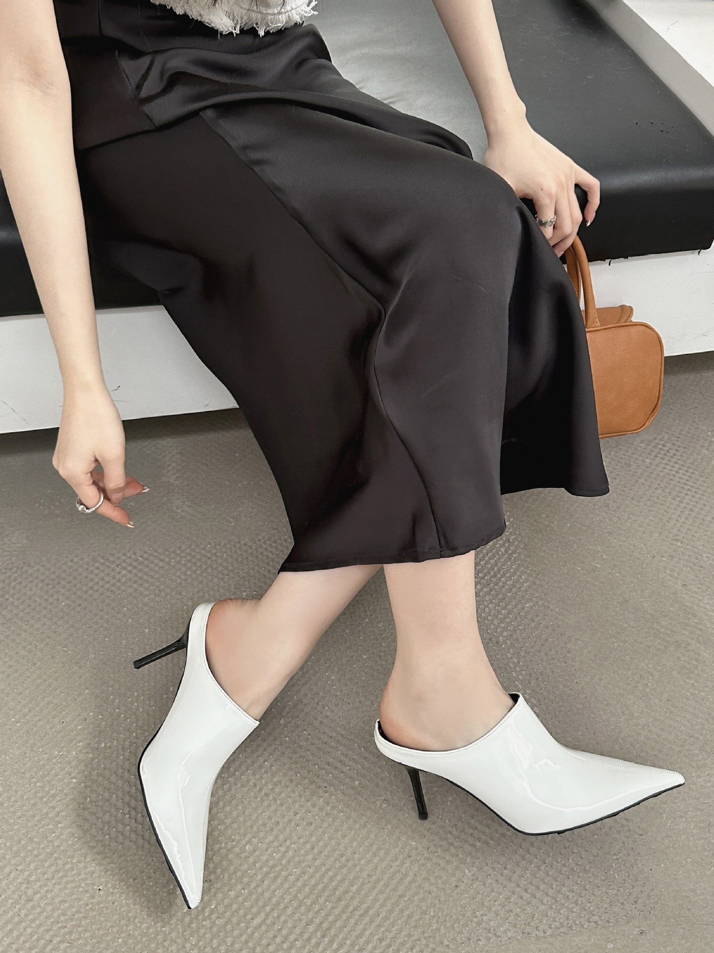 봄 2025 새로운 뾰족한 얇은 굽 하이힐 우아한 슬림 프랑스 유행 스테노 아름다운 여성 하프 슬리퍼