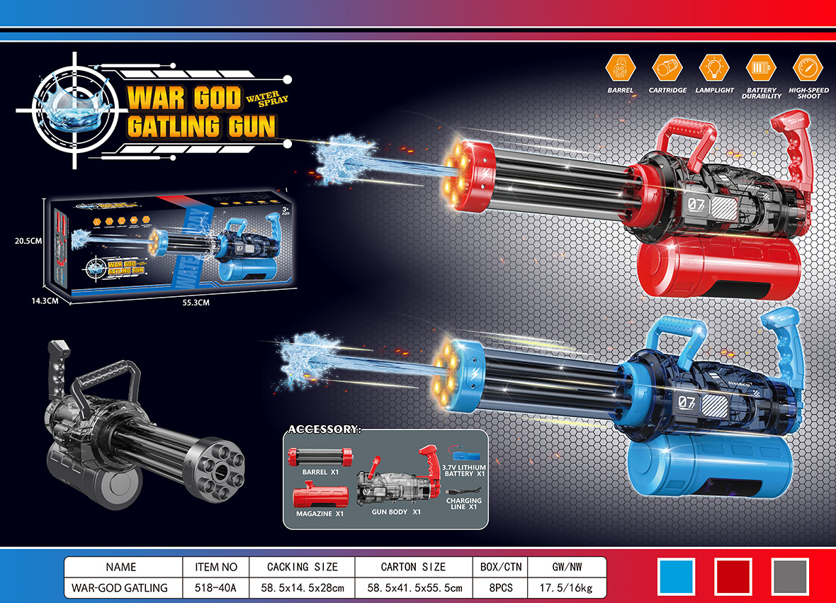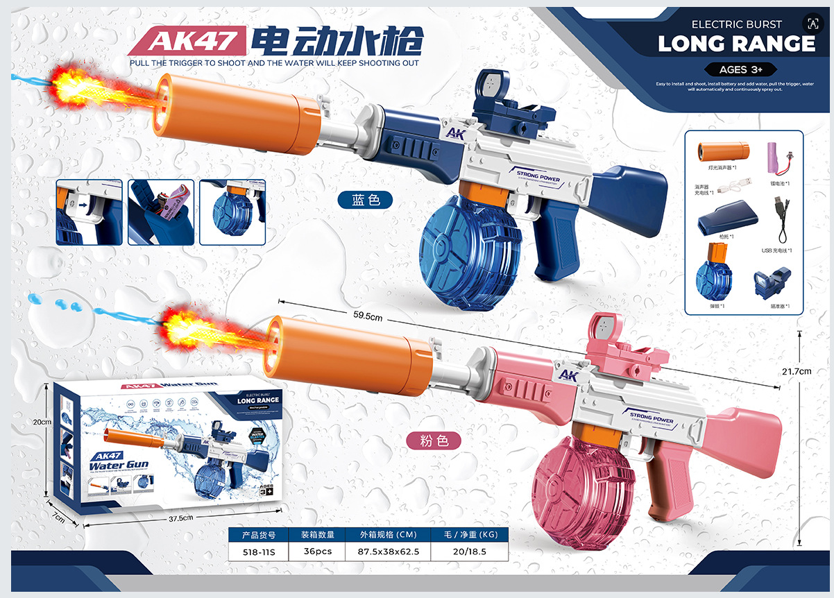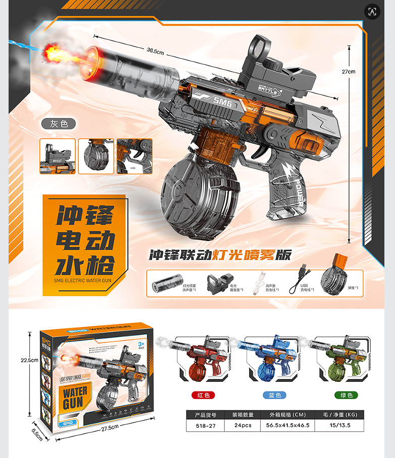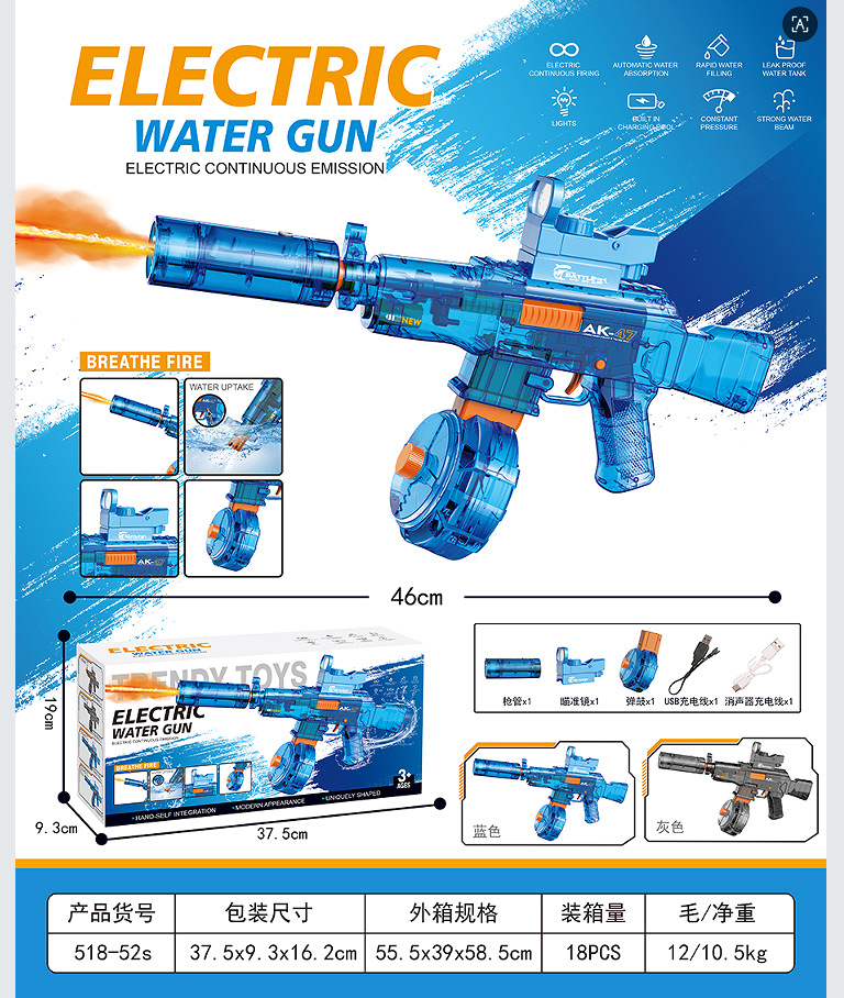 电动玩具水枪的乐趣,还在于它为亲子互动和社交活动增添了无限活力。和孩子一起在户外玩水枪,看着他们天真无邪的笑容,感受着亲子间的亲密无间;和朋友们组织一场水枪大战,在水花四溅中嬉笑打闹,友谊也在这欢乐的氛围中愈发深厚。