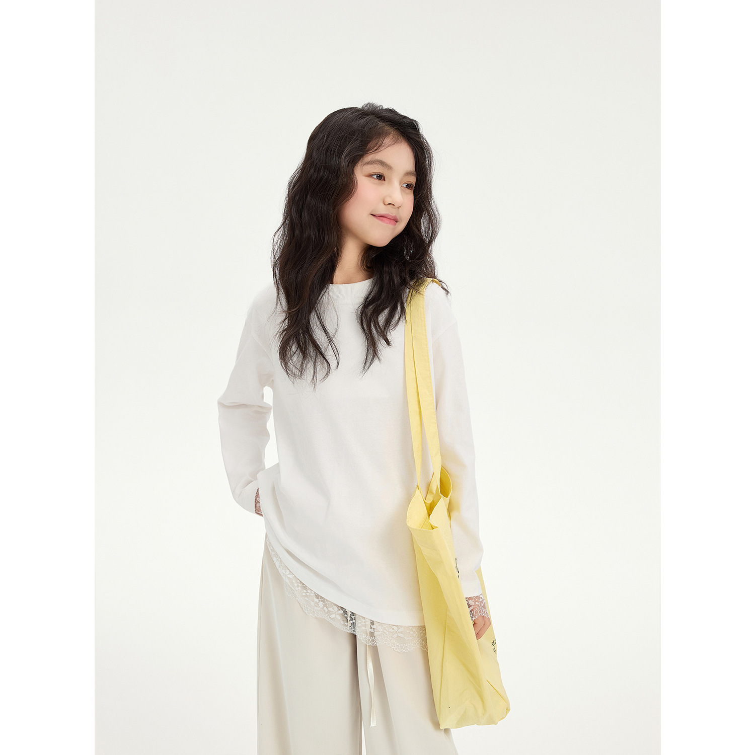 소녀 솔리드 컬러 심플 레이스베이스 셔츠 2025 봄 새 어린이 한국식 루즈 올매치 긴팔 셔츠