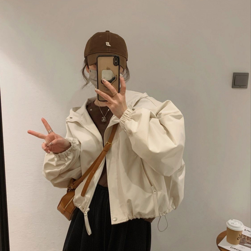 여성을위한 캐주얼 짧은 재킷 2025 봄 새로운 스타일 재킷 작은 Drawstring 허리 느슨한 재킷 탑