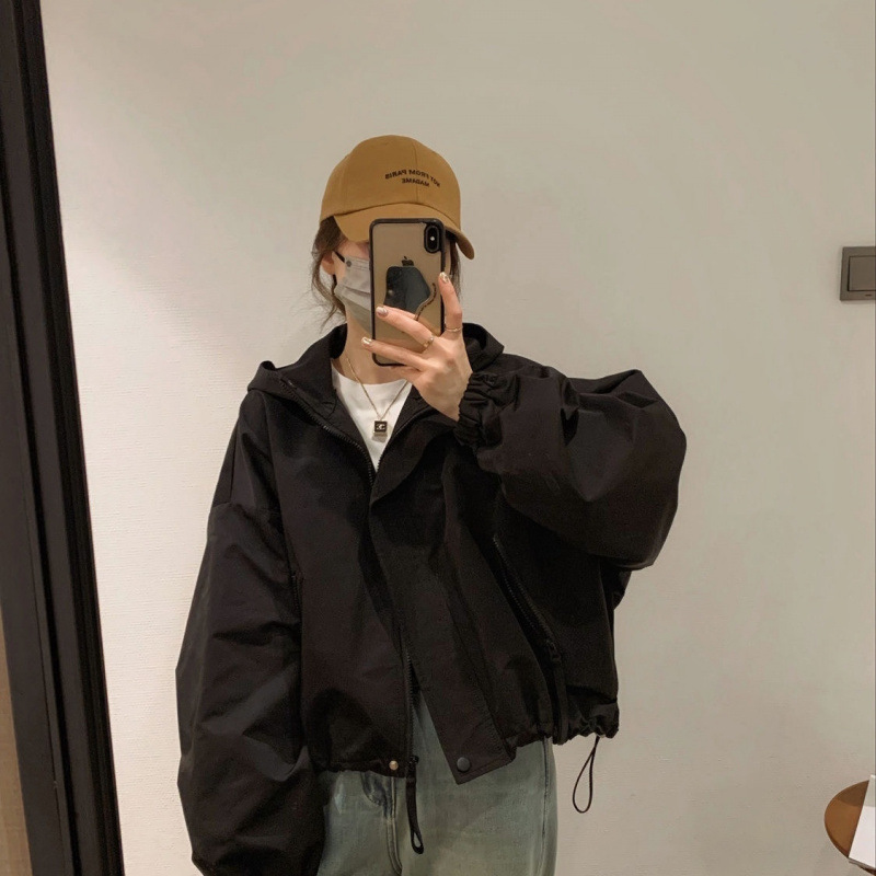 여성을위한 캐주얼 짧은 재킷 2025 봄 새로운 스타일 재킷 작은 Drawstring 허리 느슨한 재킷 탑스토어 가기