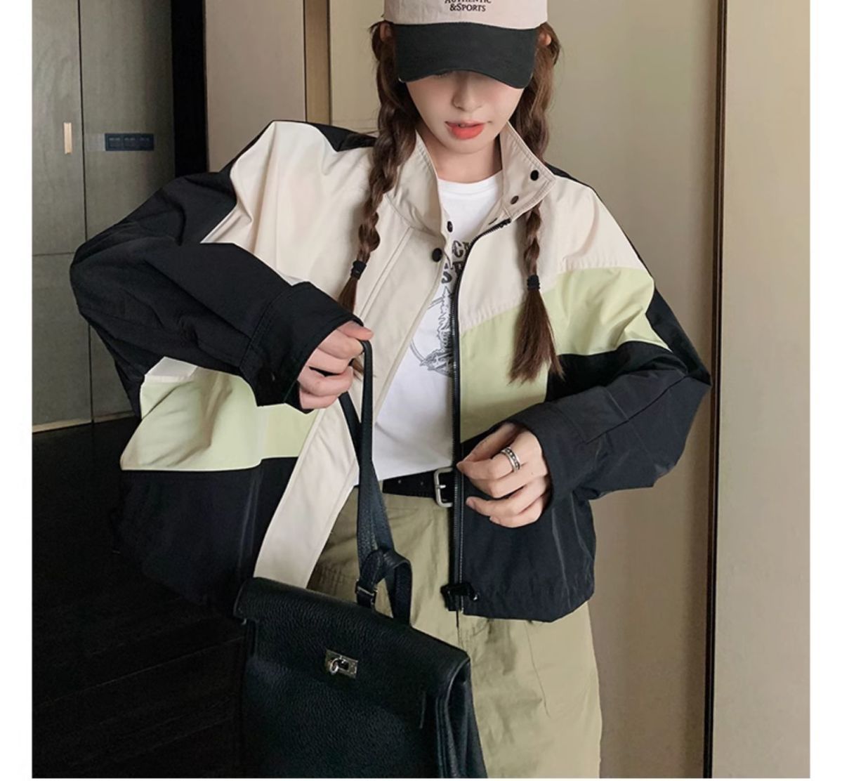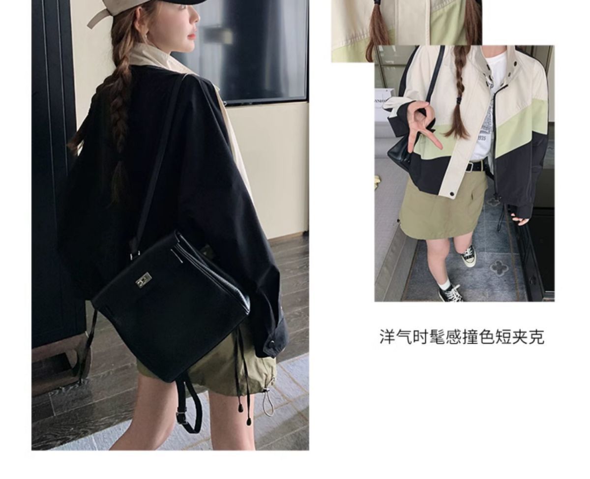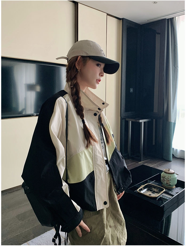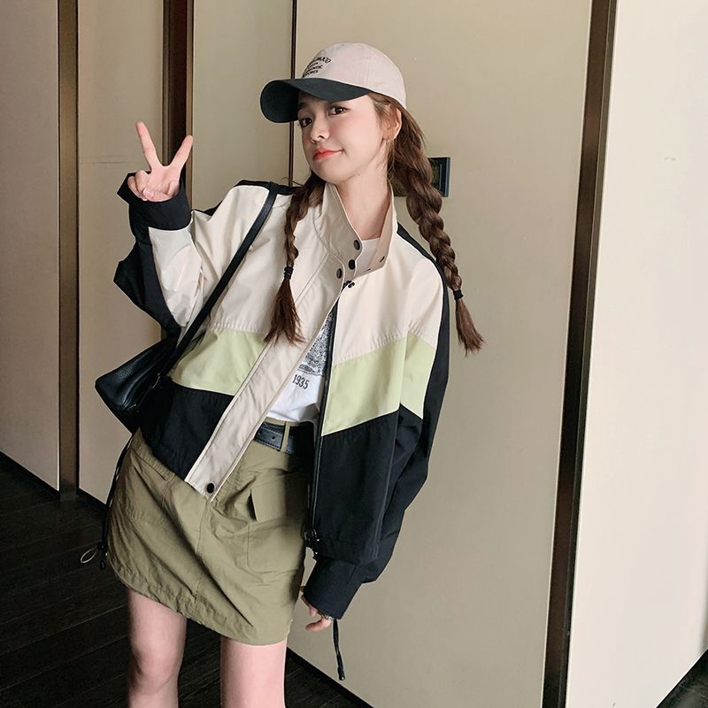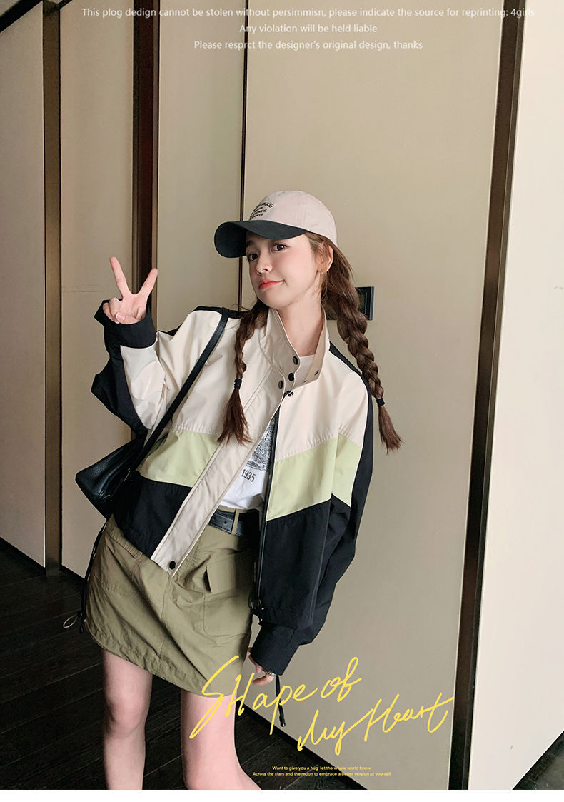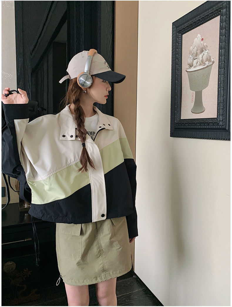 의상 캐주얼 콘트라스트 컬러 2025 스티칭 야구 짧은 재킷 여성 봄과 가을 미국 컬러 블록 느슨한 칼라 재킷스토어 가기