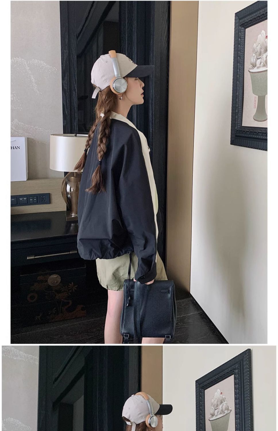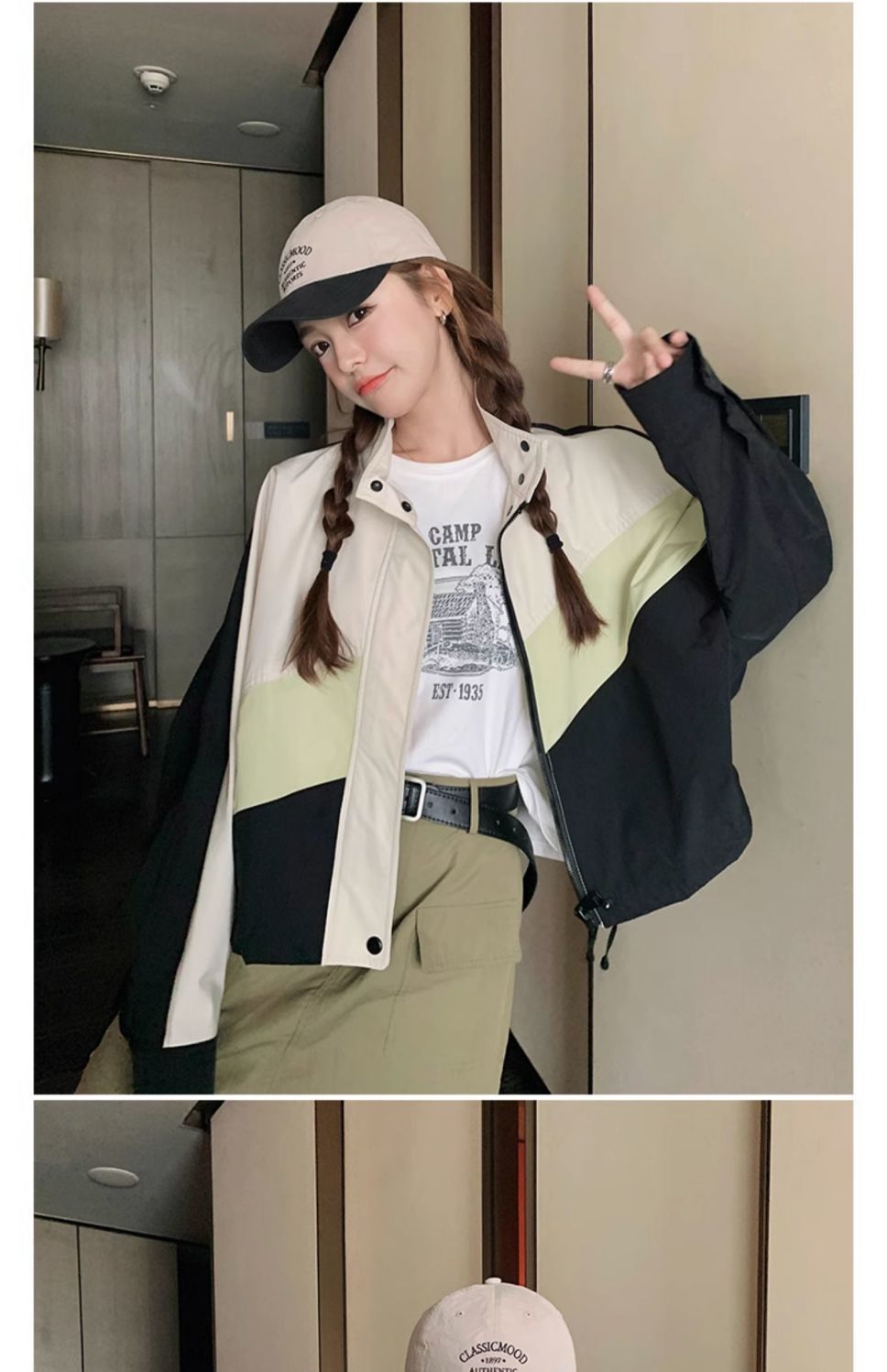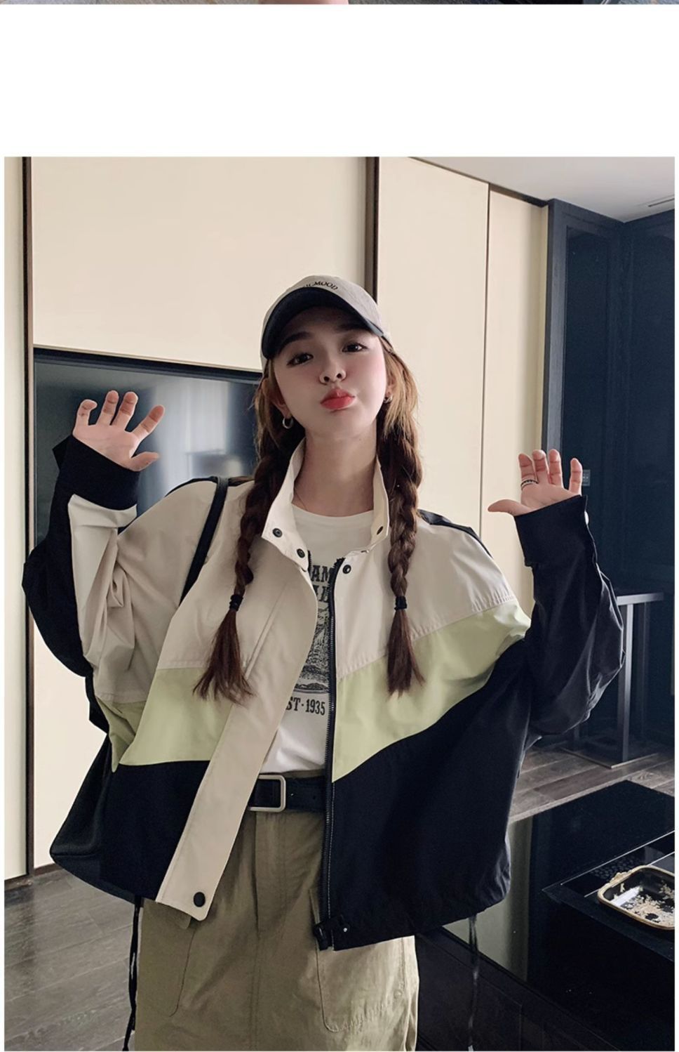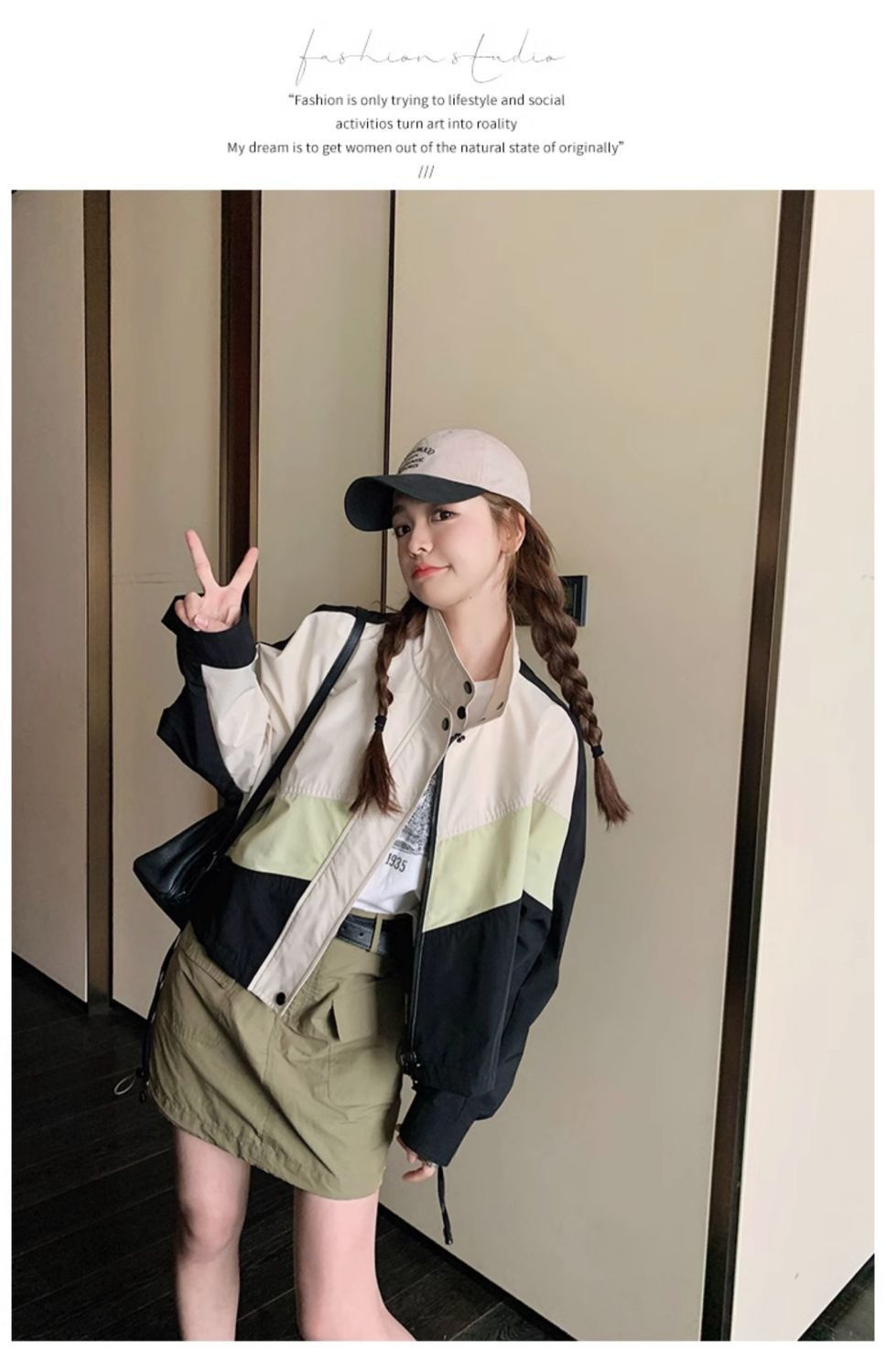의상 캐주얼 콘트라스트 컬러 2025 스티칭 야구 짧은 재킷 여성 봄과 가을 미국 컬러 블록 느슨한 칼라 재킷스토어 가기