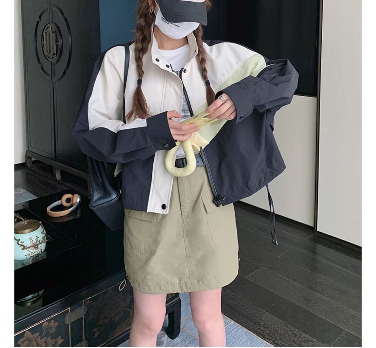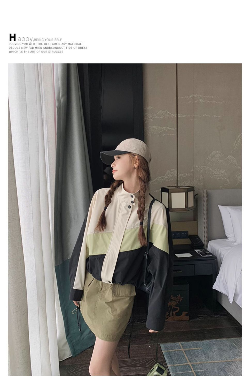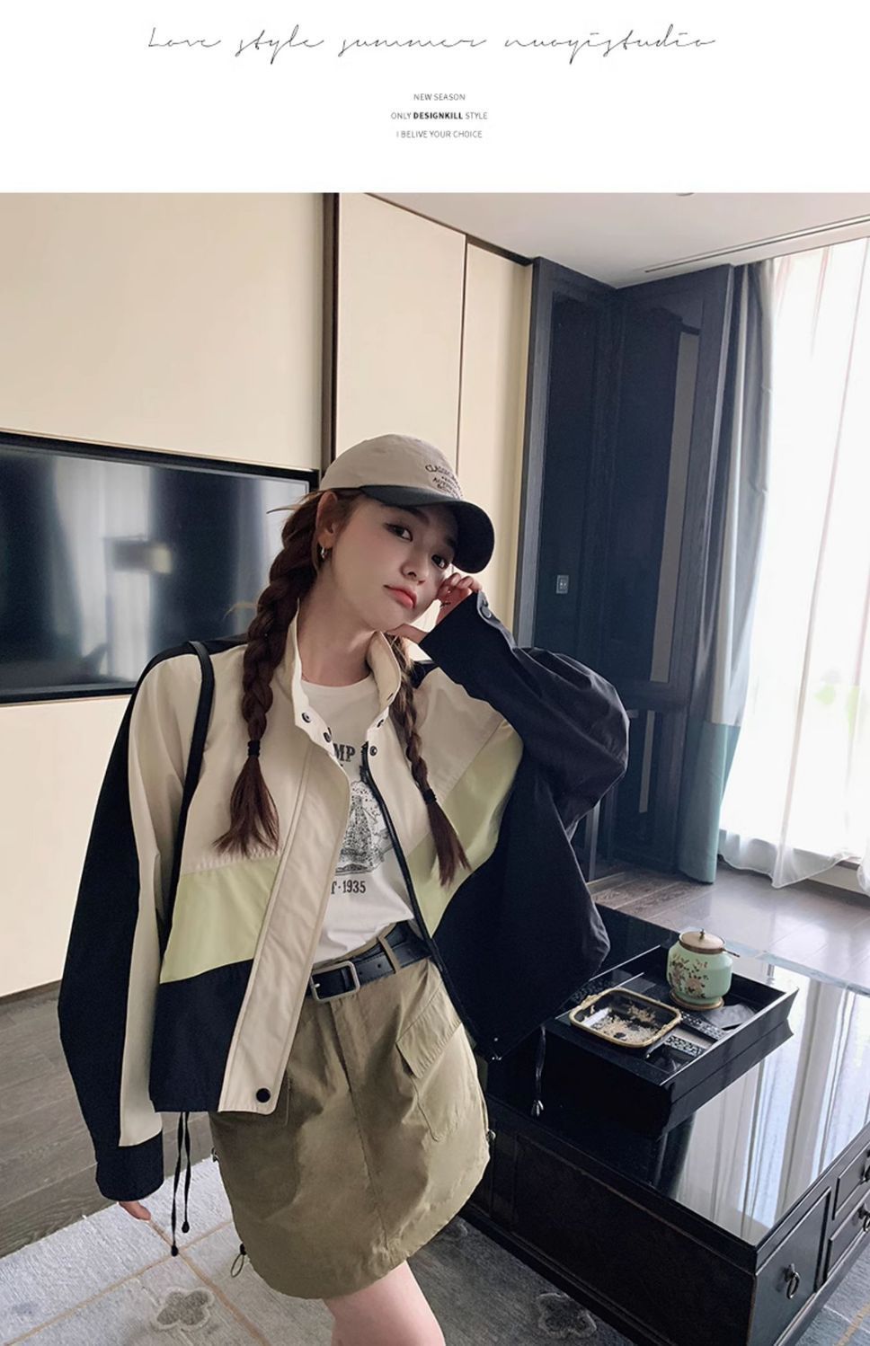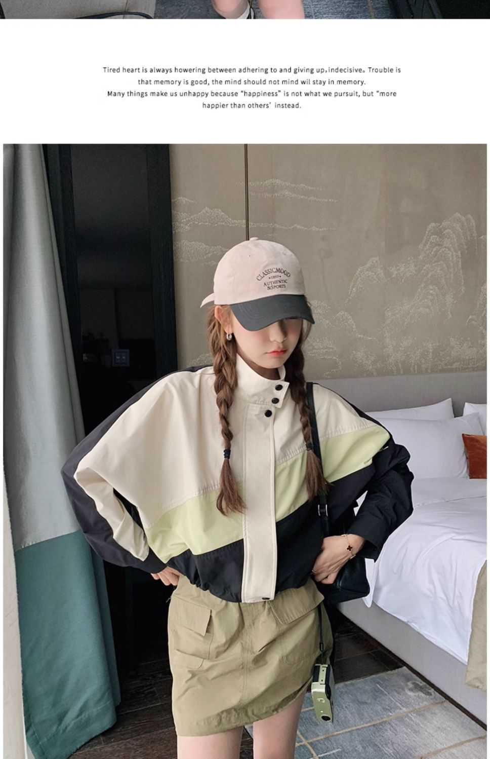 의상 캐주얼 콘트라스트 컬러 2025 스티칭 야구 짧은 재킷 여성 봄과 가을 미국 컬러 블록 느슨한 칼라 재킷스토어 가기