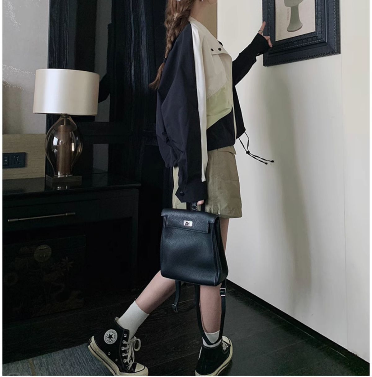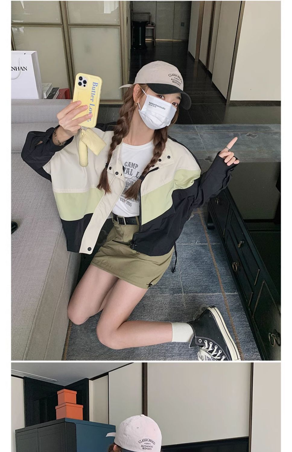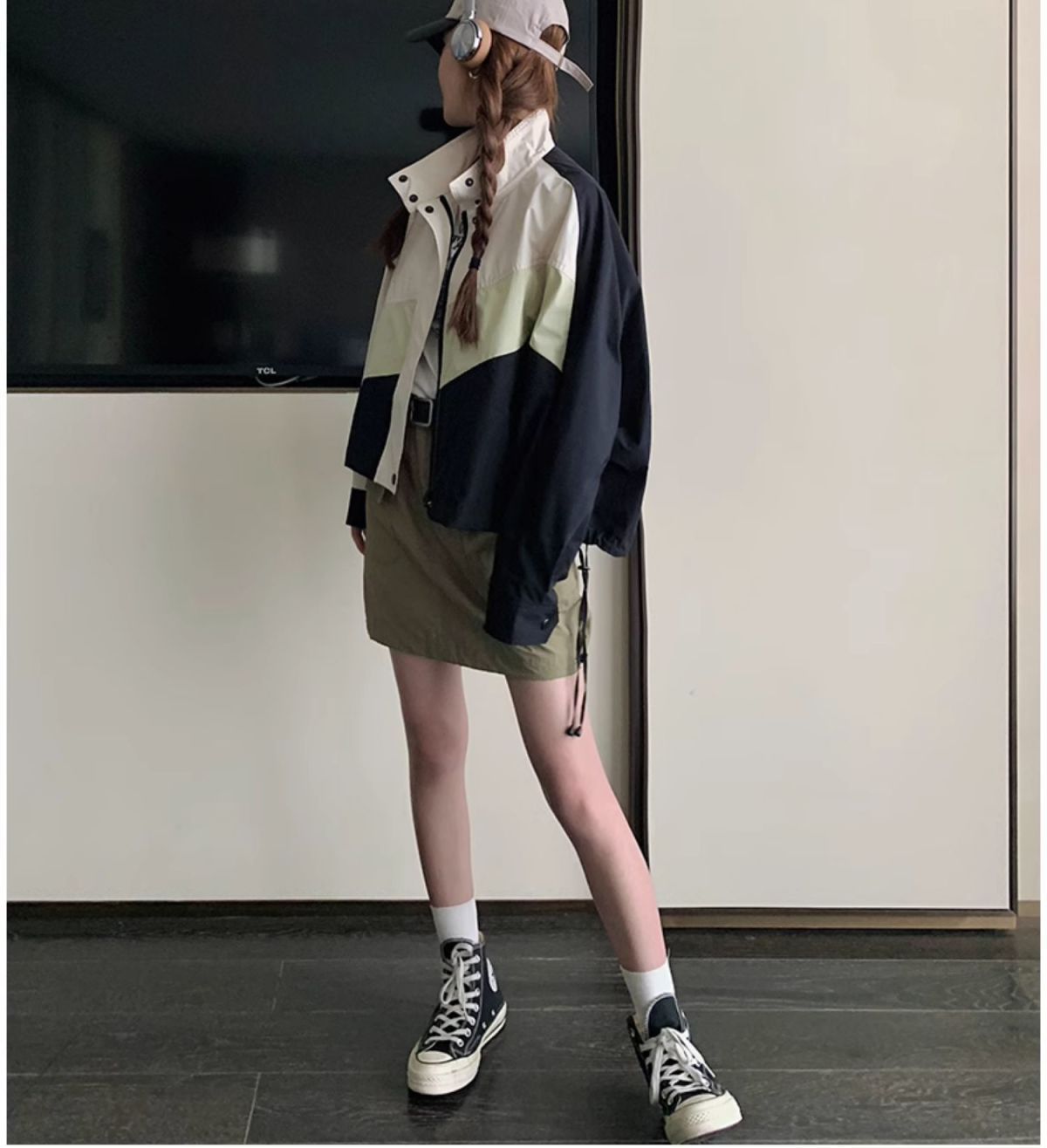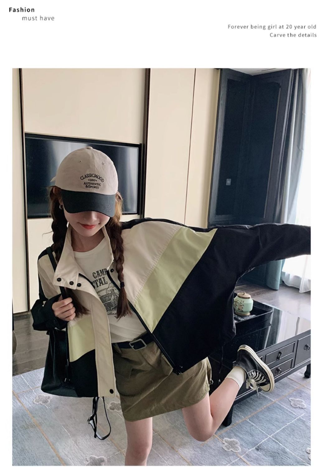 의상 캐주얼 콘트라스트 컬러 2025 스티칭 야구 짧은 재킷 여성 봄과 가을 미국 컬러 블록 느슨한 칼라 재킷스토어 가기