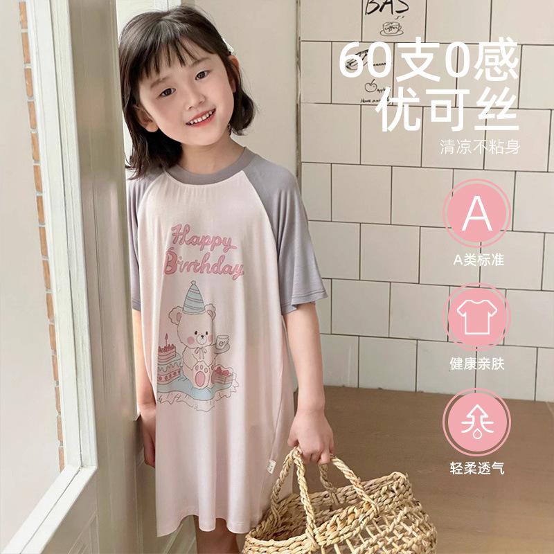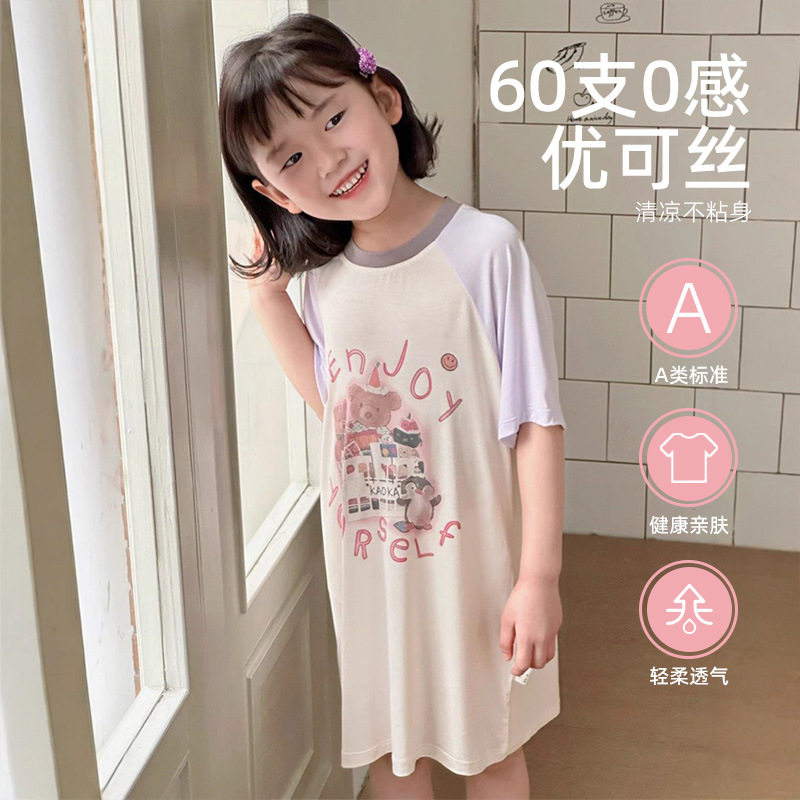 여름 소녀 나이트 드레스 새로운 느슨한 편안한 캐주얼 달콤한 원피스 여성의 귀여운 홈 원피스스토어 가기