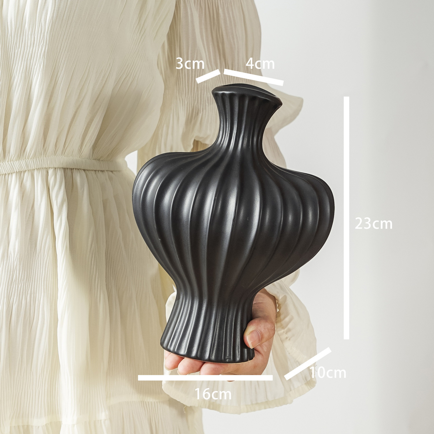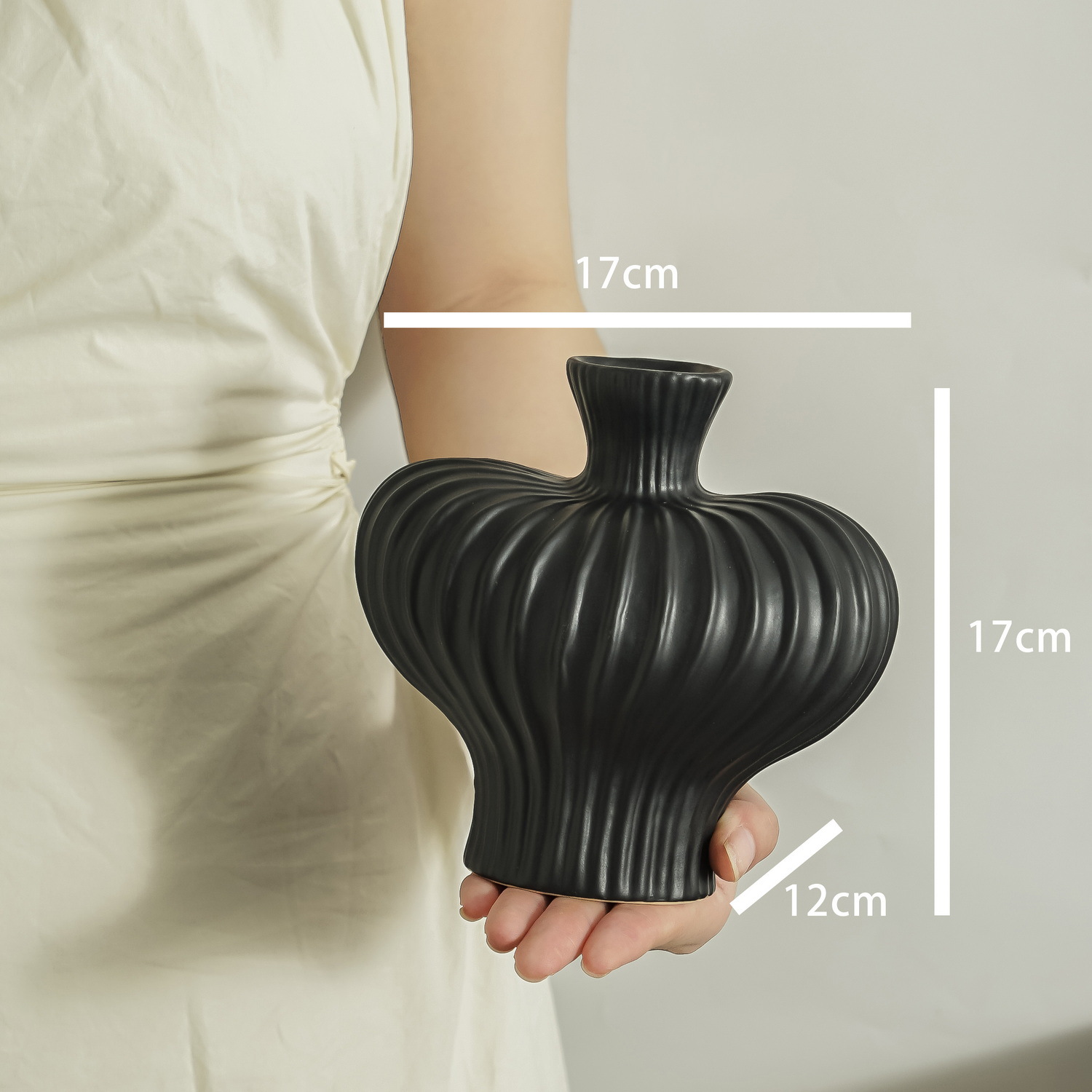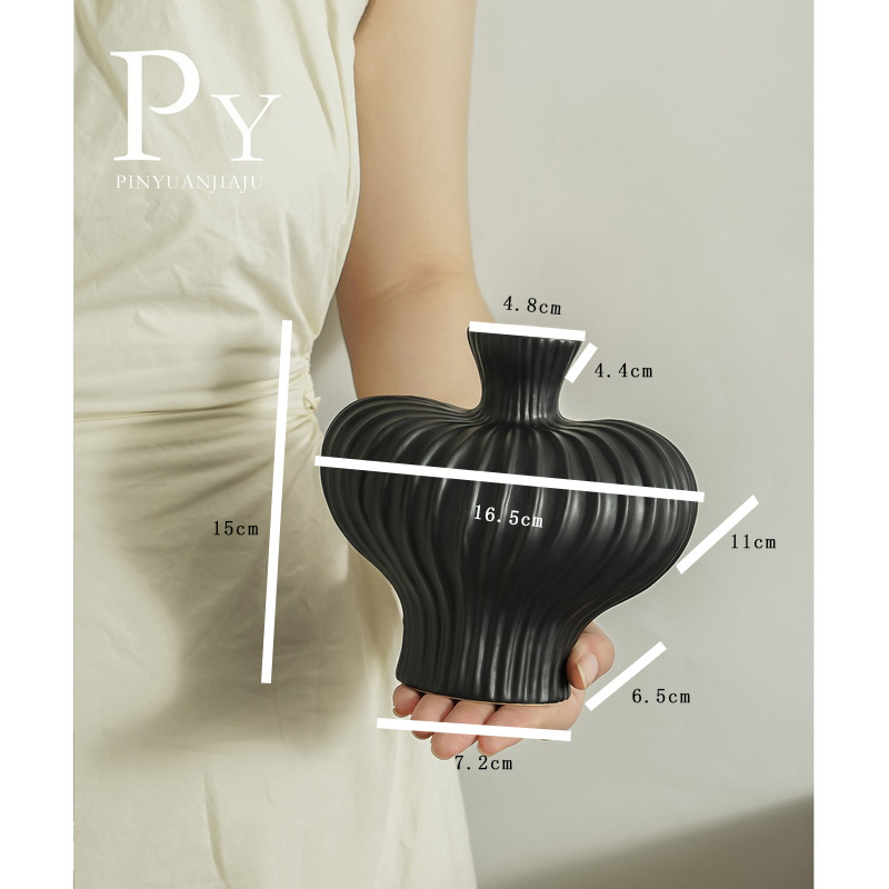 • 큰 배 꽃병 17cm-매트 블랙