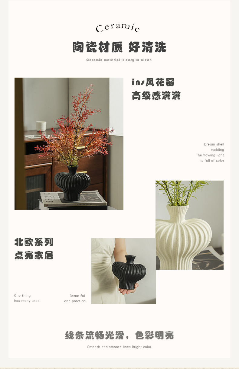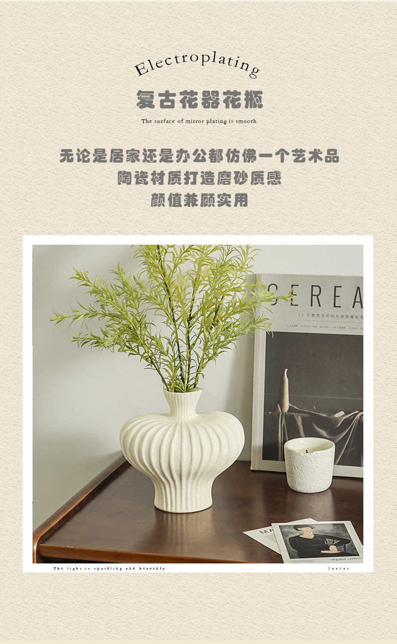 도자기 꽃병 꽃꽂이, 고급스럽고 우아한 와비사비 스타일, 현관, 거실, TV장식장용 창의적인 레트로 장식품