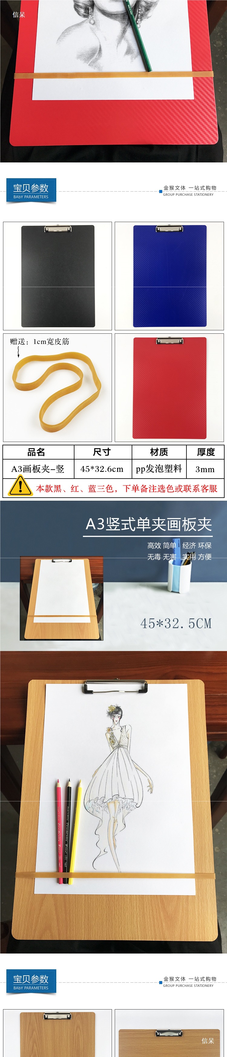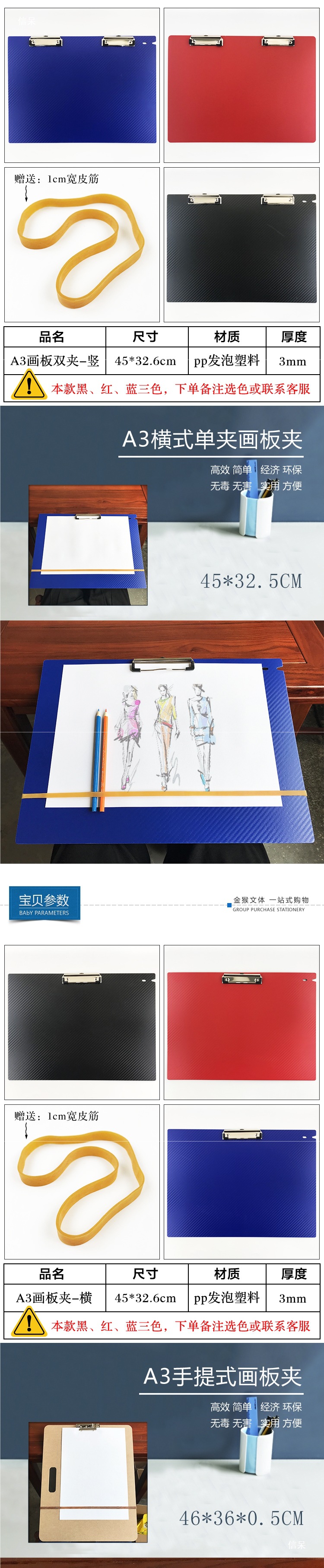 • A3 수직 플라스틱 드로잉 보드-단일 클립 45*32.5 단가/무료 고무 밴드