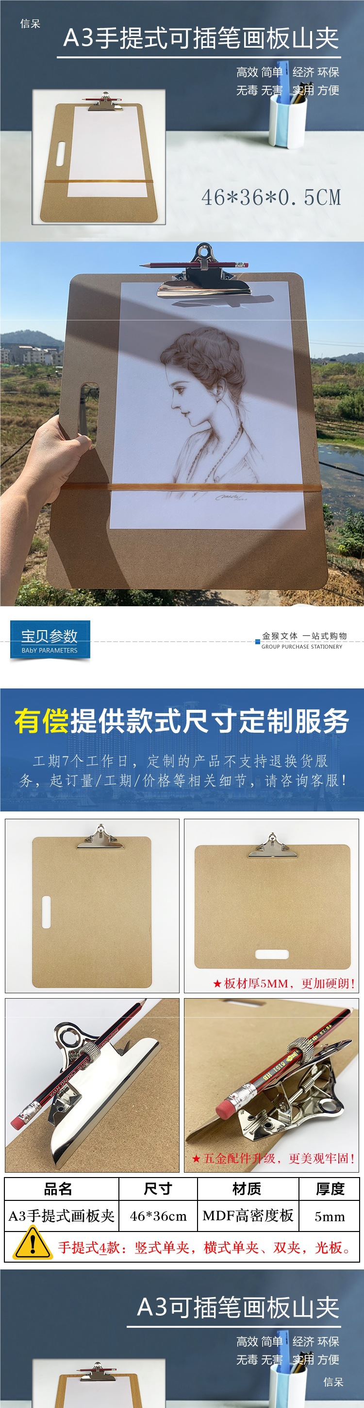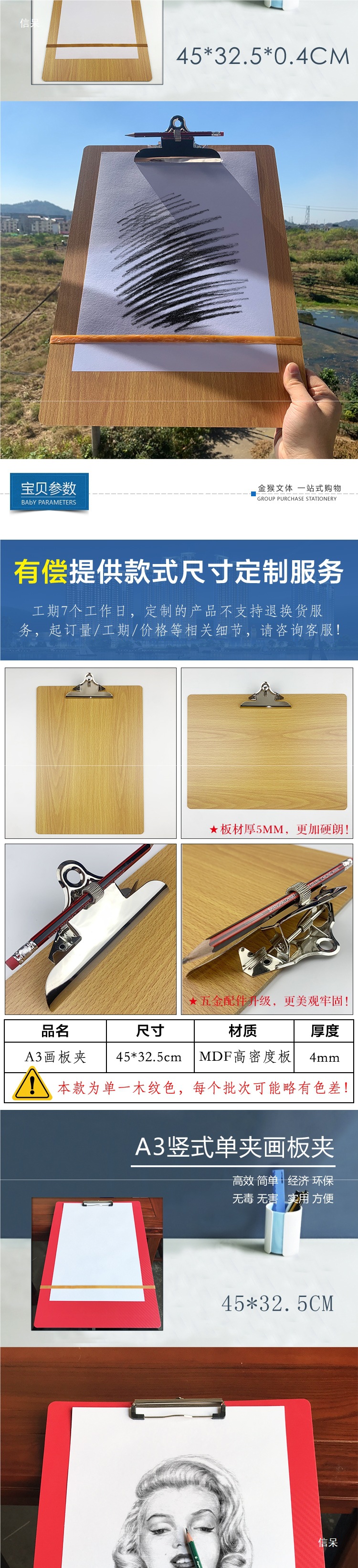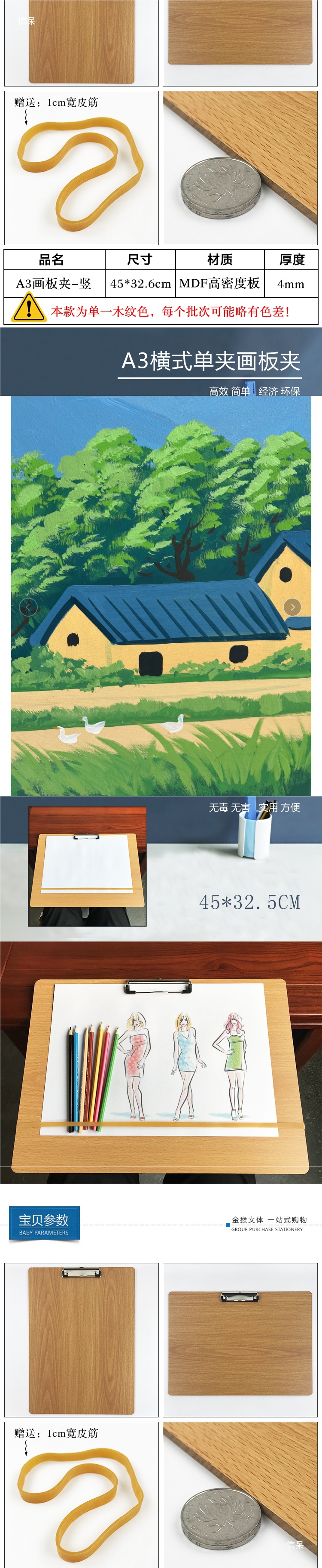 • A3 휴대용 나무 화판-가로 싱글 클립(46*36) ★ 두꺼운 5MM