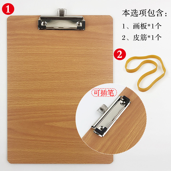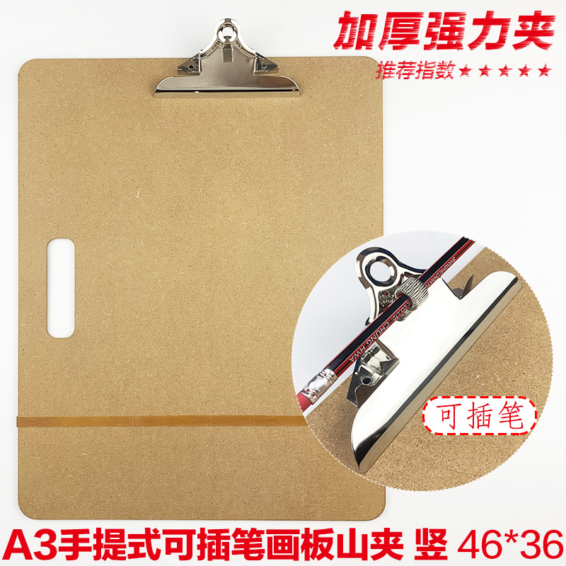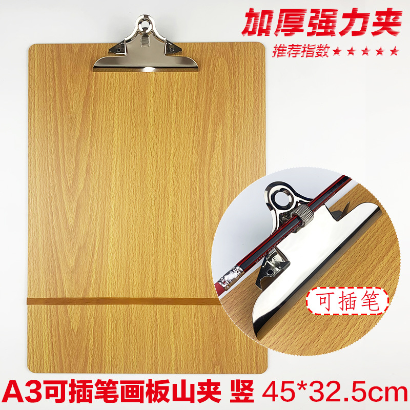 • A3 휴대용 삽입형 펜 나무 화판 마운틴 클립 - 수직, 고무 밴드 포함