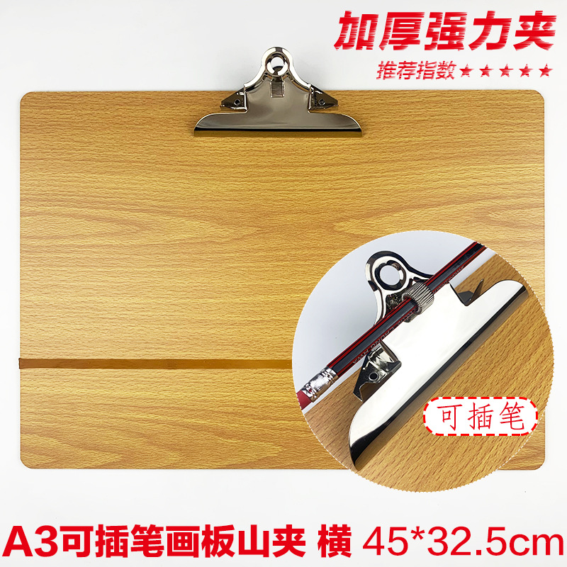 • A3 삽입형 펜 나무 화판 마운틴 클립 - 가로, 고무 밴드 포함