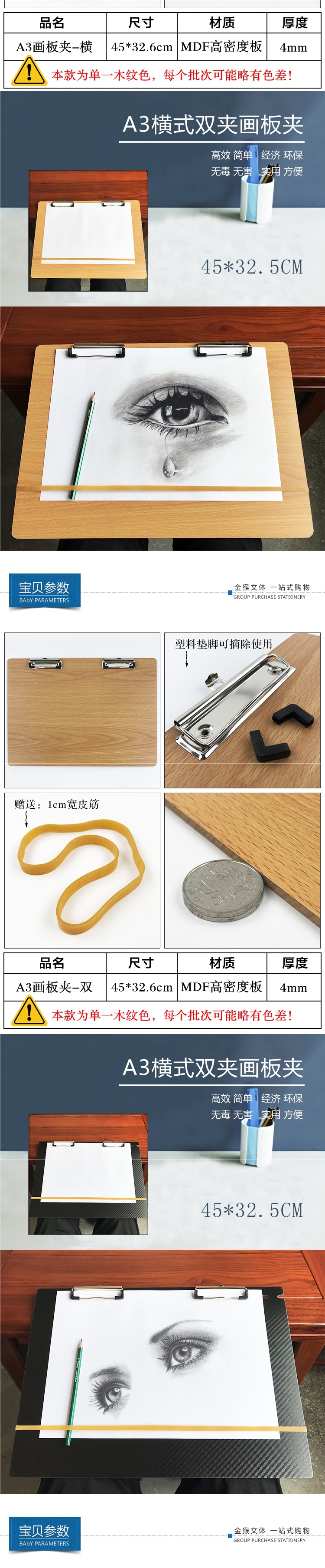 • A3 휴대용 나무 화판-가로 더블 클립(46*36) ★ 두꺼운 5MM