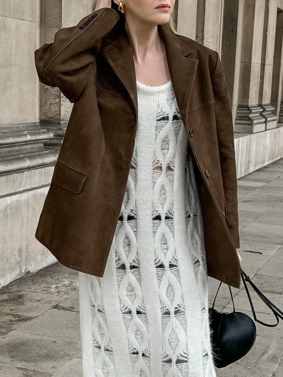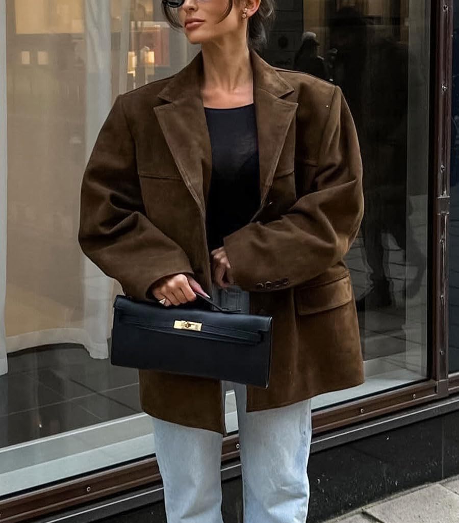 유럽과 미국 여성용 인조 스웨이드 정장 재킷 가을 겨울 크로스보더 아마존 레트로 캐주얼 코트 여성용 루즈핏 한국 스타일스토어 가기