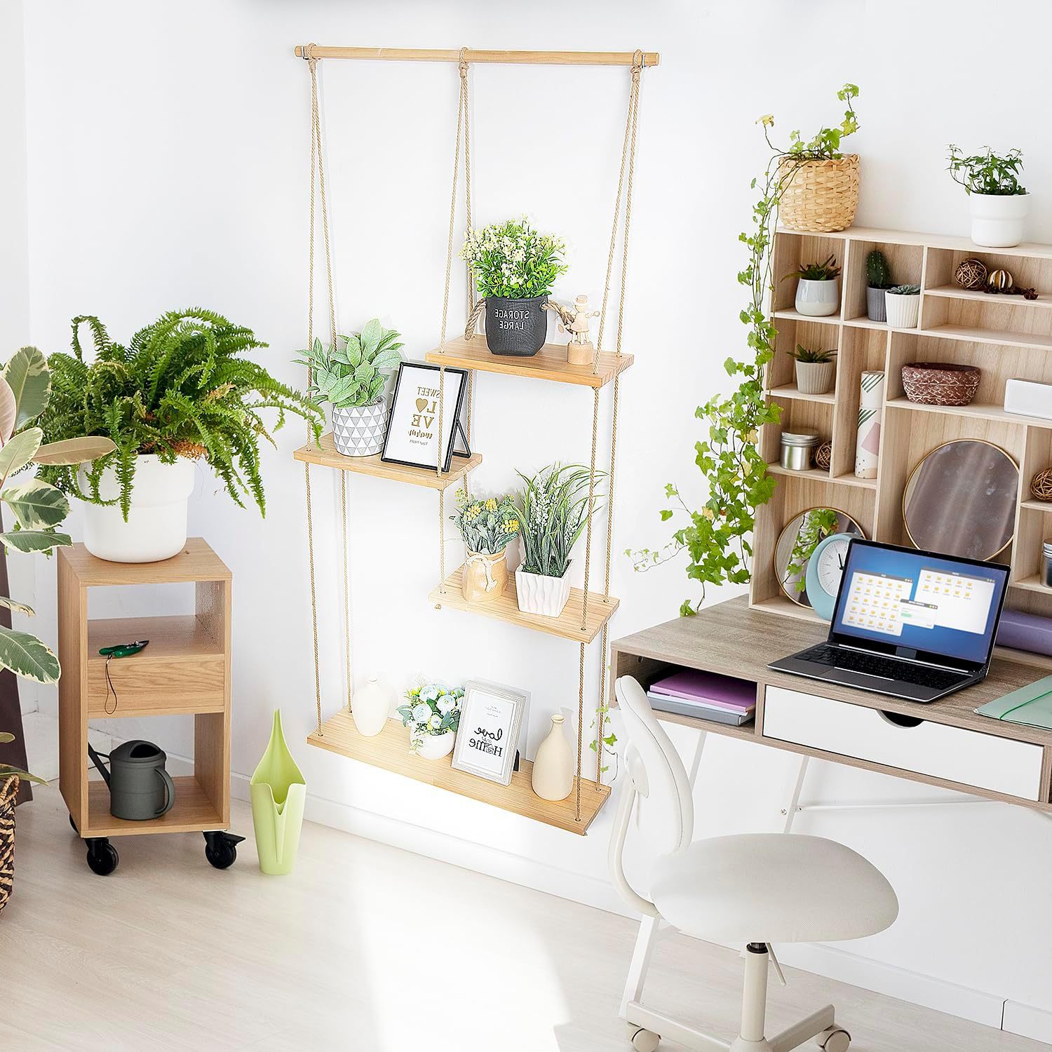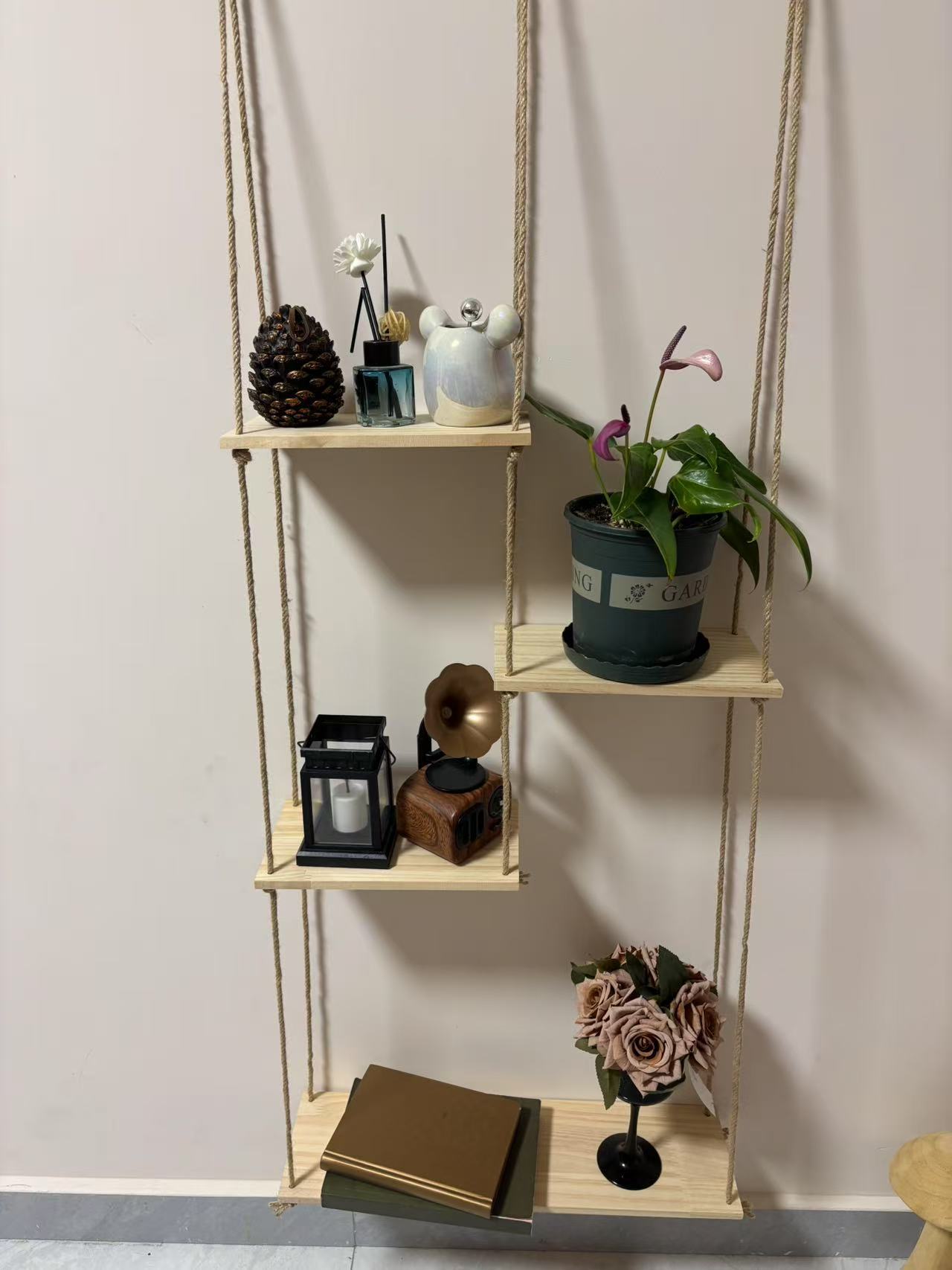 새로운 보헤미안 면 로프 손으로 짠 저장 랙 우드 보드 홈 홈스테이 장식 꽃 냄비 보관