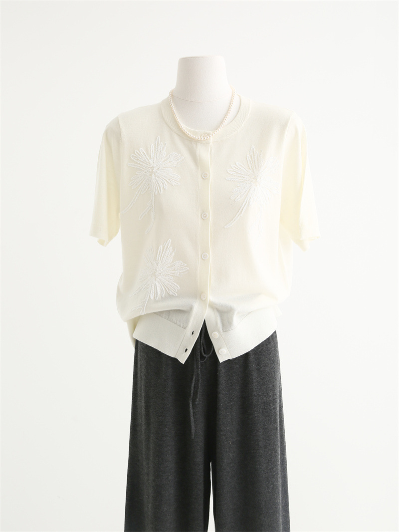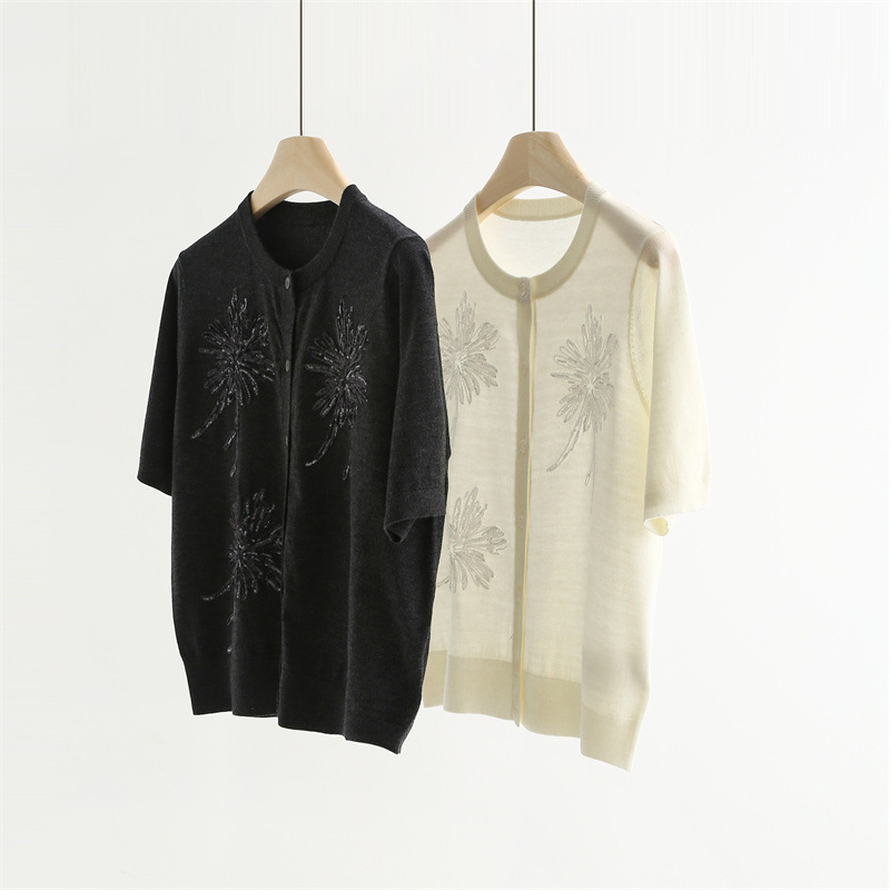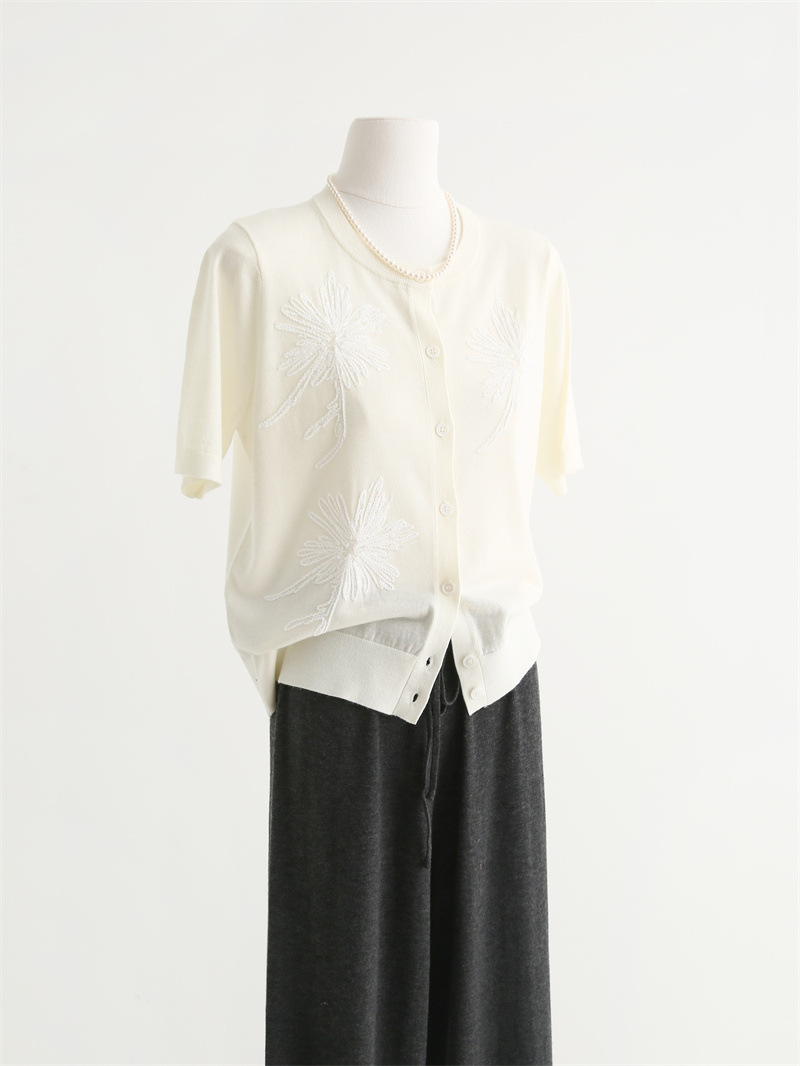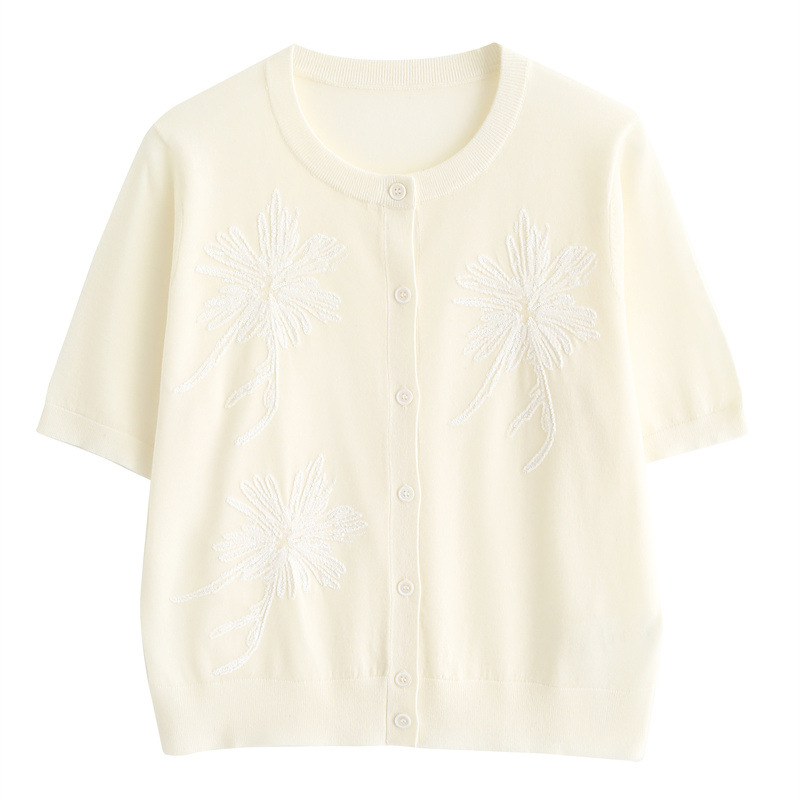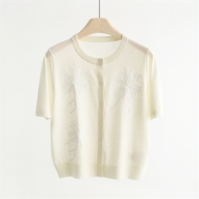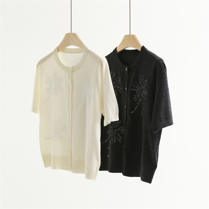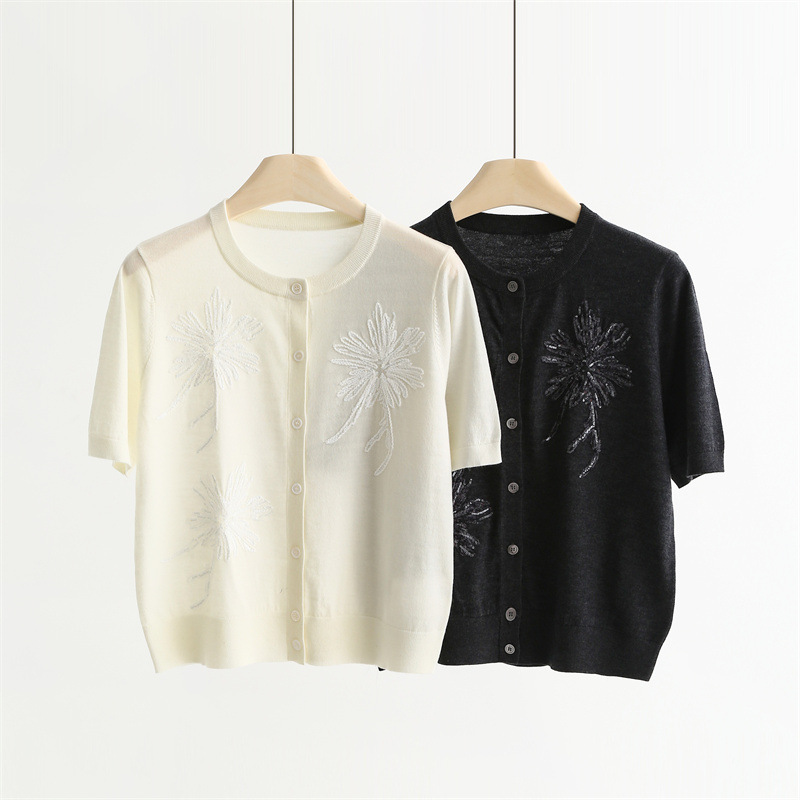 款号:QTQ-16152#BC刺绣花朵圆领短袖