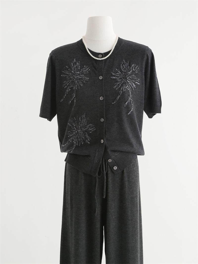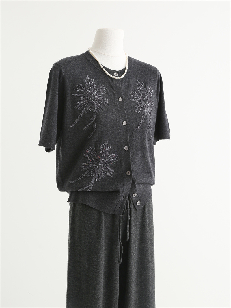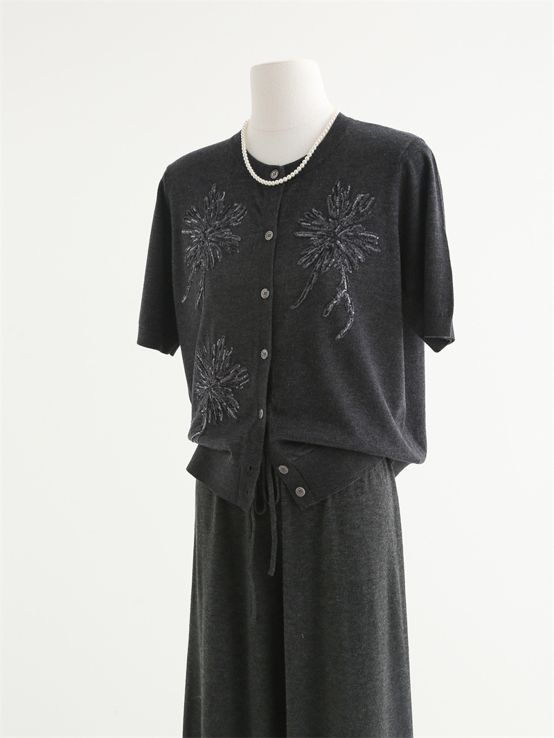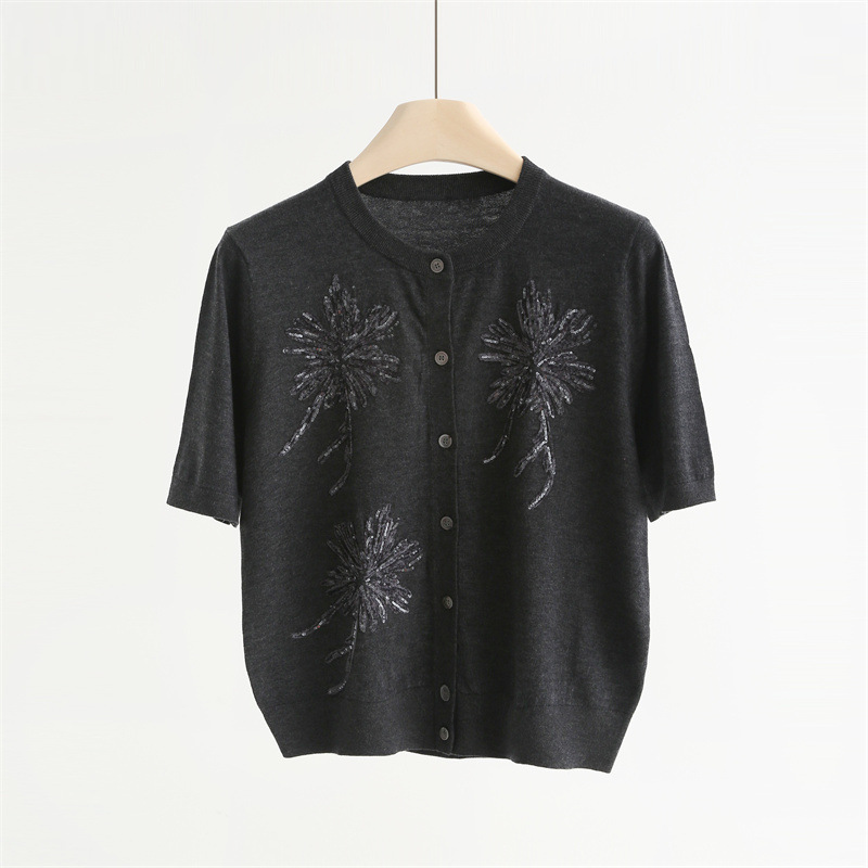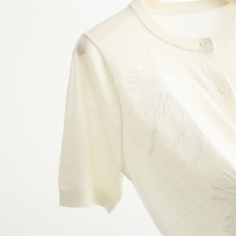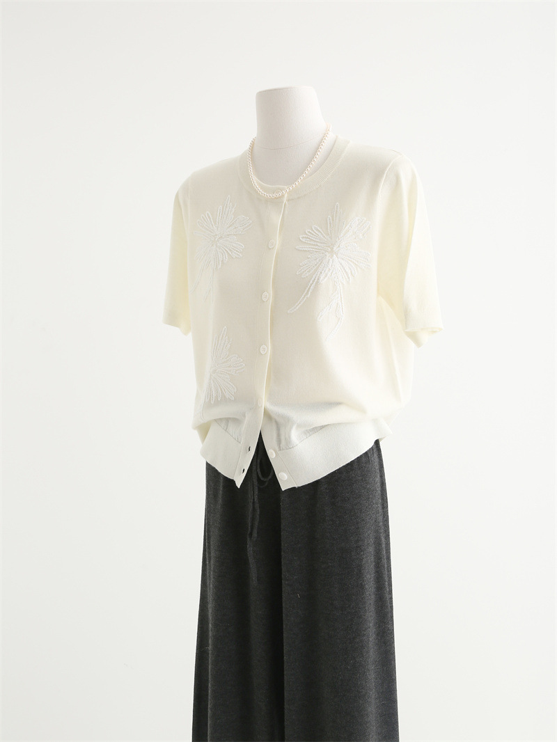 款号:QTQ-16152#BC刺绣花朵圆领短袖
