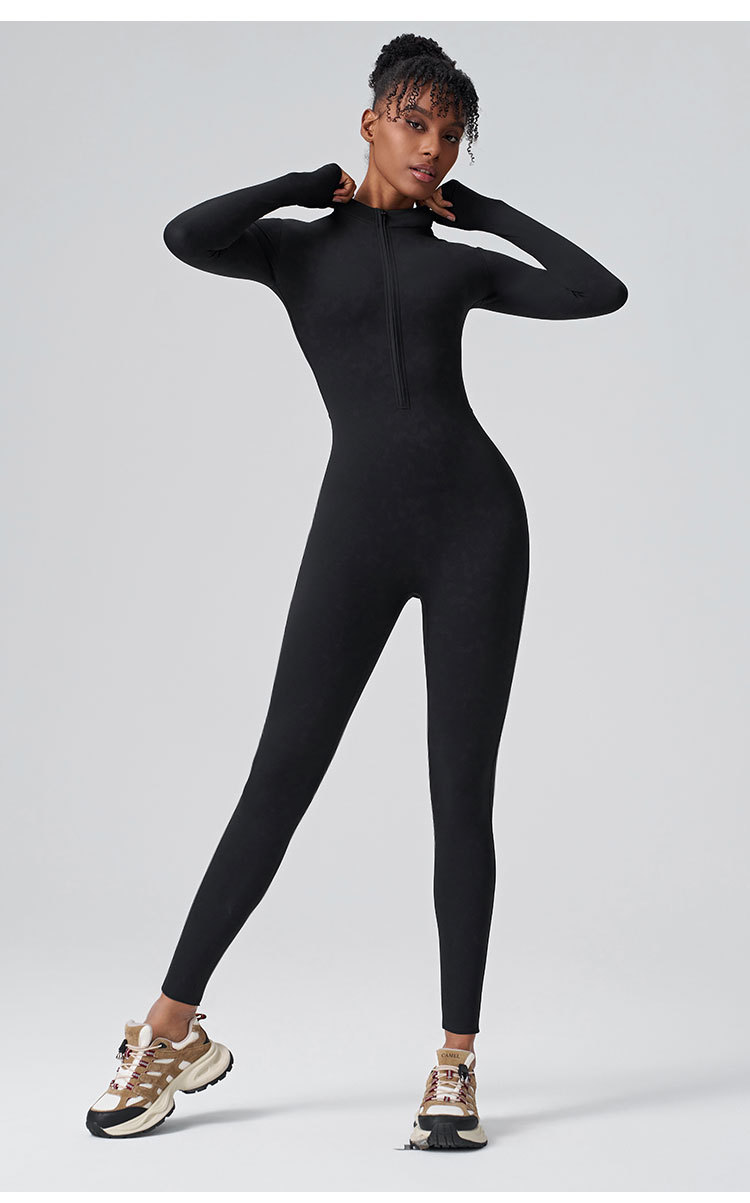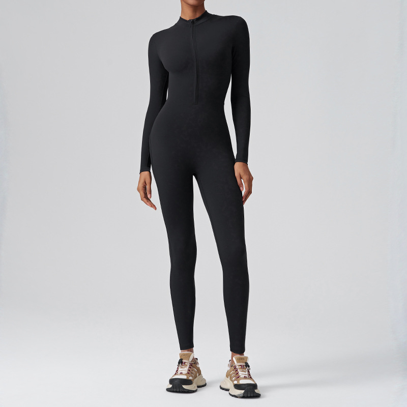 Huaton 국경 아마존 점프 슈트 요가 긴팔 지퍼 꽉 끼는 엉덩이 리프팅 당황스러운 라인 없음 유럽과 미국의 점프 슈트 바지스토어 가기