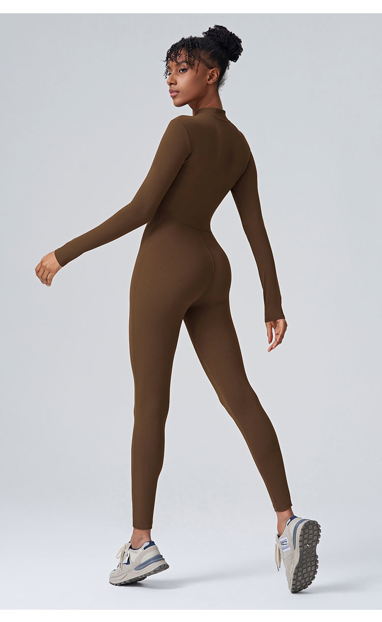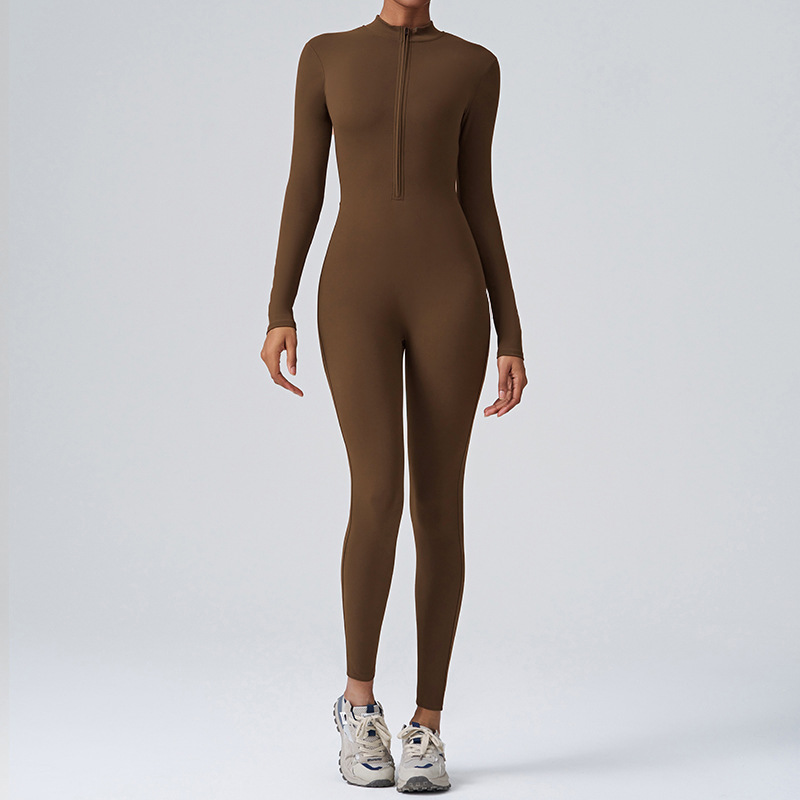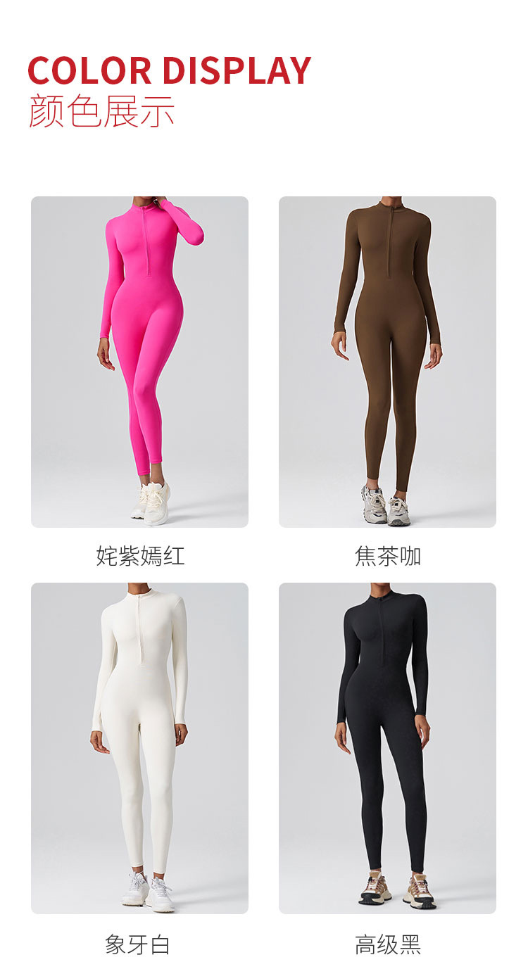 Huaton 국경 아마존 점프 슈트 요가 긴팔 지퍼 꽉 끼는 엉덩이 리프팅 당황스러운 라인 없음 유럽과 미국의 점프 슈트 바지