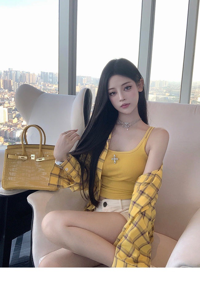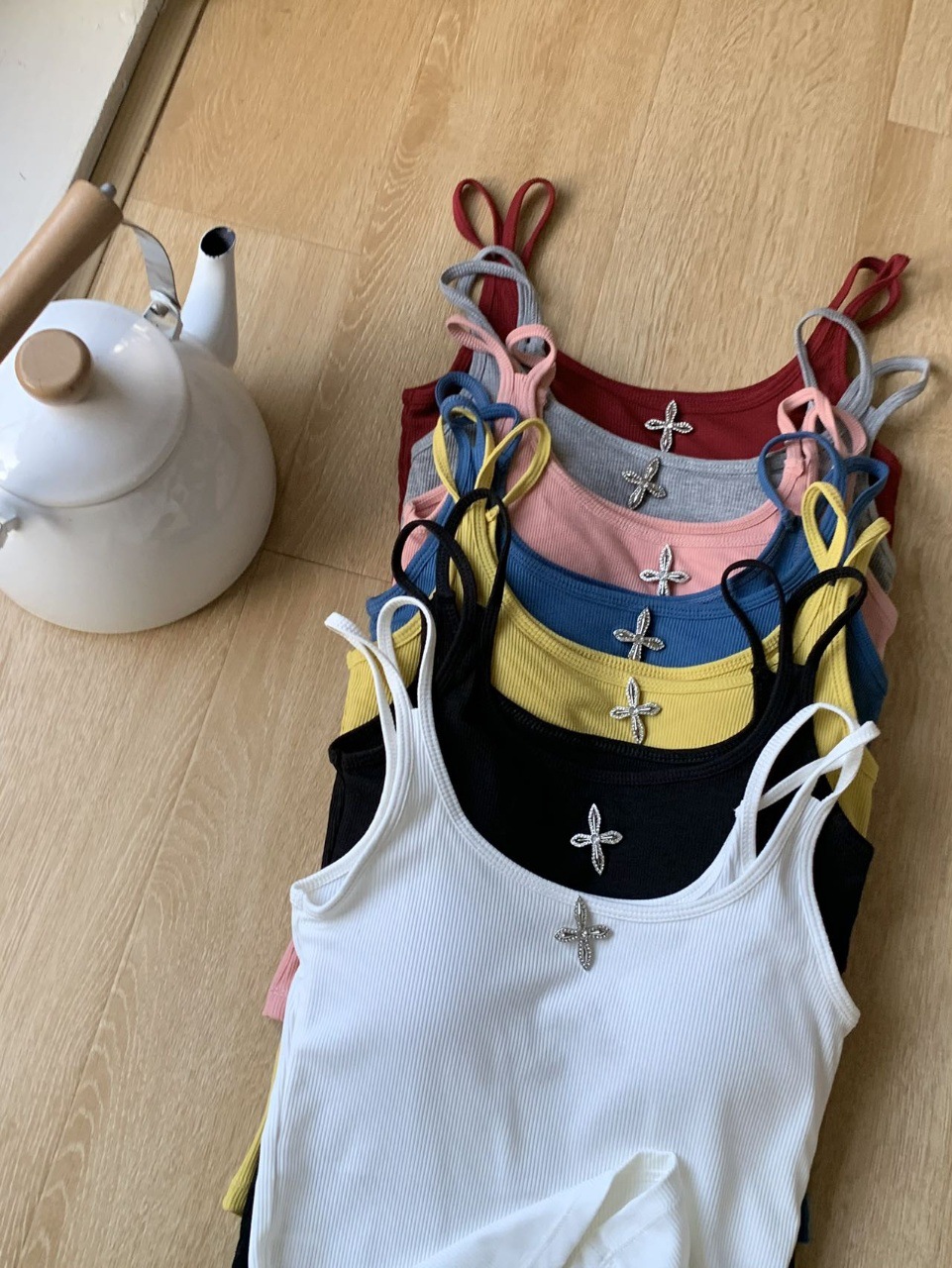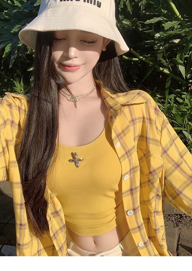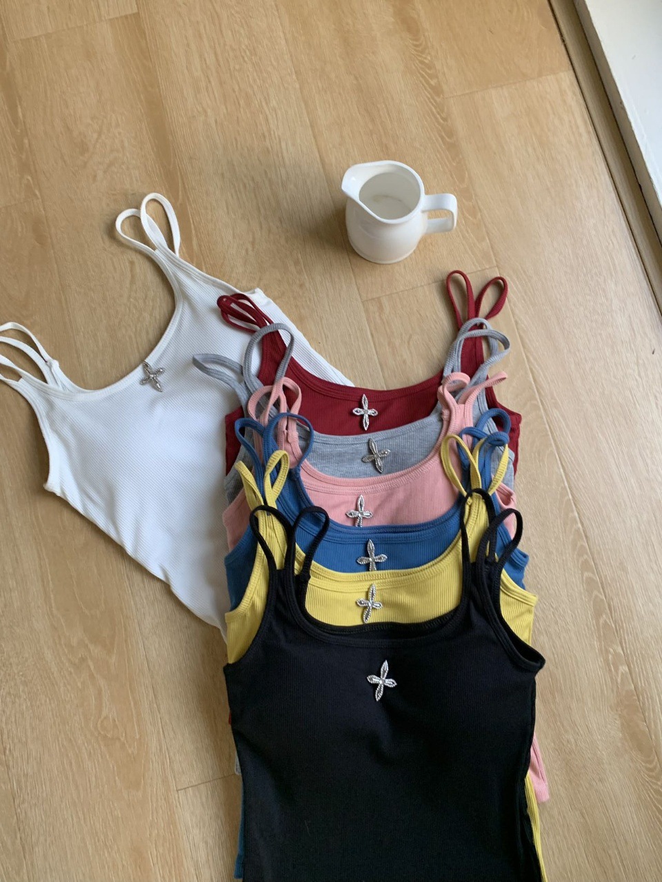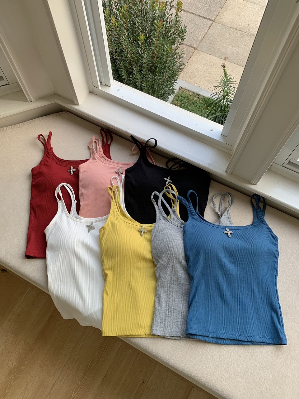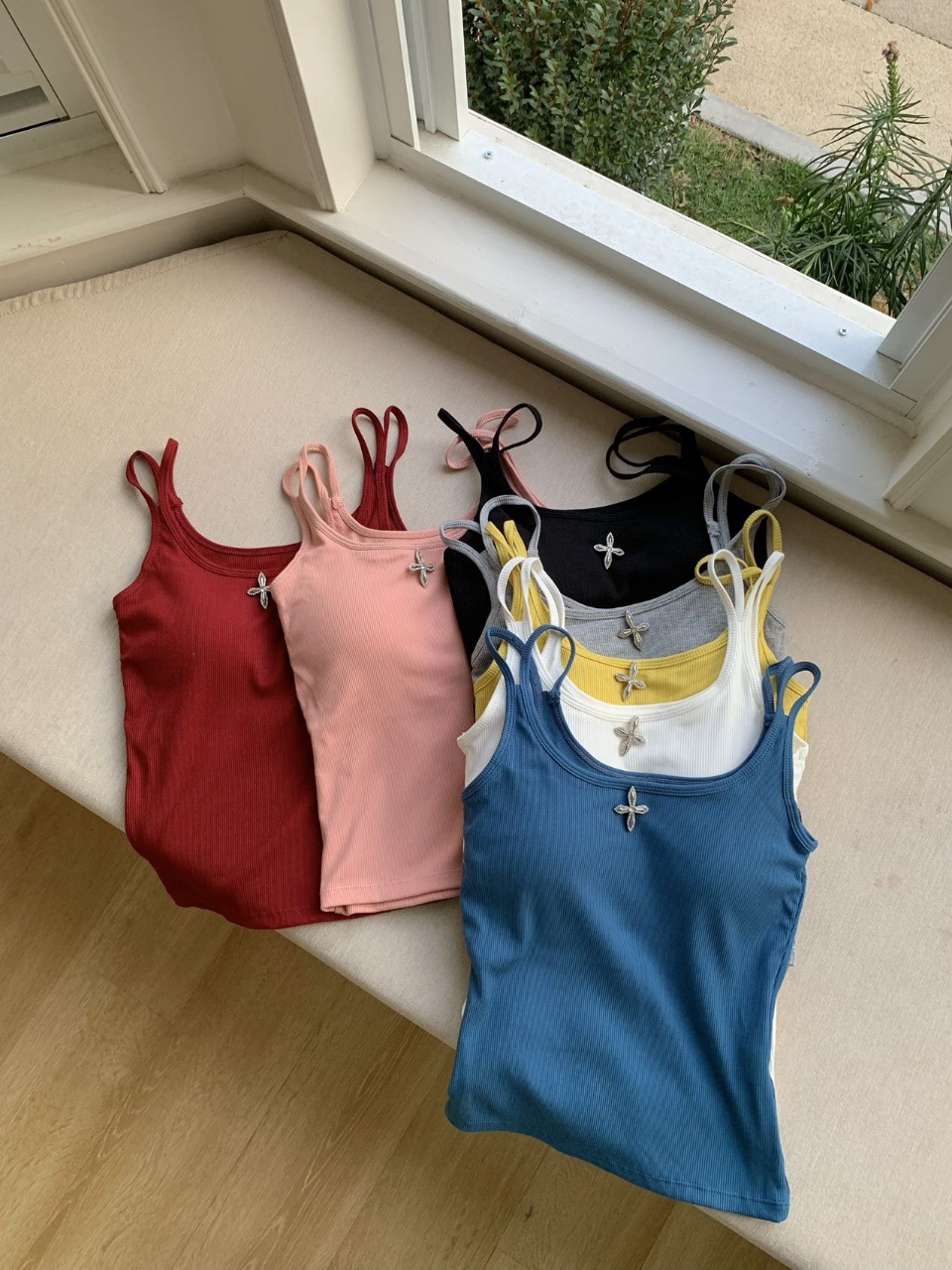 가슴 패드가 있는 여름용 여성용 아메리칸 디자인 핫걸 캐미솔, 라운드넥, 슬림핏, 이너웨어 및 아우터탑스토어 가기