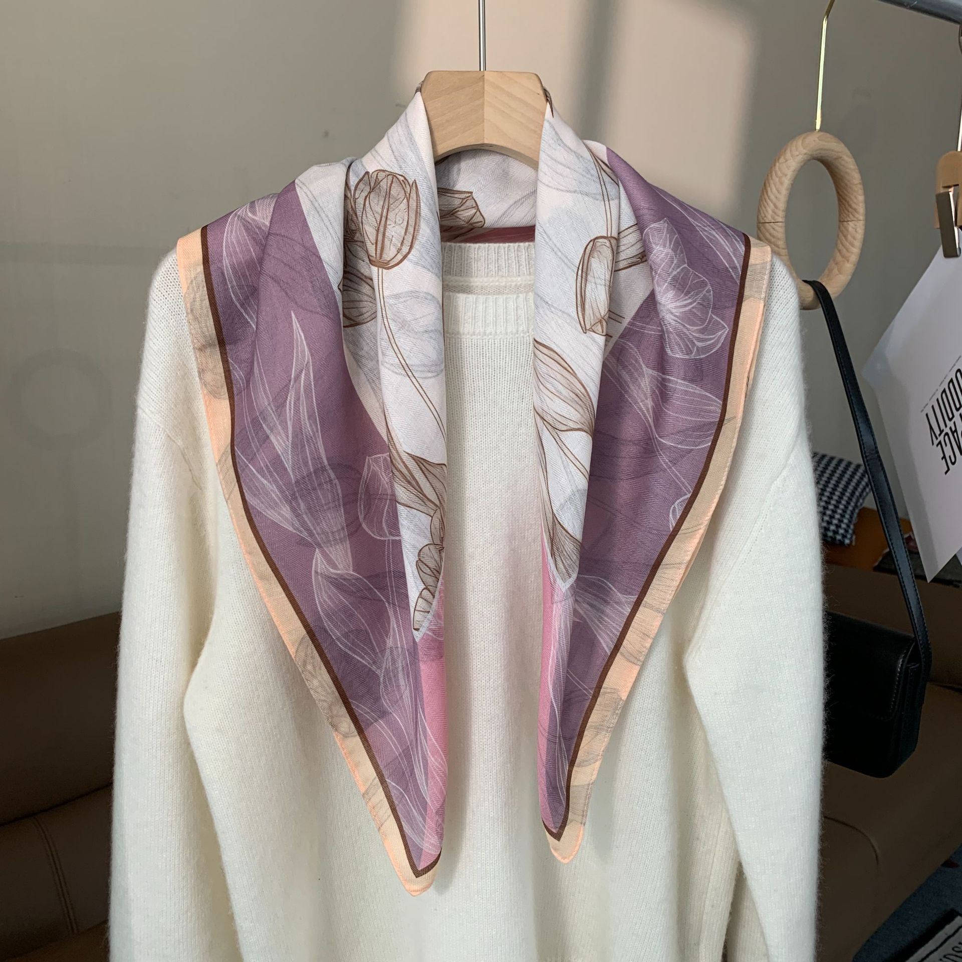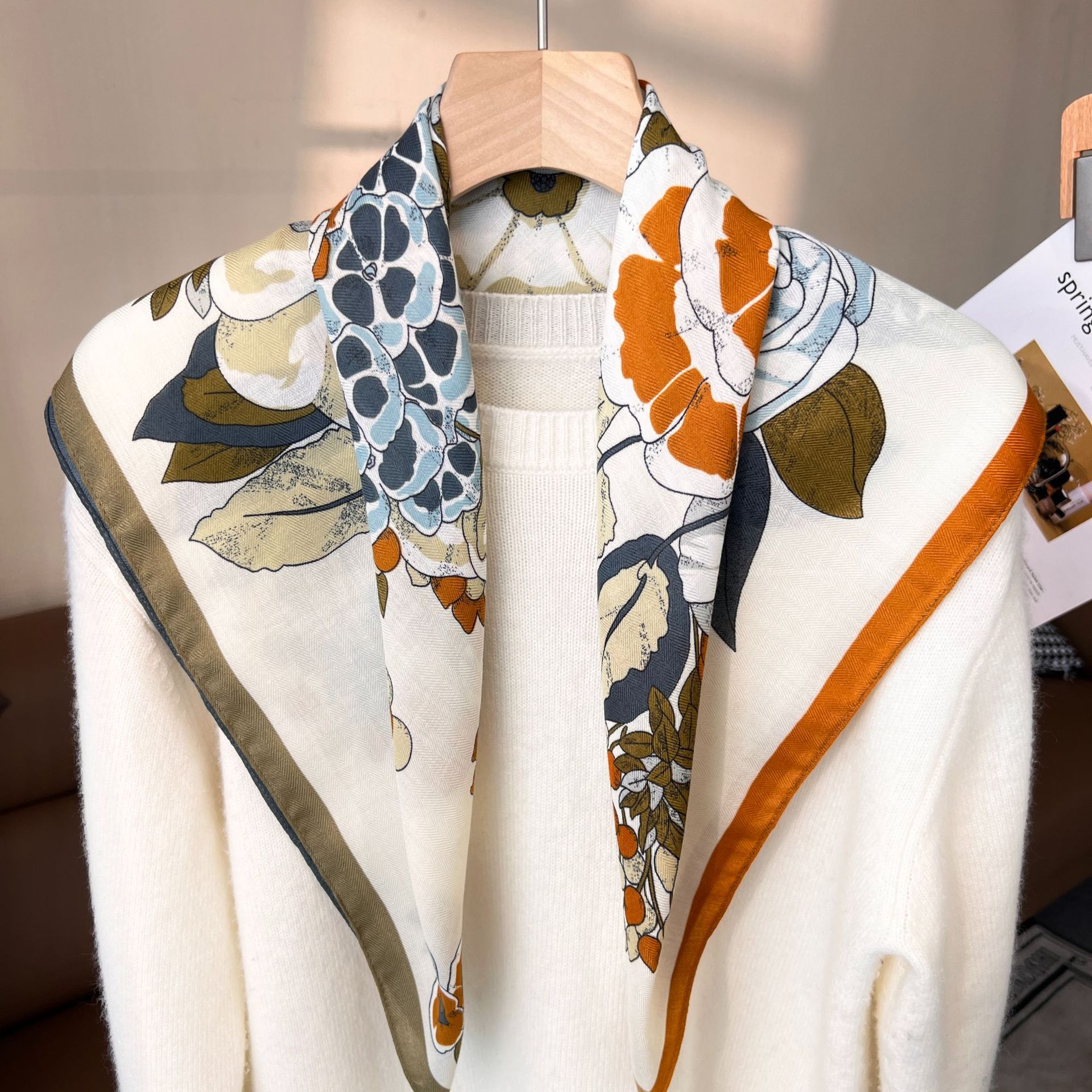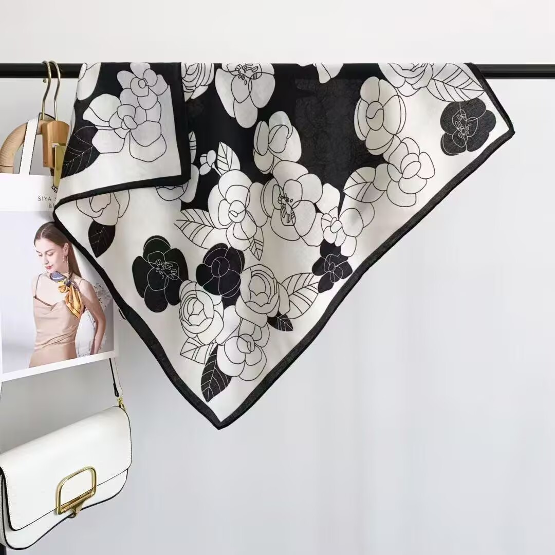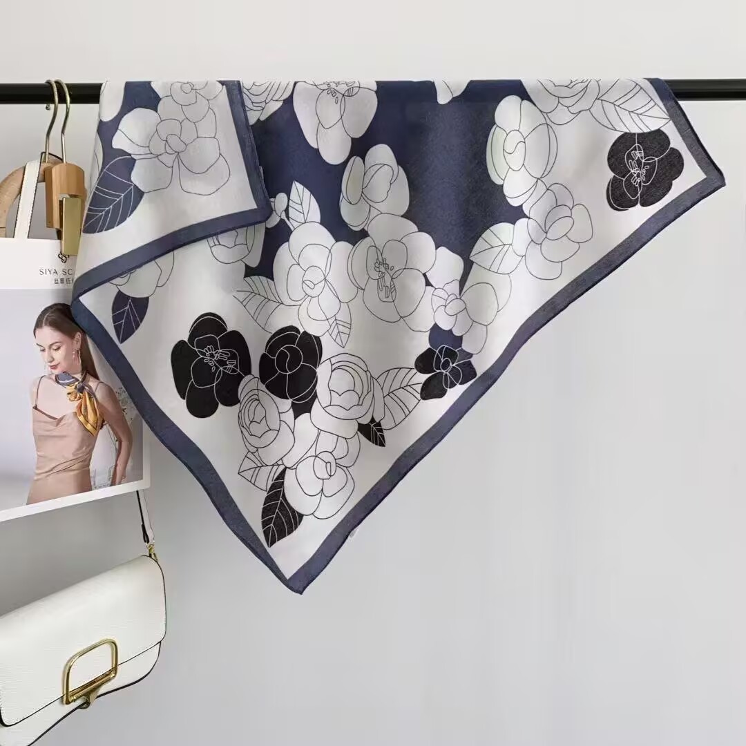 실크 스카프 여성 식물 꽃 스카프 작은 광장 스카프 올 매치 레트로 하이 엔드 서양식 가을 및 겨울