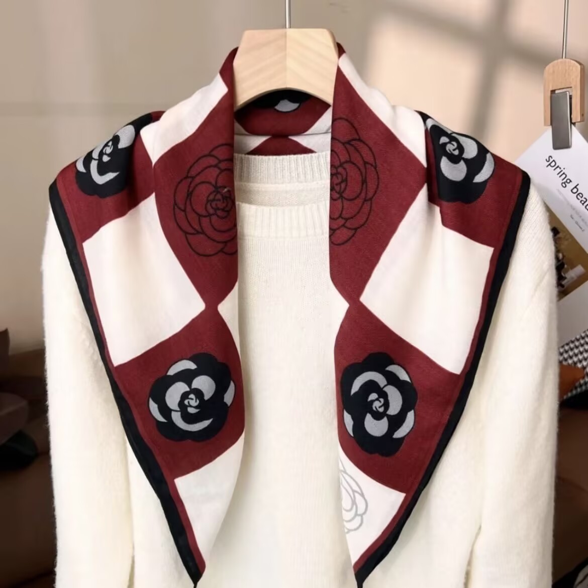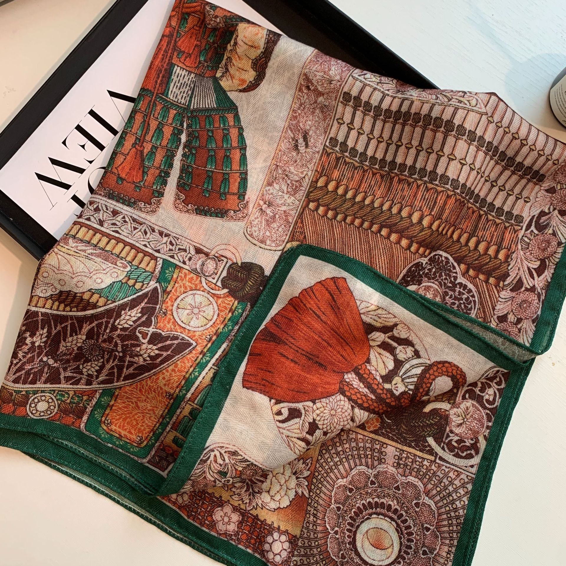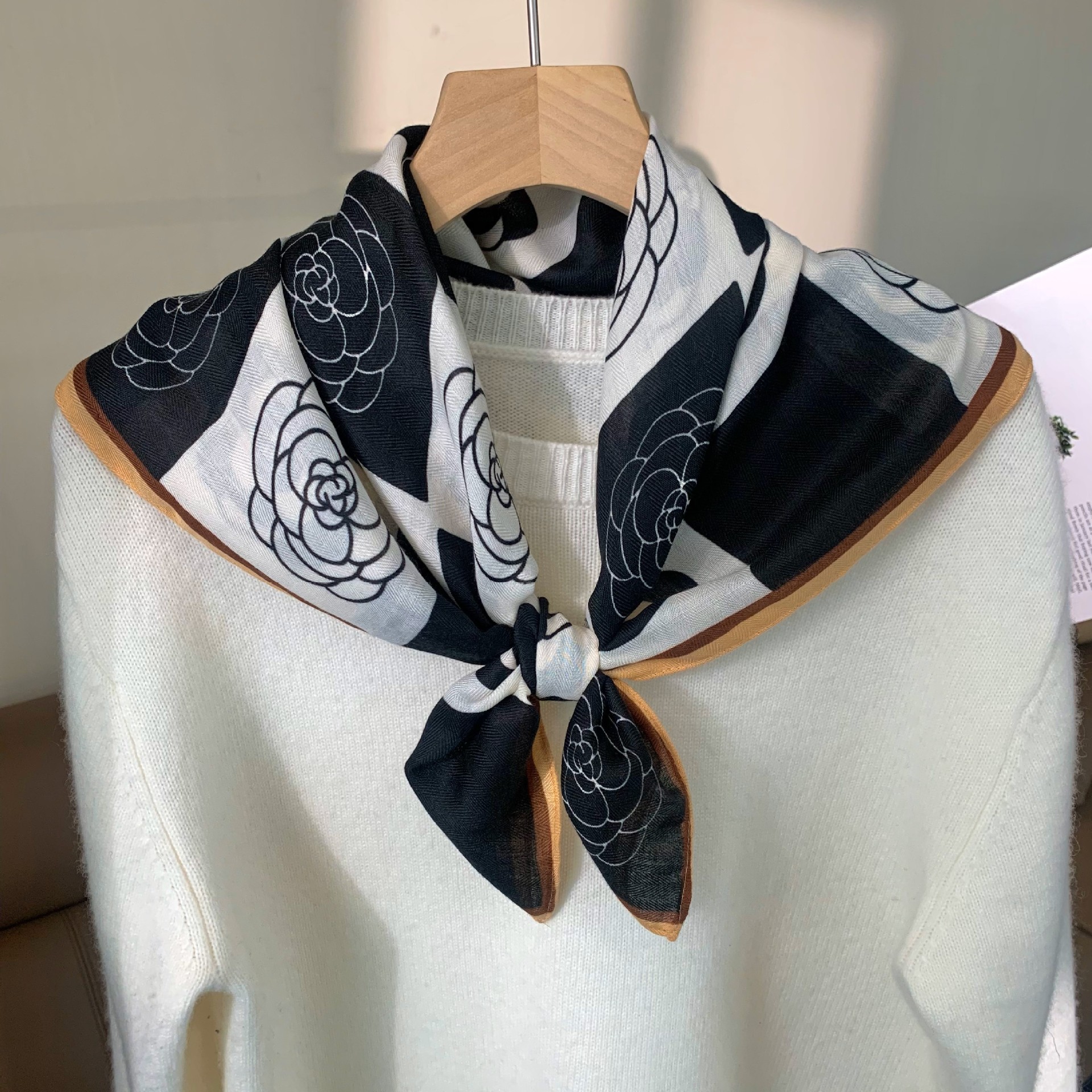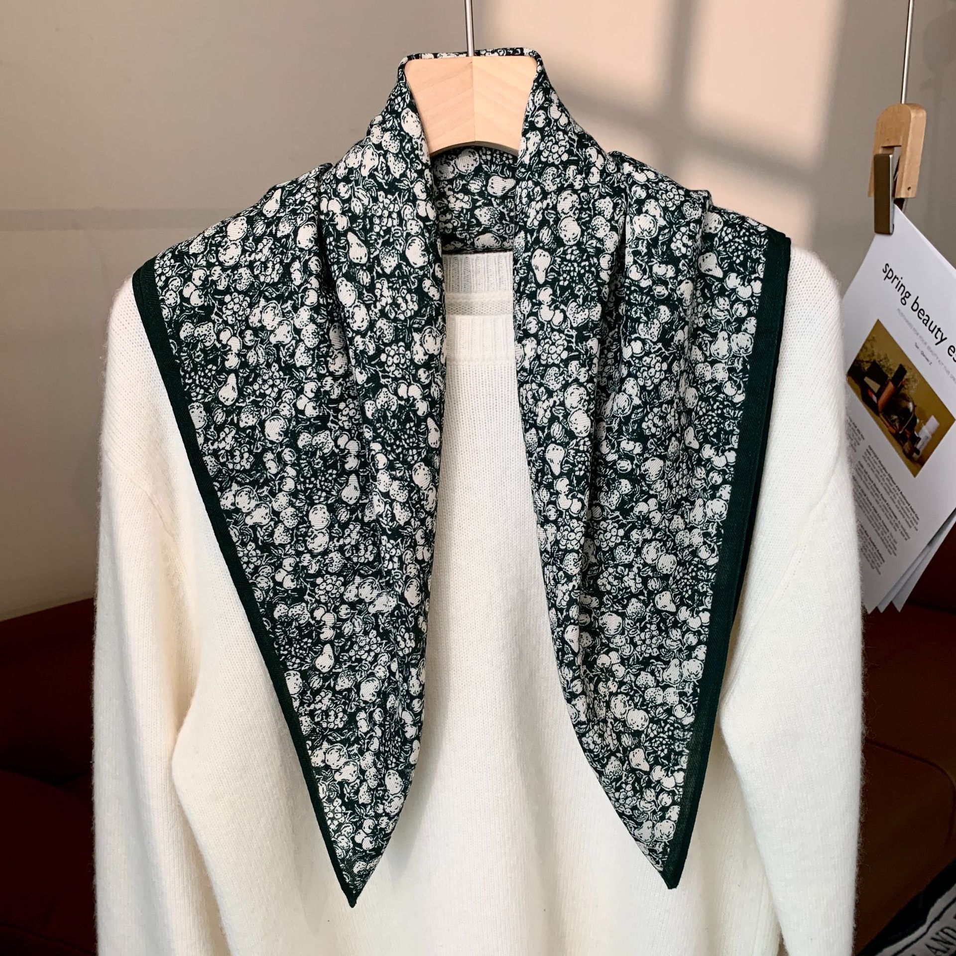 실크 스카프 여성 식물 꽃 스카프 작은 광장 스카프 올 매치 레트로 하이 엔드 서양식 가을 및 겨울