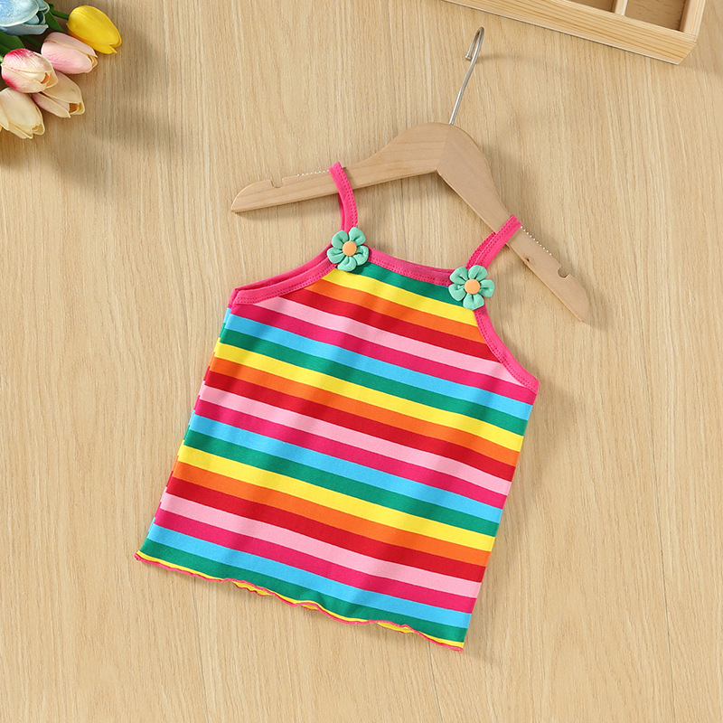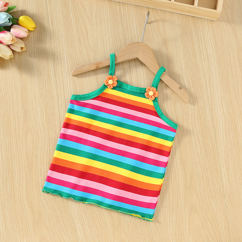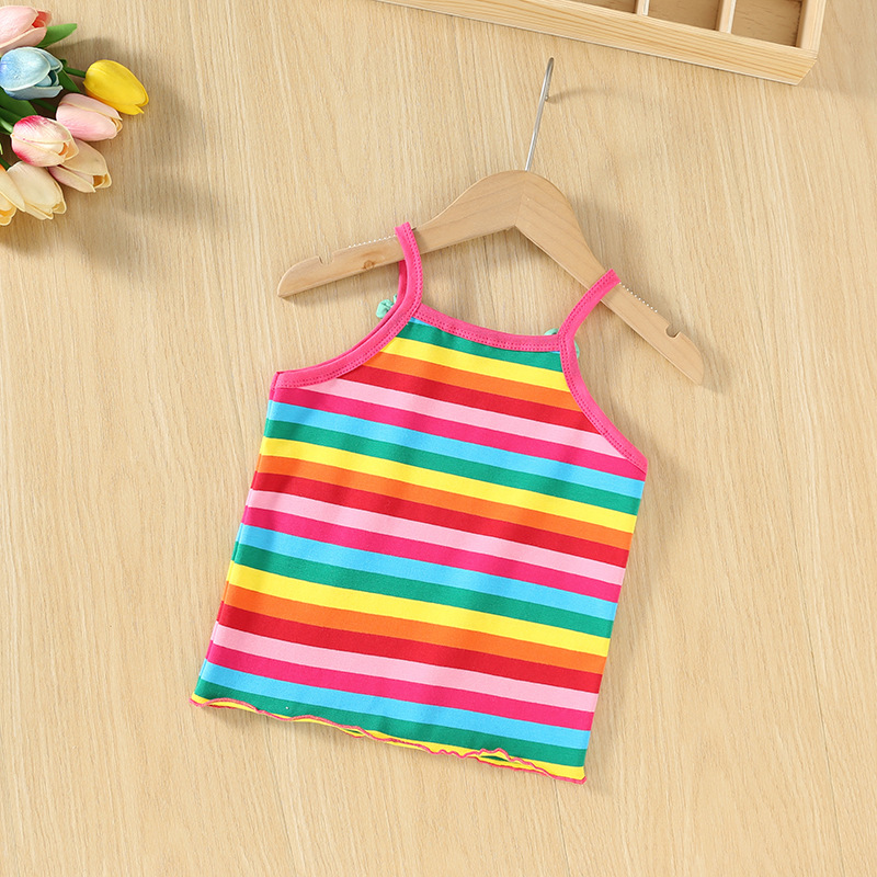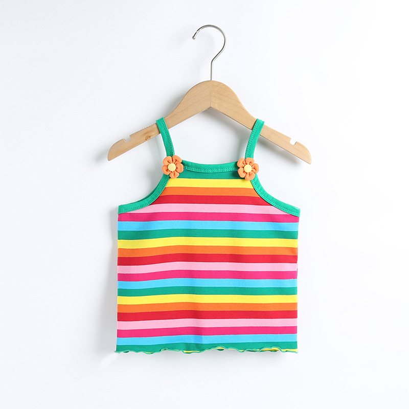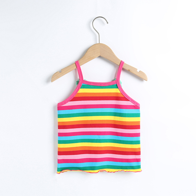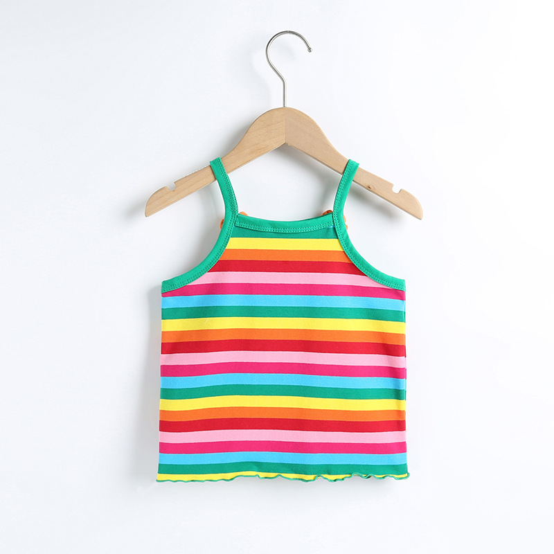 소녀 탑 여름 얇은 스트랩 반팔 2025 서양식 심플 탑 아기 소녀와 어린이를위한 귀여운 올 매치 조끼