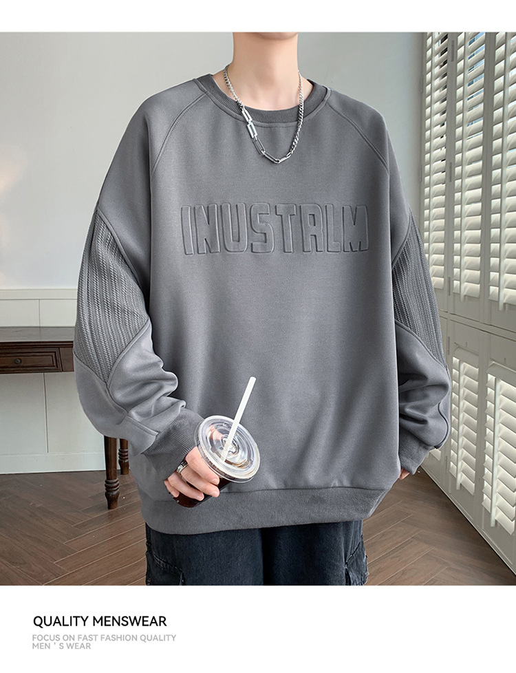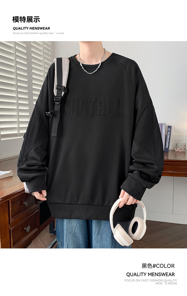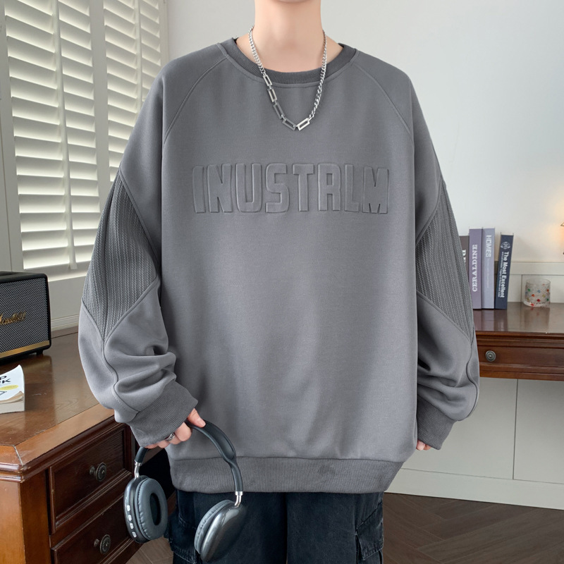 봄 뉴 플러스 사이즈 오버 사이즈 패션 브랜드 라운드 넥 풀오버 풀 오버 올 매치 패티 남성용 땀 하이 엔드 센스스토어 가기