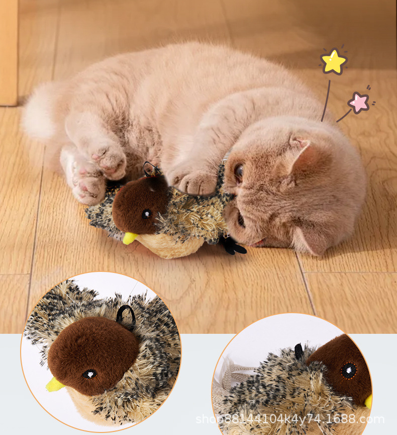 고양이를 위한 시뮬레이션 플러시 소리나는 장난감, 사실적인 고양이 유혹 및 지루함 해소용, 자가 즐거움을 주는 참새 시뮬레이션 소리 장난감스토어 가기