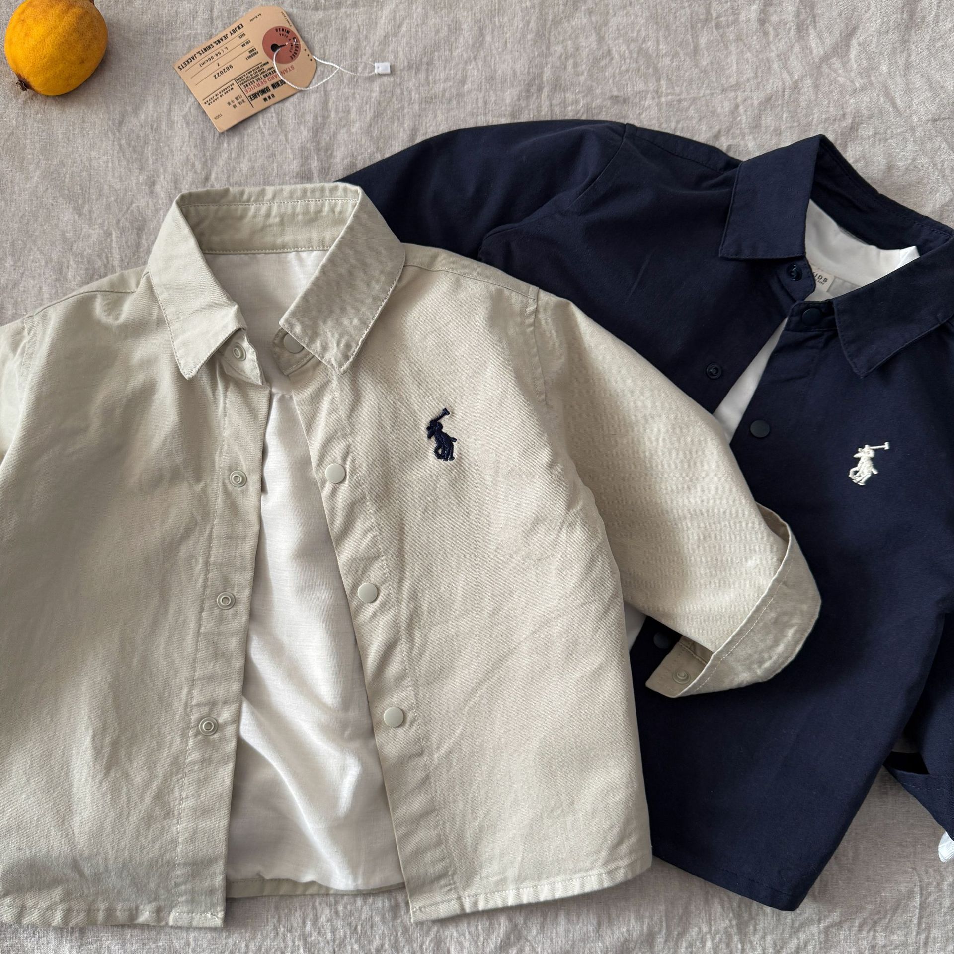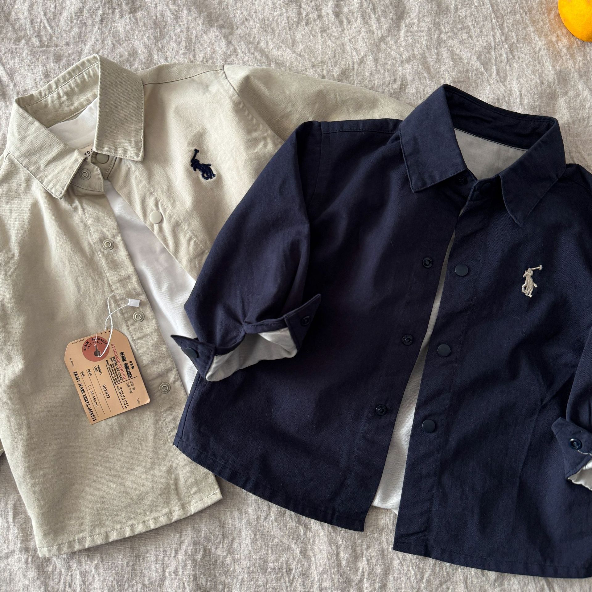 아동용 재킷 2025 가을 아동복 남아 여아 단색 자수 카라 캐주얼 베이비 탑 캐주얼 다용도스토어 가기