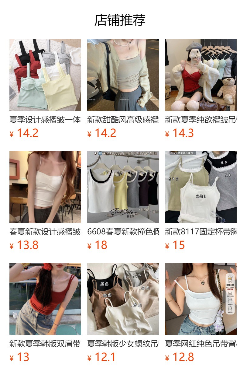 2025 새로운 솔리드 컬러 올 매치 원피스 컵 카미솔 가슴 패드 한국식 여성 패션 탑 스파이스 걸베이스스토어 가기