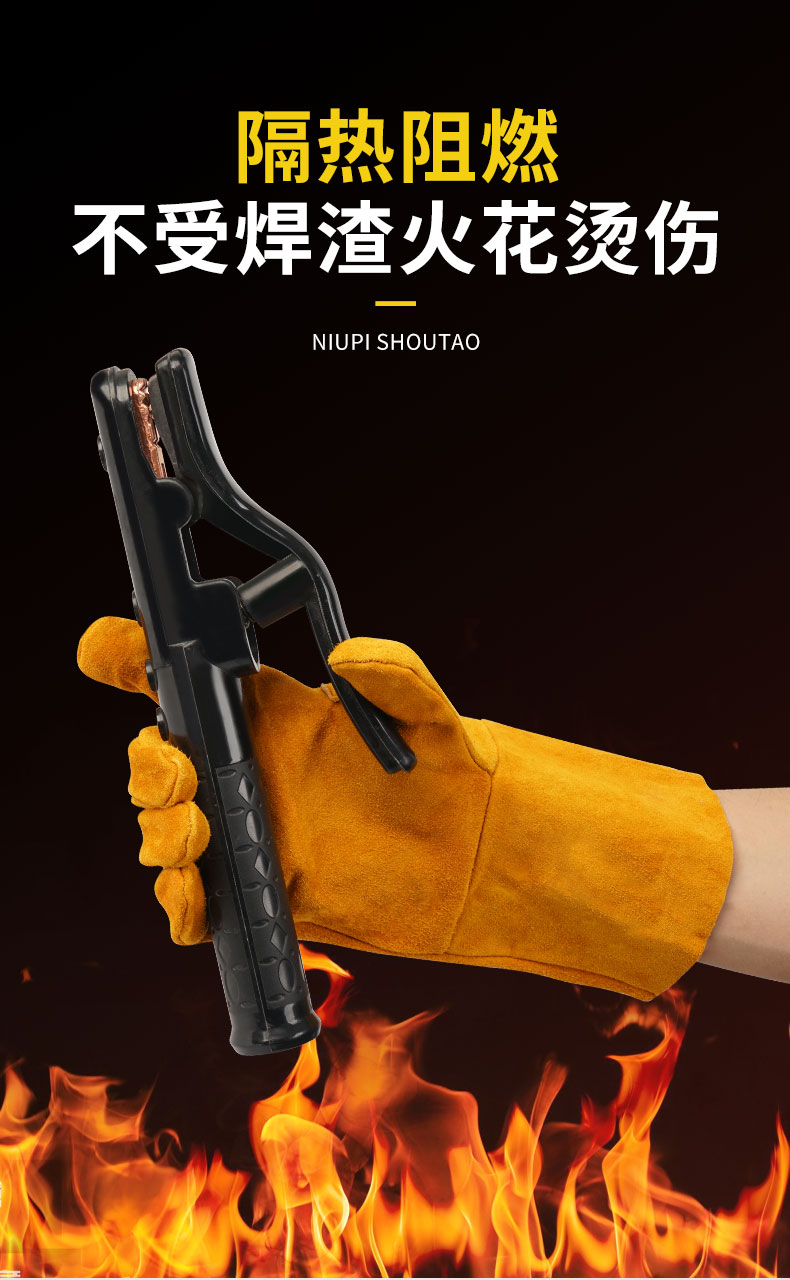 12 쌍의 내화 와이어 전기 용접 장갑 연장 긴 노동 보호 소 가죽 내마모성 고온 부드러운 얇은 여름