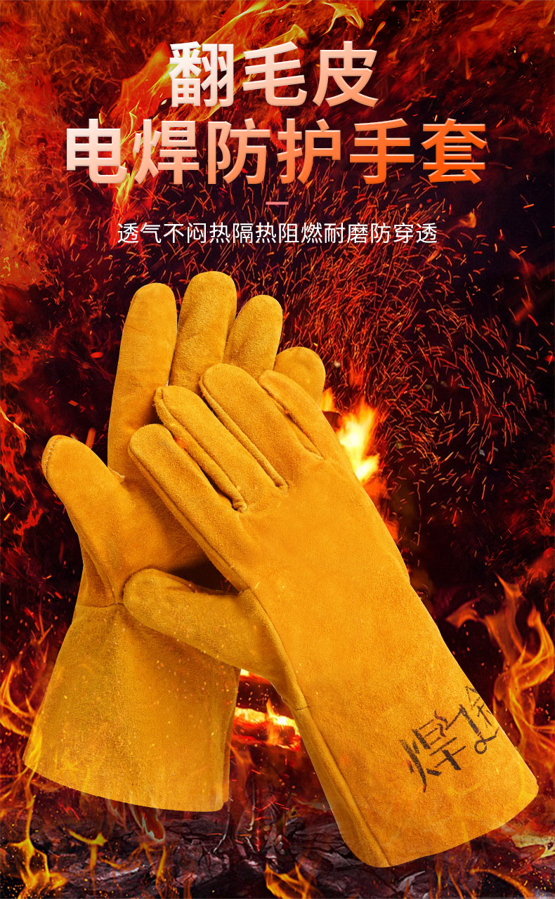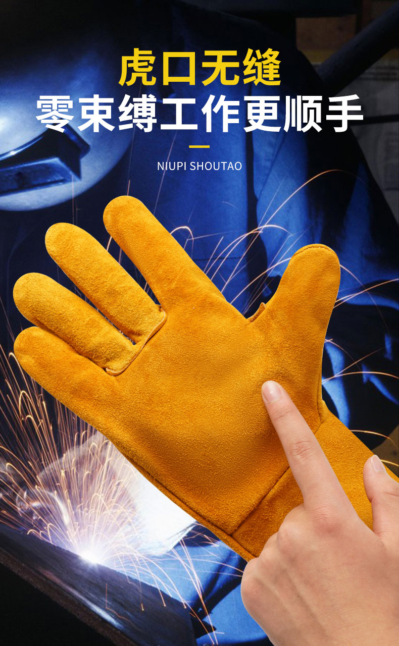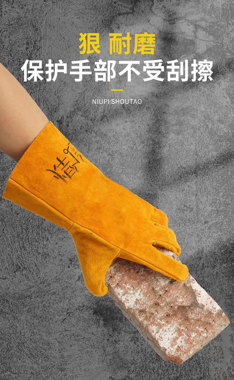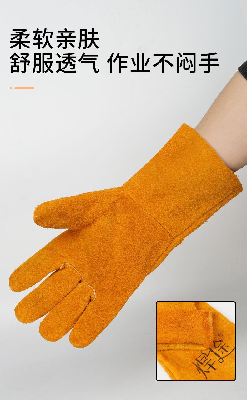 12 쌍의 내화 와이어 전기 용접 장갑 연장 긴 노동 보호 소 가죽 내마모성 고온 부드러운 얇은 여름스토어 가기