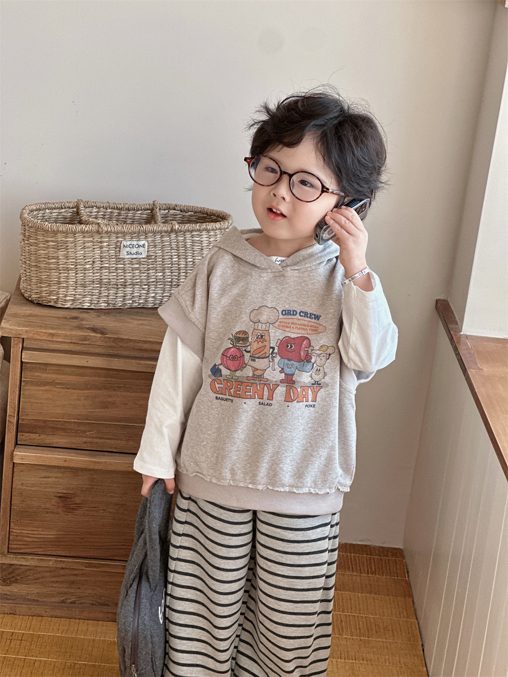 Montaigne 한국 아동복 2025 봄 새 소년과 소녀 어린이 운동복 줄무늬 캐주얼 와이드 다리 바지 스트레이트 다리 바지스토어 가기
