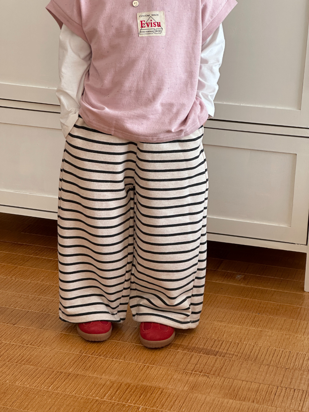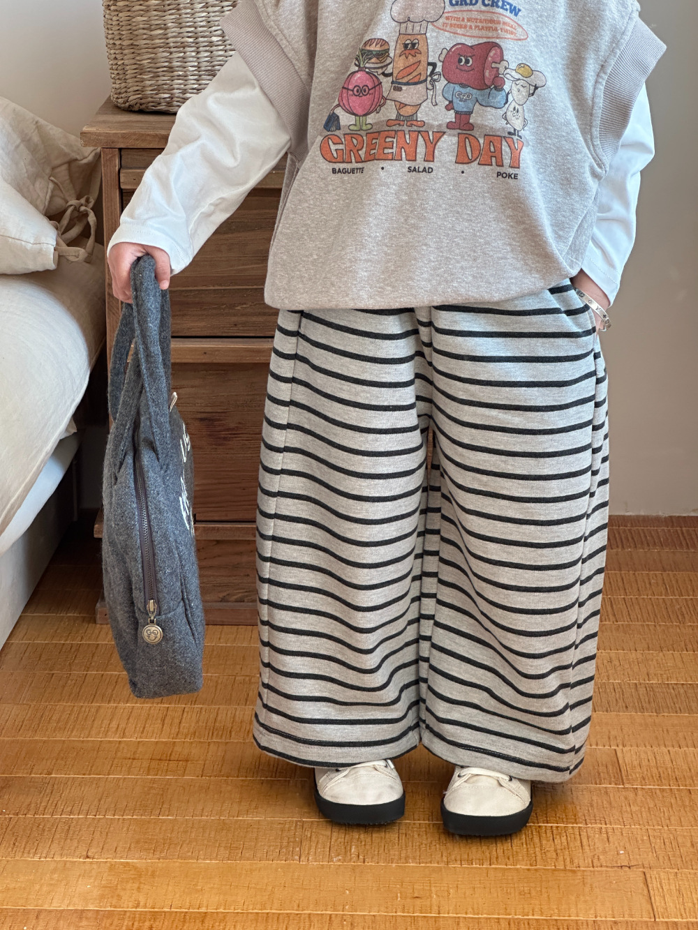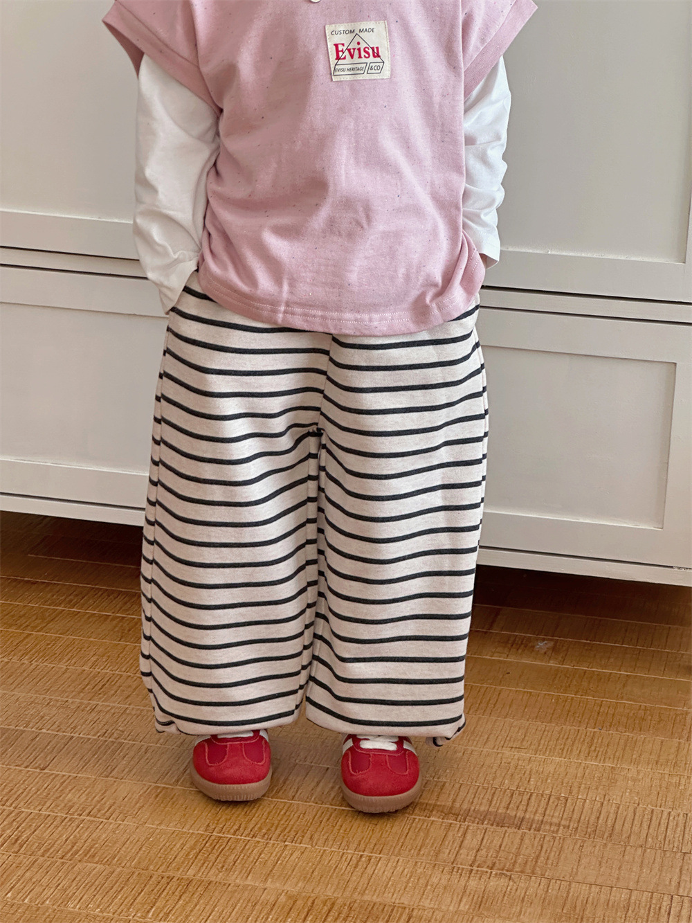 Montaigne 한국 아동복 2025 봄 새 소년과 소녀 어린이 운동복 줄무늬 캐주얼 와이드 다리 바지 스트레이트 다리 바지