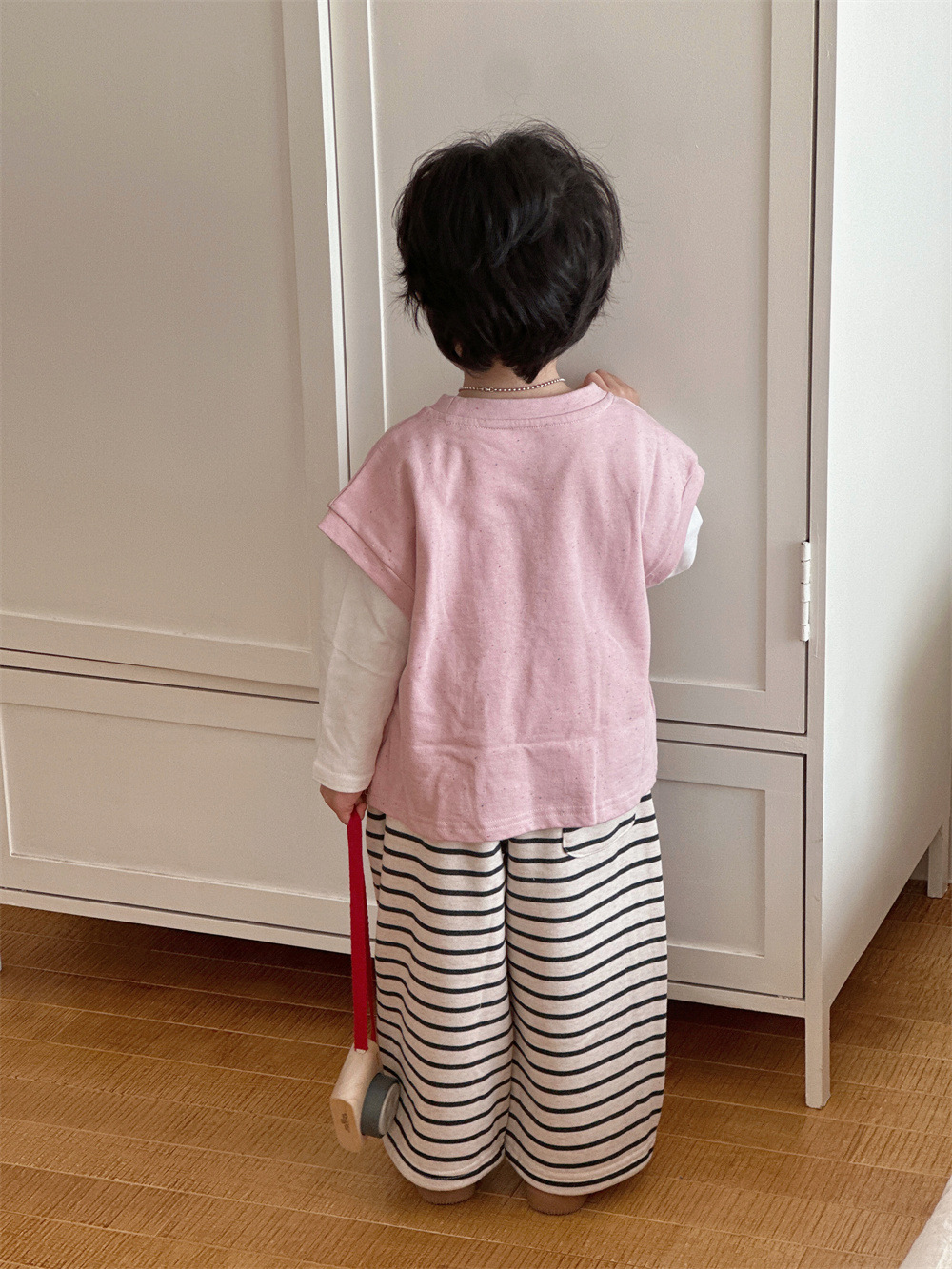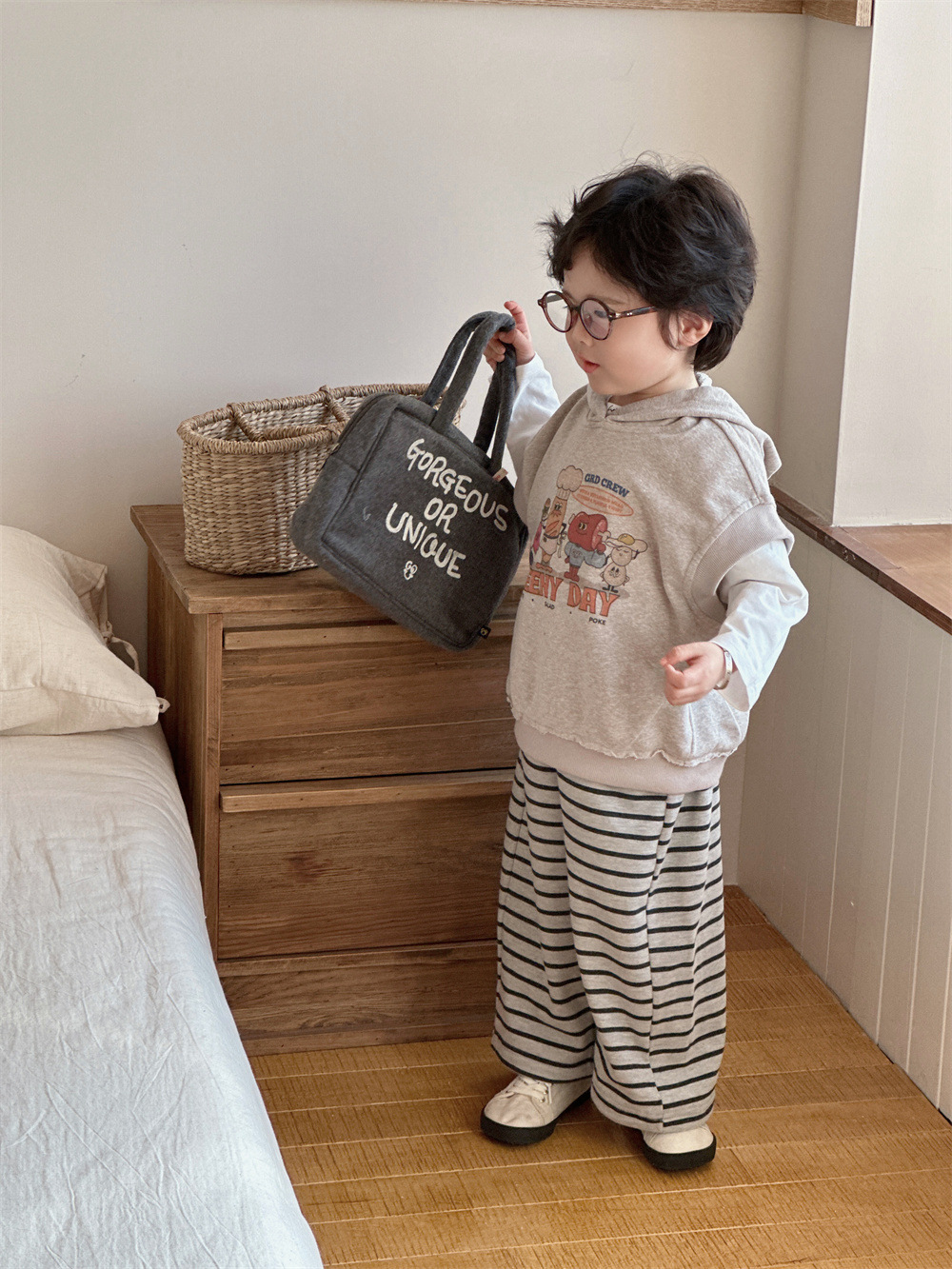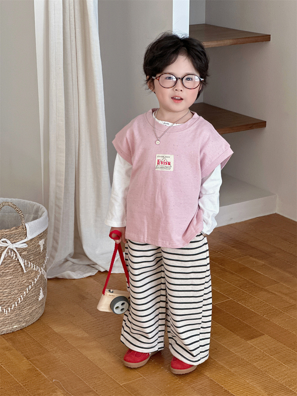 Montaigne 한국 아동복 2025 봄 새 소년과 소녀 어린이 운동복 줄무늬 캐주얼 와이드 다리 바지 스트레이트 다리 바지