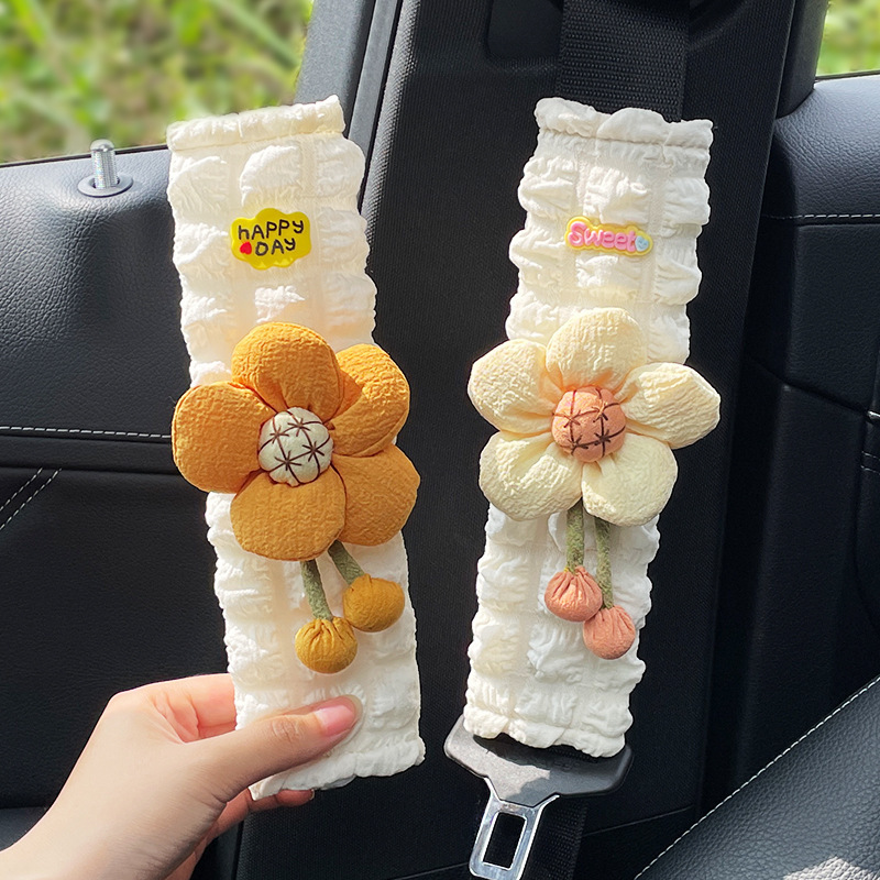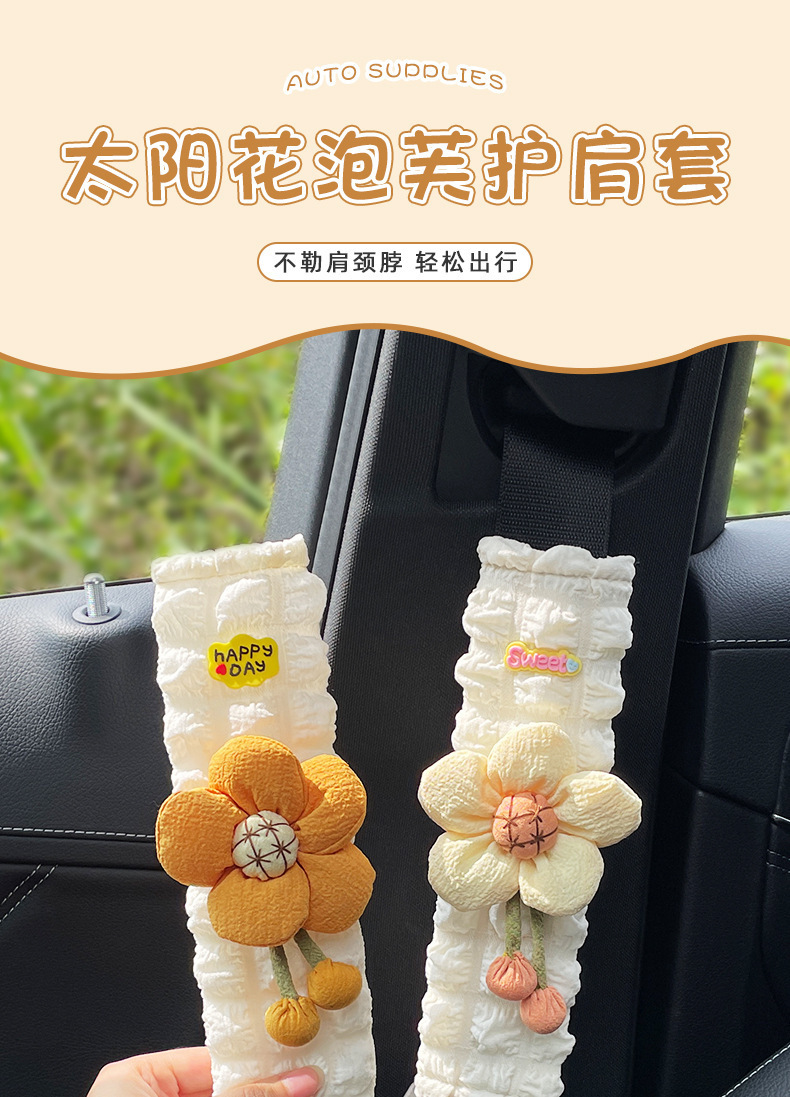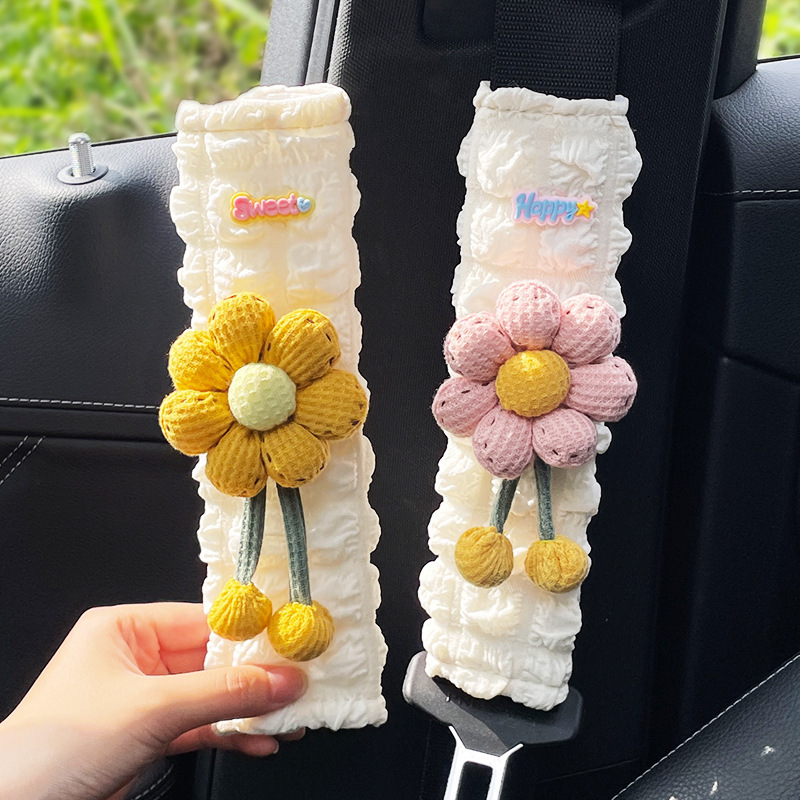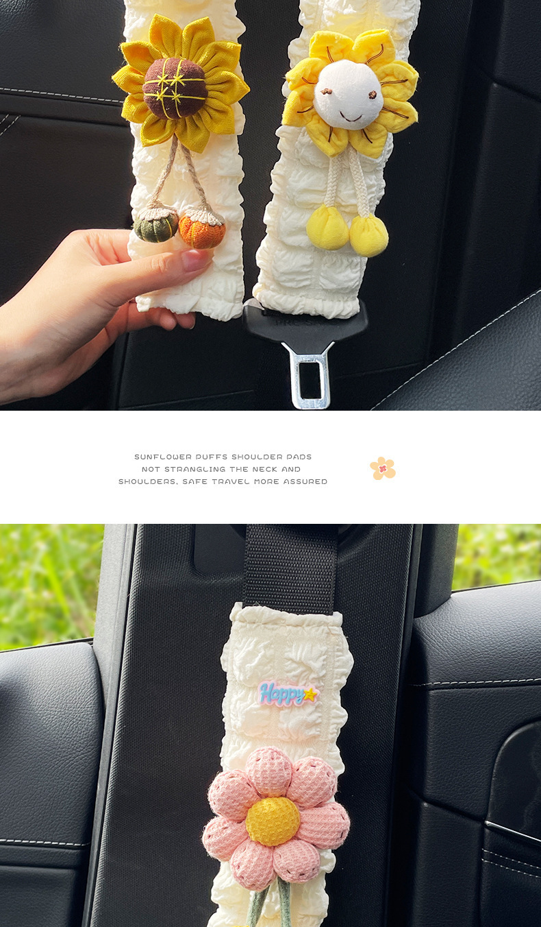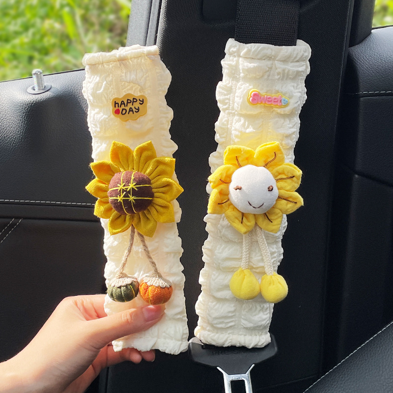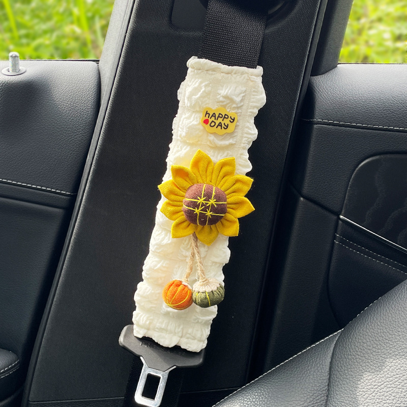 자동차 시트 벨트 어깨 커버 여성의 귀여운 창조적 인 해바라기 안전 벨트 안티 르 자동차 인테리어 용품 장식 다콴 여름