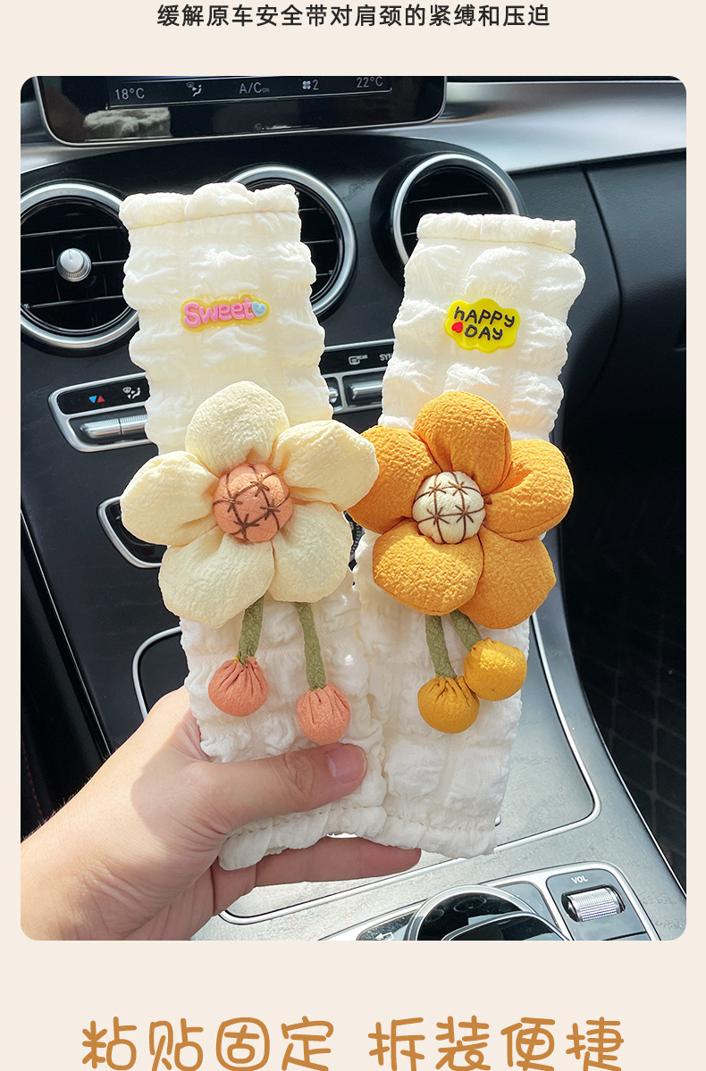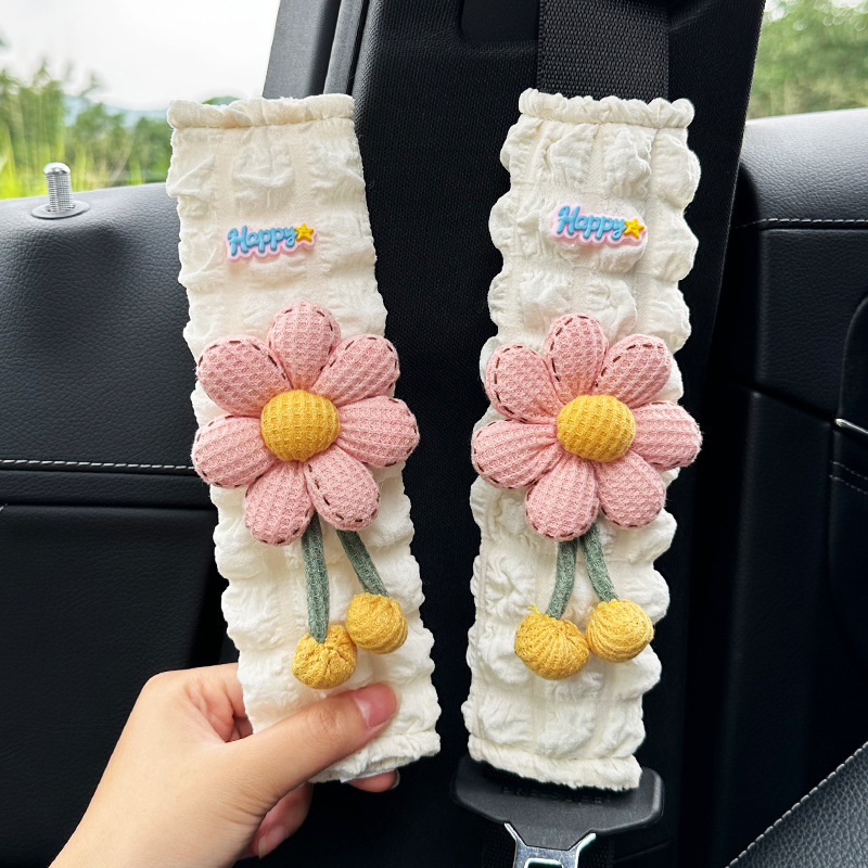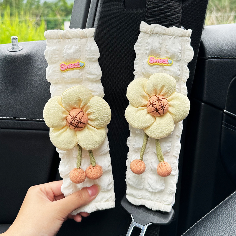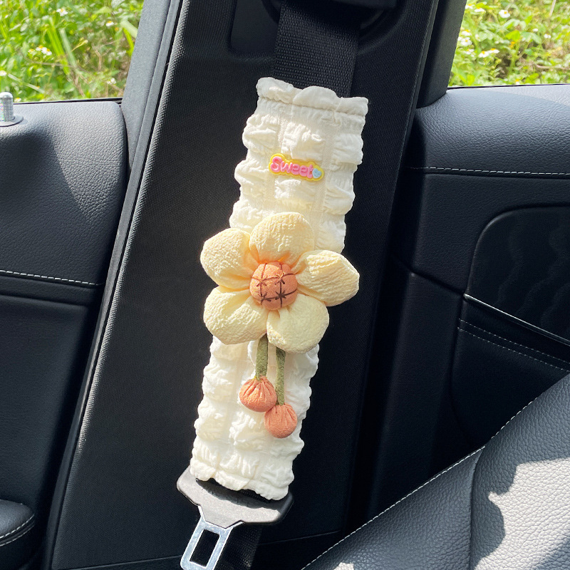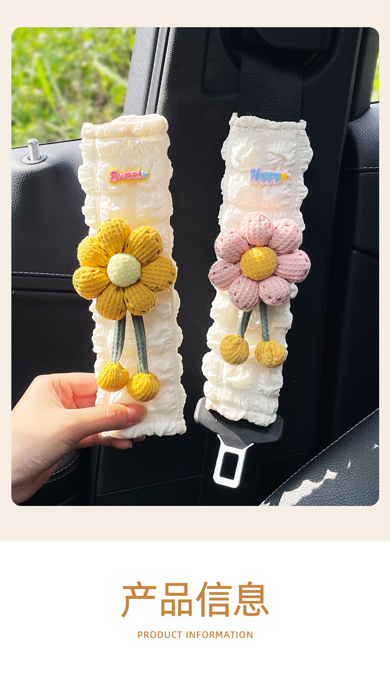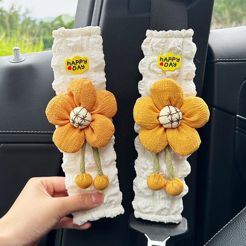 자동차 시트 벨트 어깨 커버 여성의 귀여운 창조적 인 해바라기 안전 벨트 안티 르 자동차 인테리어 용품 장식 다콴 여름