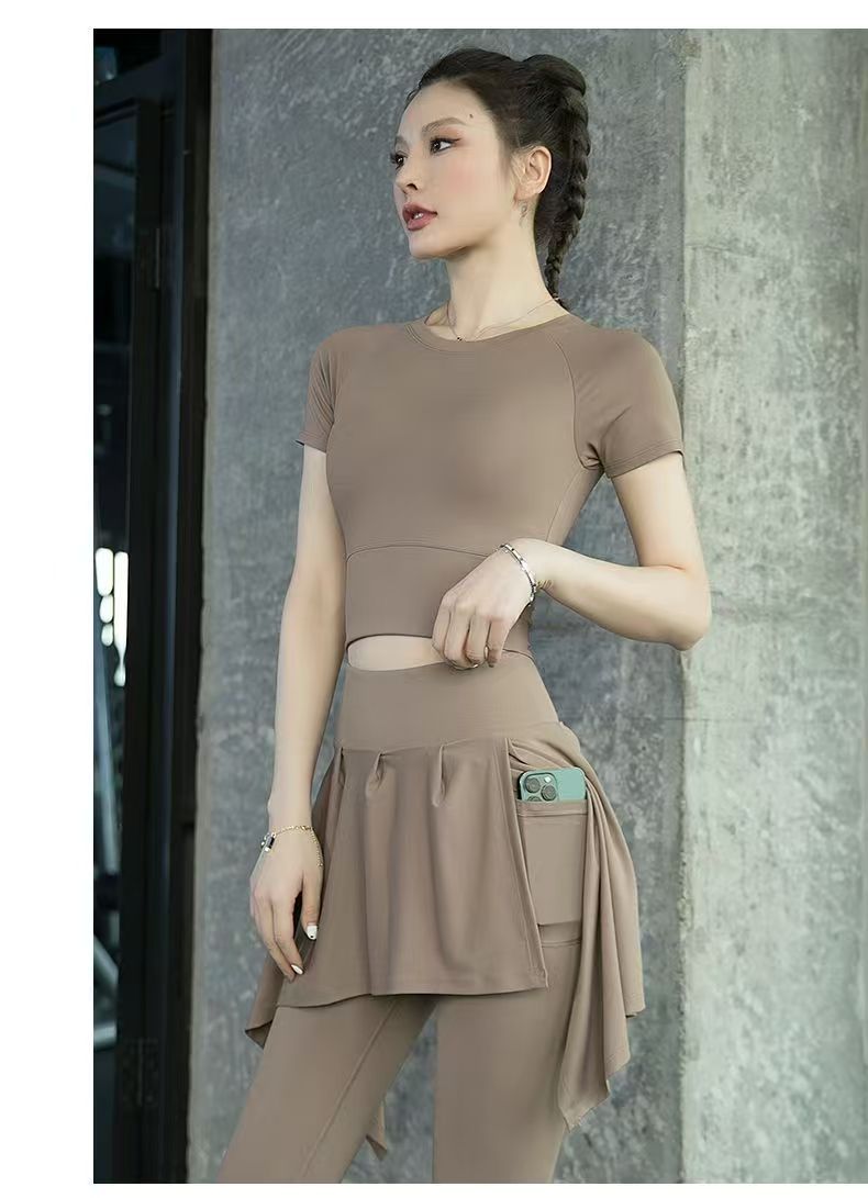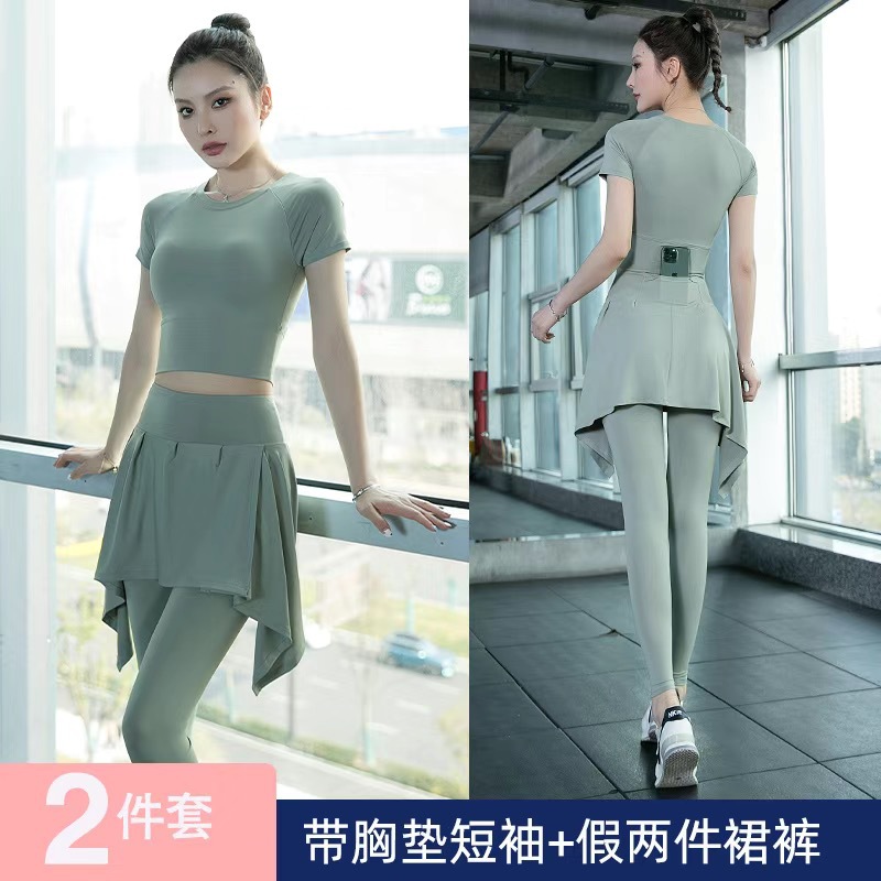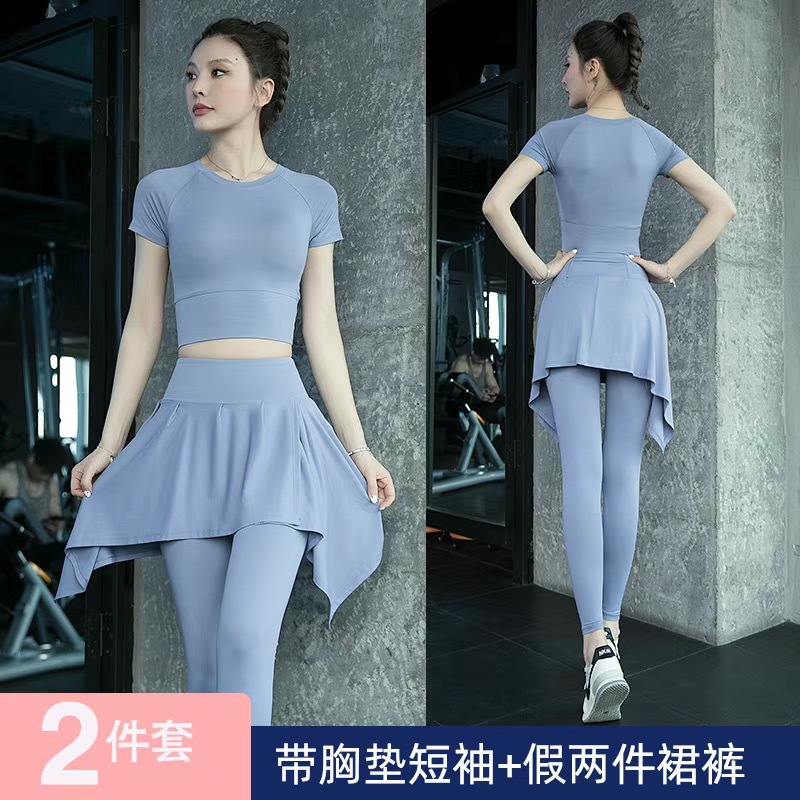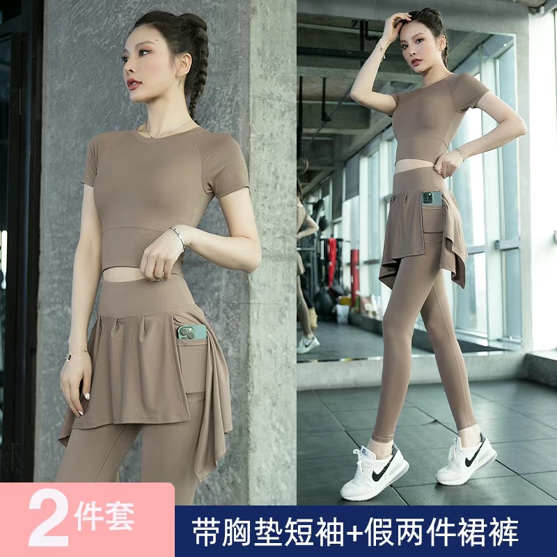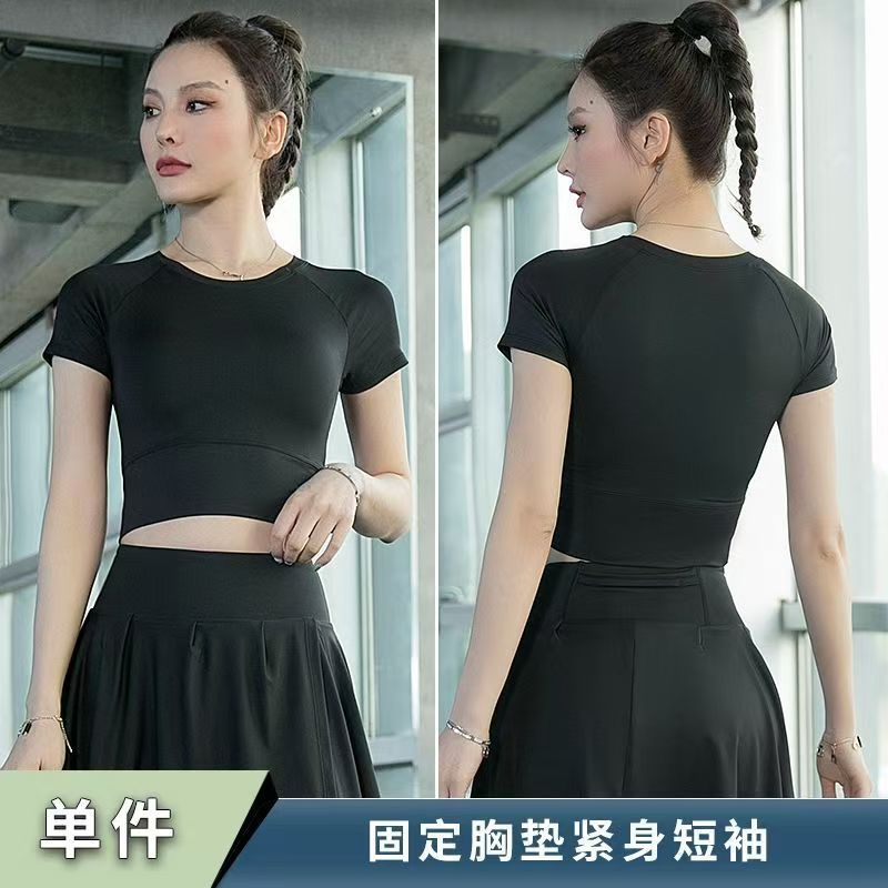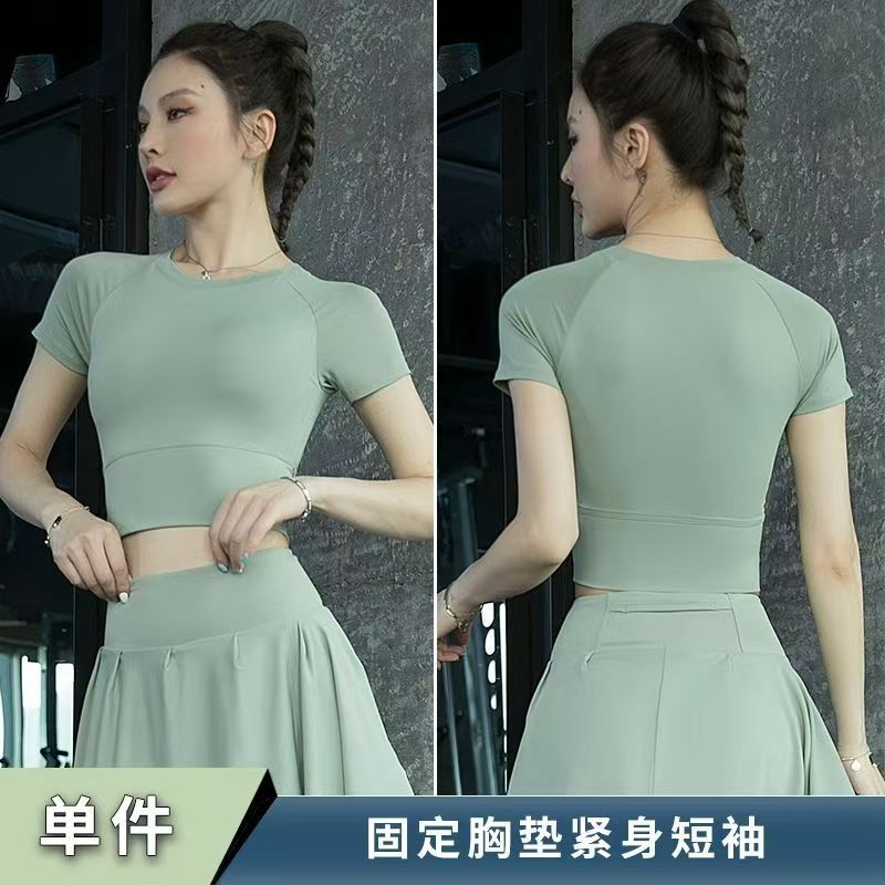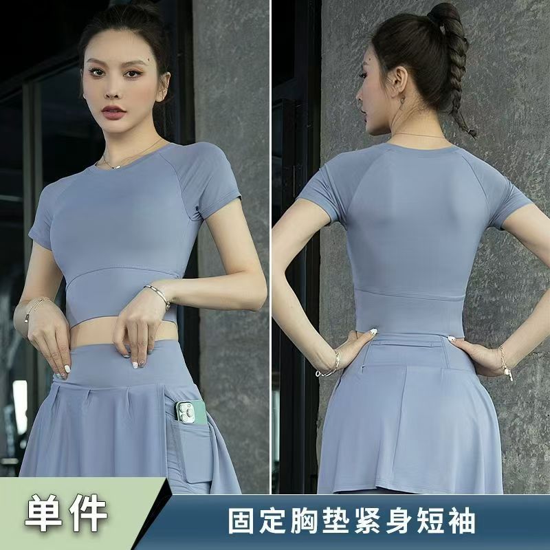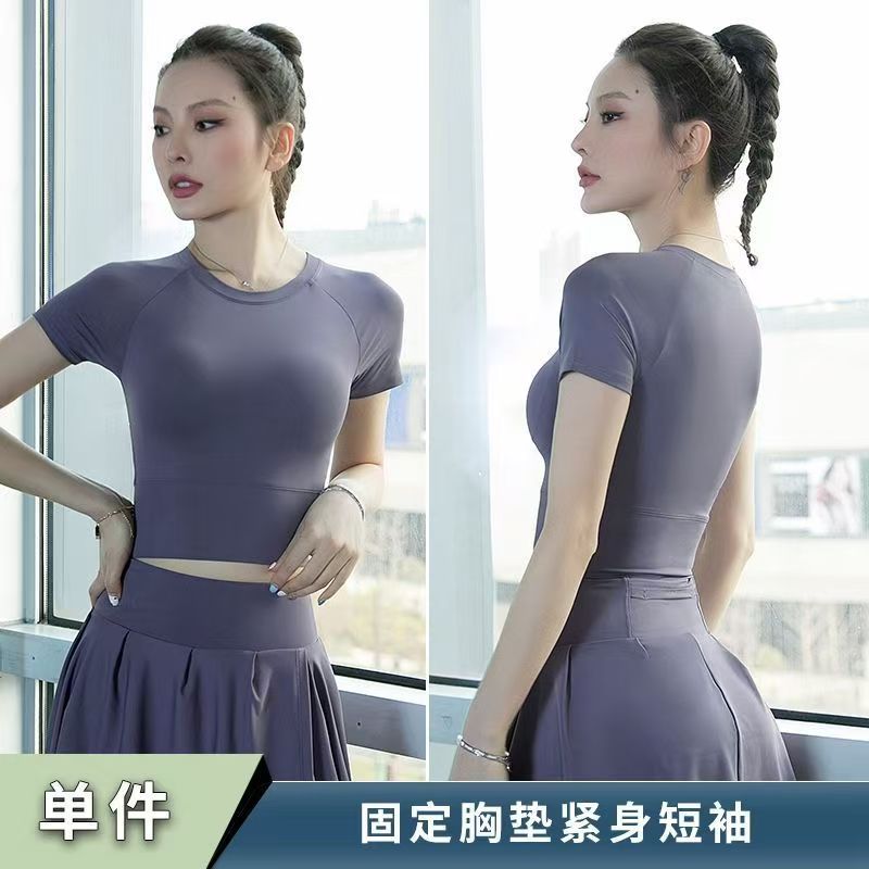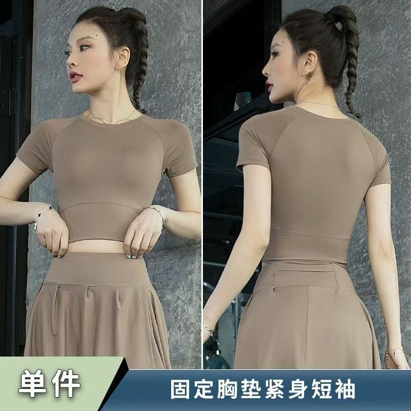 요가 의류 세트 여성 2025 새로운 고급 감각 필라테스 피트니스 반팔 스포츠 탑 전문 아침 달리기 의류스토어 가기