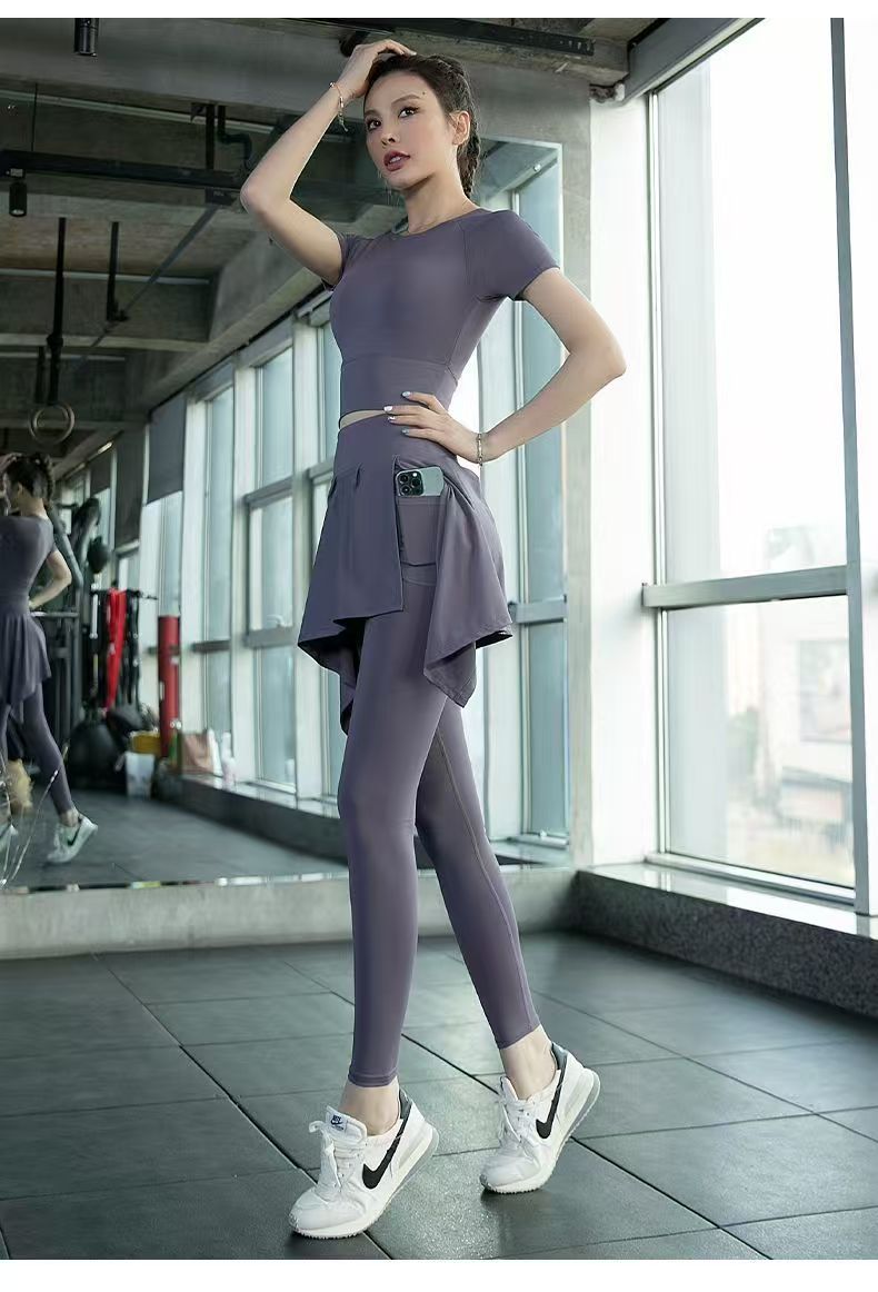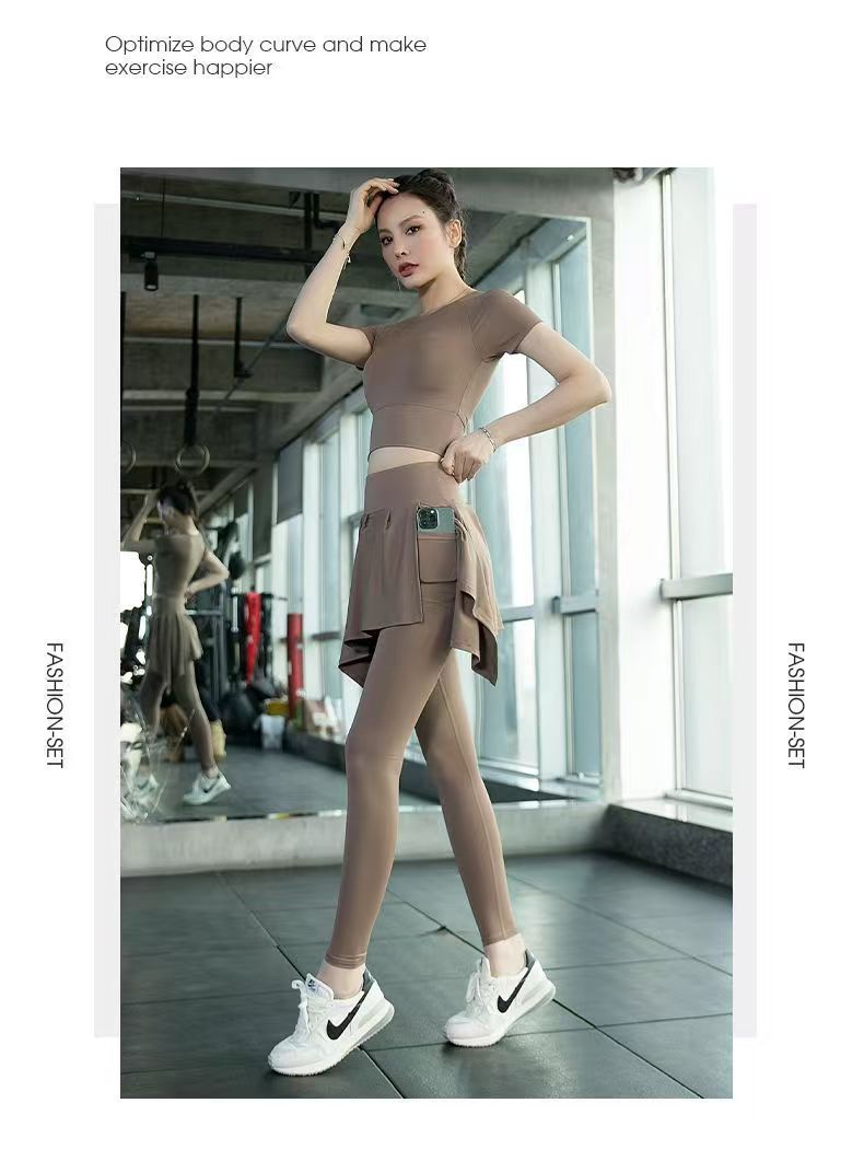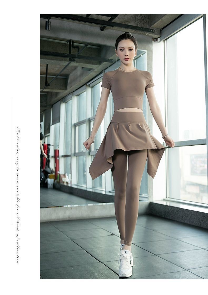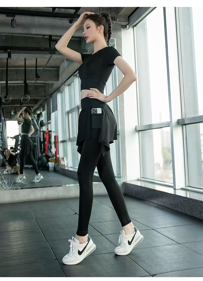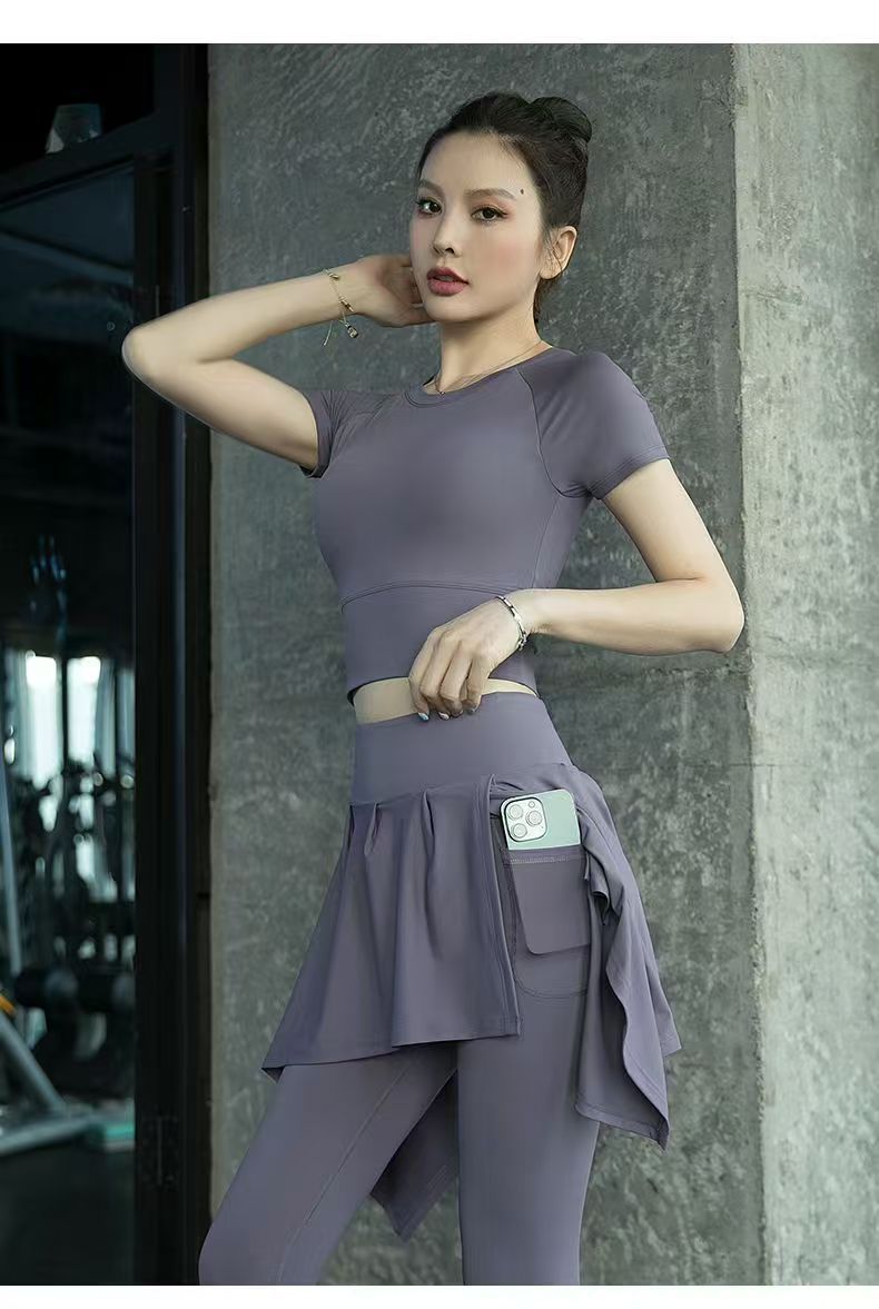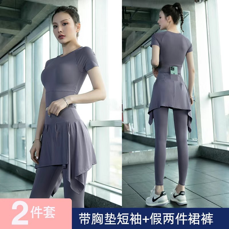 요가 의류 세트 여성 2025 새로운 고급 감각 필라테스 피트니스 반팔 스포츠 탑 전문 아침 달리기 의류스토어 가기