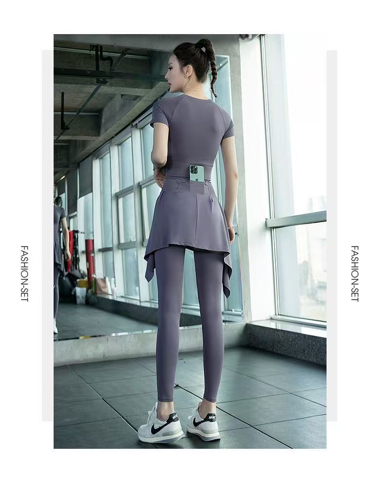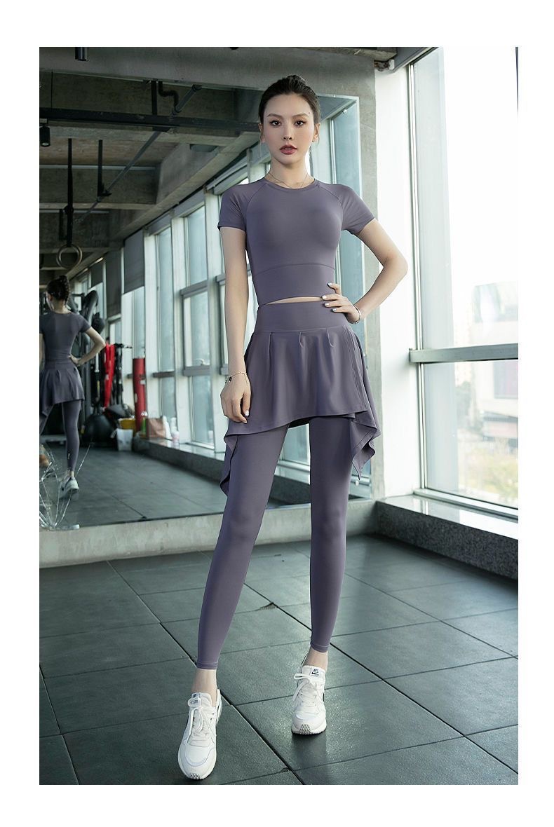 요가 의류 세트 여성 2025 새로운 고급 감각 필라테스 피트니스 반팔 스포츠 탑 전문 아침 달리기 의류