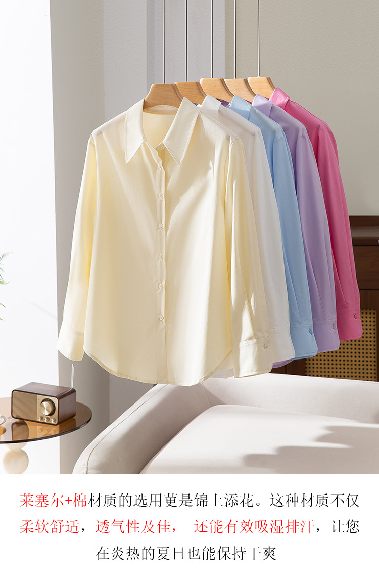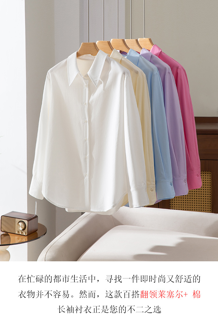 25 년 봄과 여름 새로운 여성 셔츠 3 차원 테일러링 캐주얼 통기성 텐셀 옷깃 Lyisel 코튼 셔츠 여성