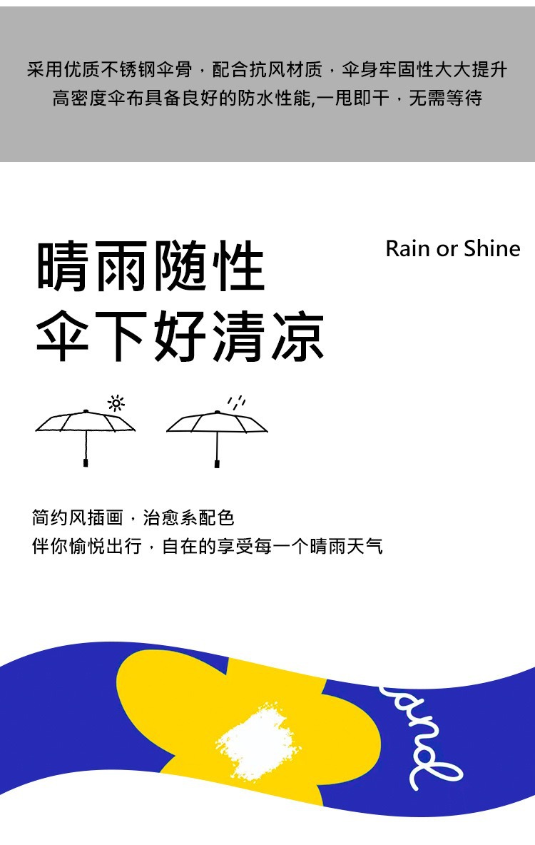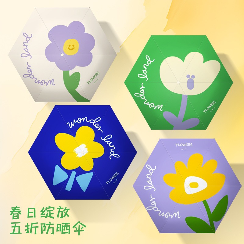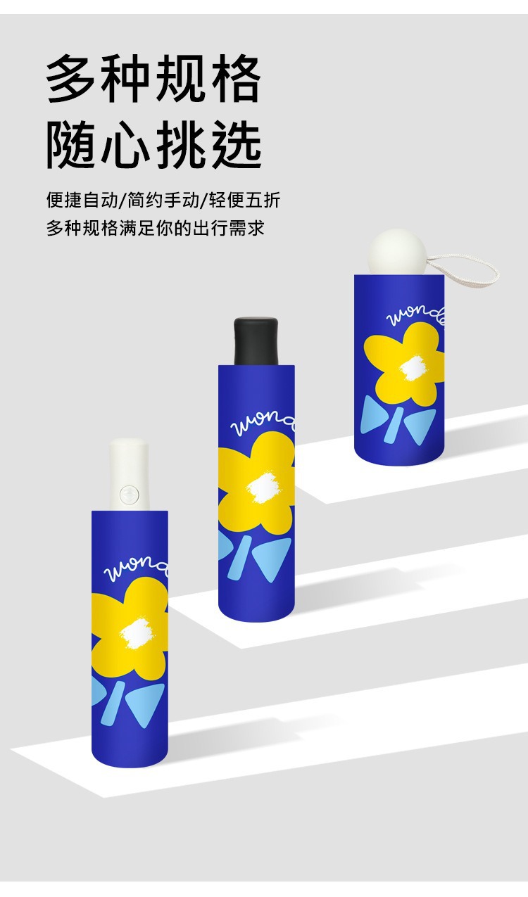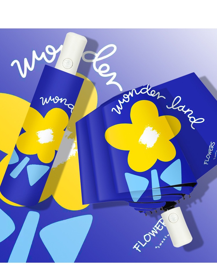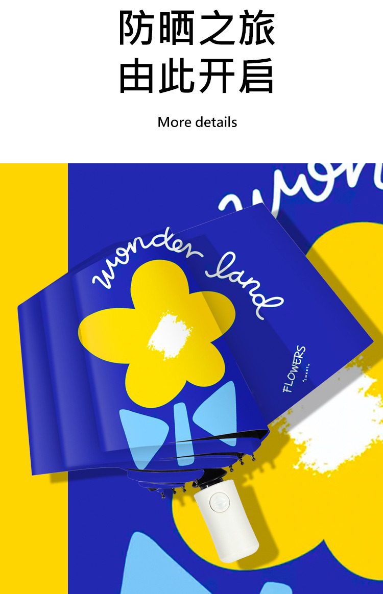 완전 자동 도매 우산 UV 보호 태양 우산 접이식 우산 작은 신선한 검은 고무 비와 빛나는 이중 목적 우산