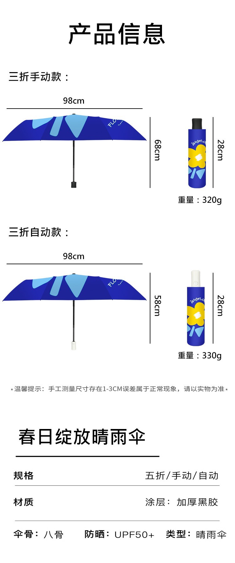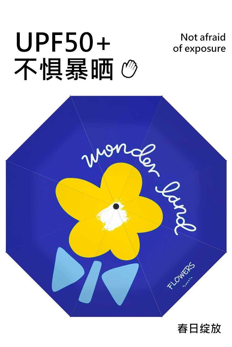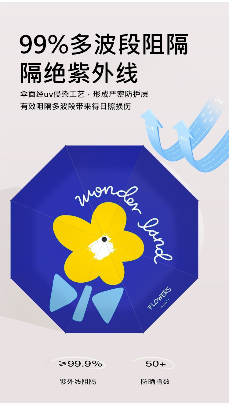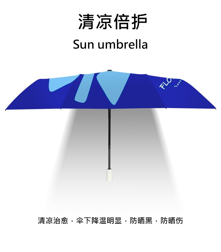 완전 자동 도매 우산 UV 보호 태양 우산 접이식 우산 작은 신선한 검은 고무 비와 빛나는 이중 목적 우산스토어 가기