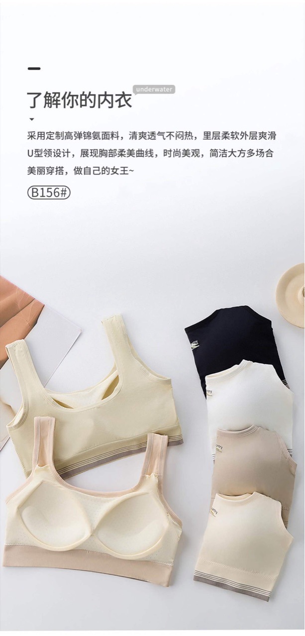 B156 알몸 암모니아 아이스 실크 와이드 어깨 스트랩 뷰티 백 고정 컵 안티 워킹 작은 조끼 속옷 스포츠 러닝 요가 브라