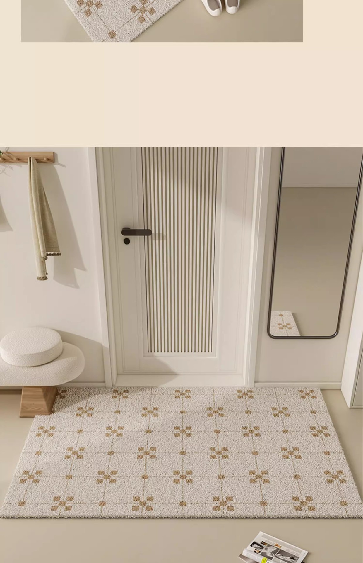 실크 링 플로어 매트 크림 에어 엔트리 도어 매트 먼지 방지 및 깨끗한 입구 도어 매트 홈 신발 변경 지역 미끄럼 방지 발 매트