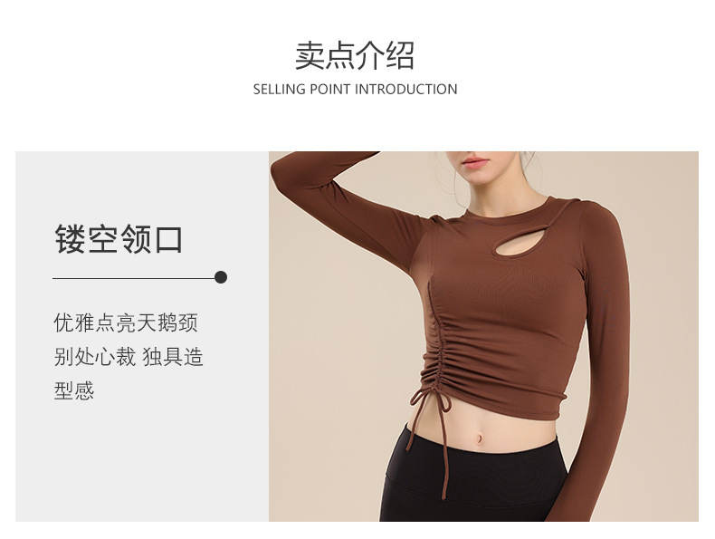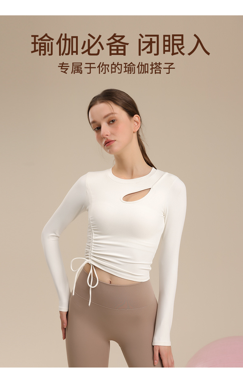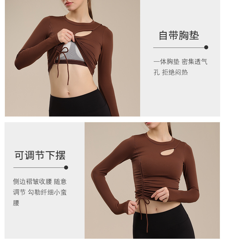 주름진 현악기 벨트 가슴 매트 요가 세트 여성용 중공 통기성 피트니스 아우터 착용 스포츠 탑 필라테스 슬리밍 긴 소매스토어 가기